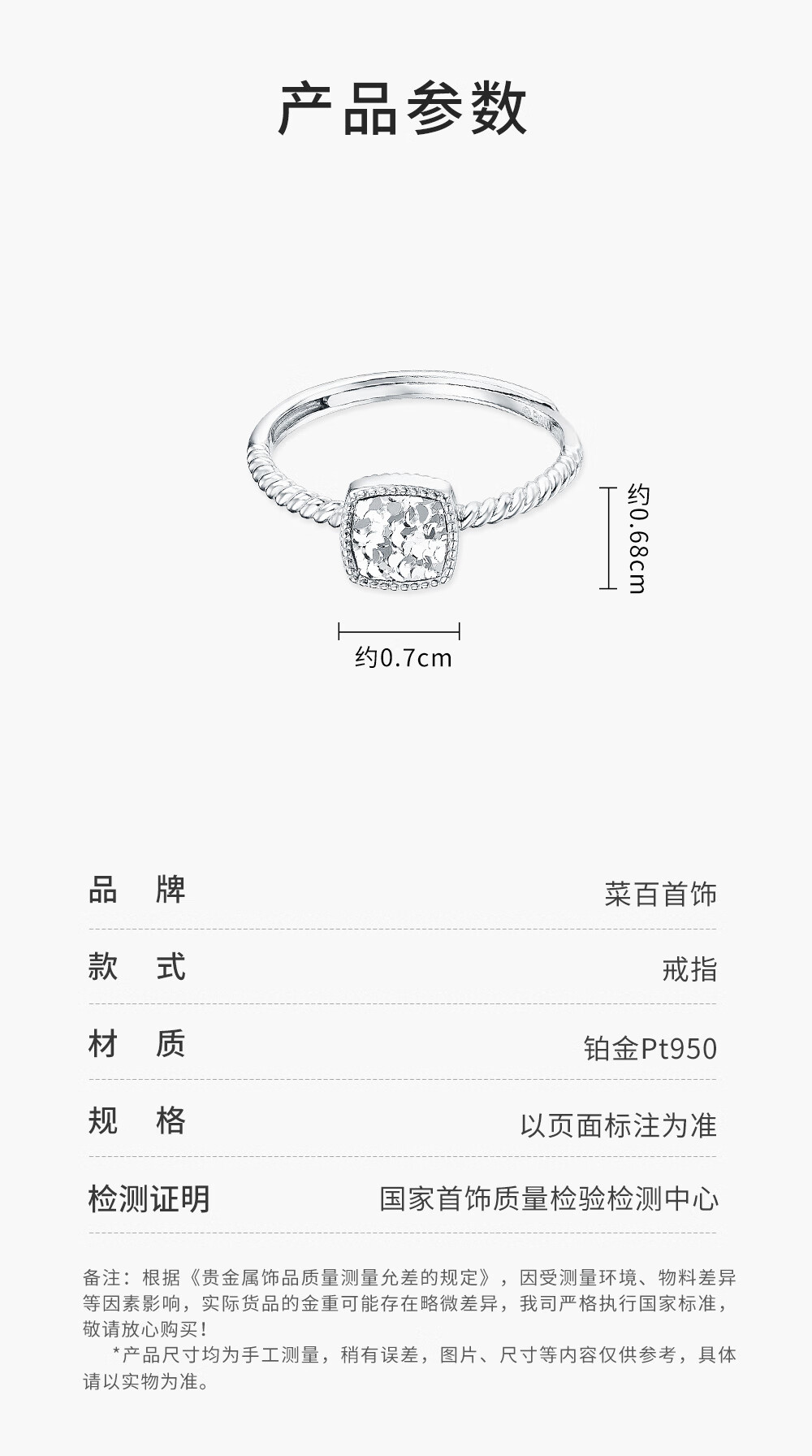 Caibai Jewelry Platinum Ring Pt950 Fashionable Light Luxury Threaded Square Crushed Ice Ring Ring Price BJ Platinum Ring About 3.01g