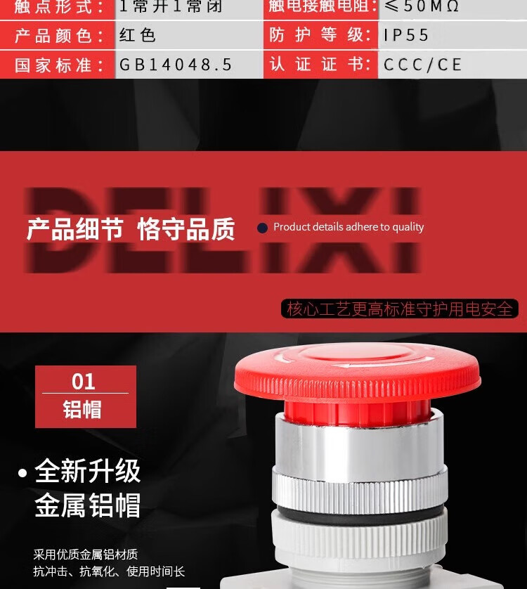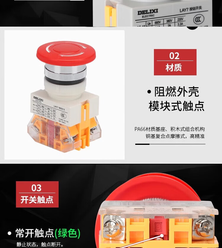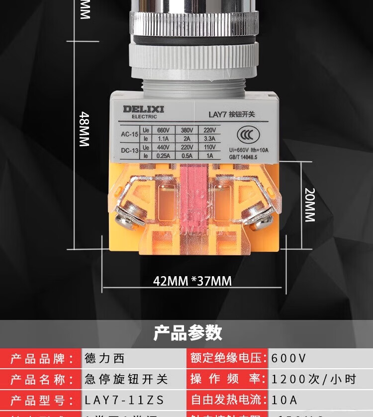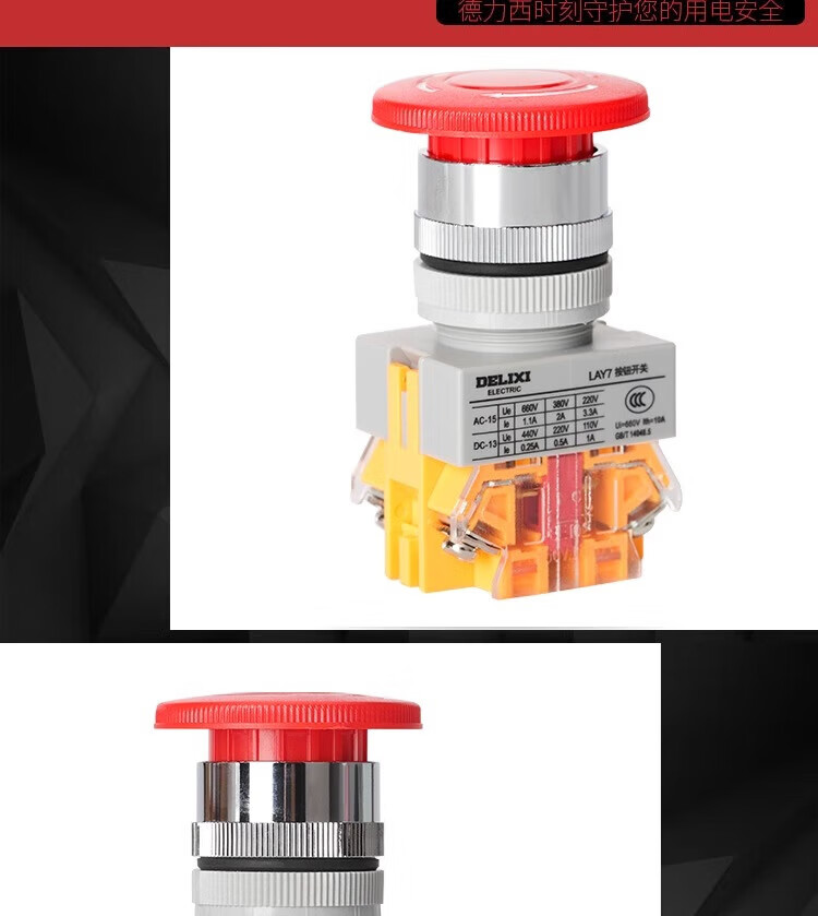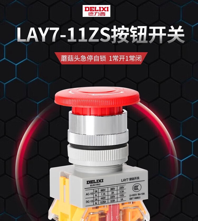 Delixi electrical emergency stop button Delixi control button LAY7-11ZS emergency stop self-locking LAY37 aperture 22MM LAY7-11ZS red
