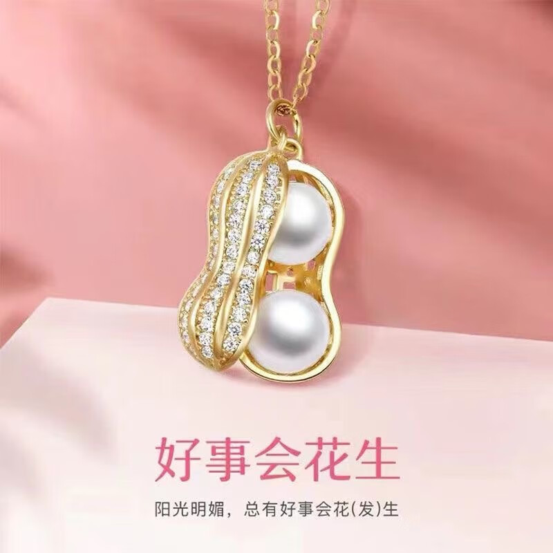 Zhuji Freshwater Nuclear Pearl Good Things Happen Necklace Popular Peanut Pendant New Accessories Clavicle Chain Sweater Chain Natural Pearl Peanut Pendant (Including Chain 45CM)