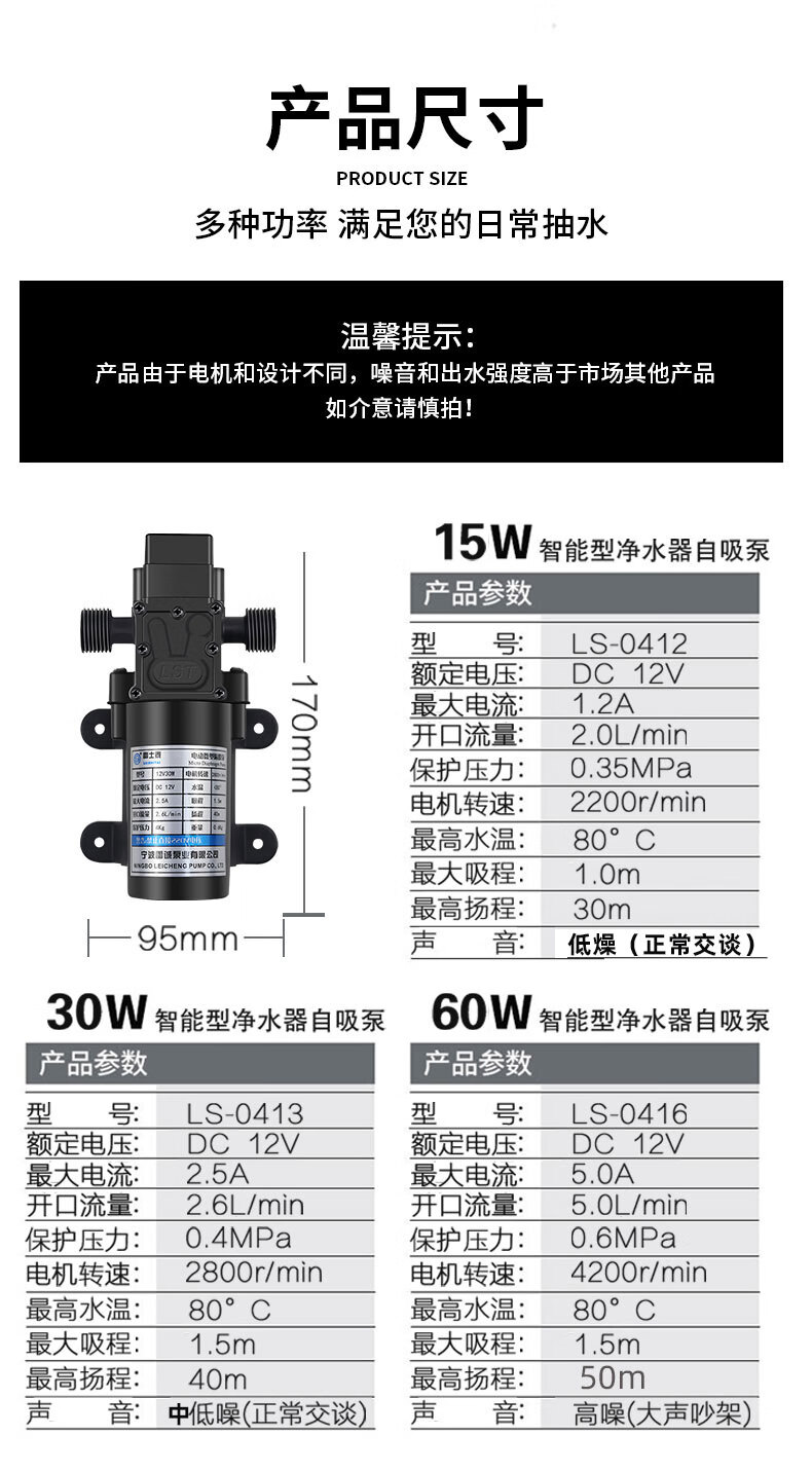 Water purifier self-priming pump household water purifier booster pump micro diaphragm pump small water pump automatic start and stop self-priming pump 30W