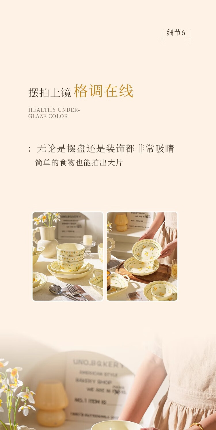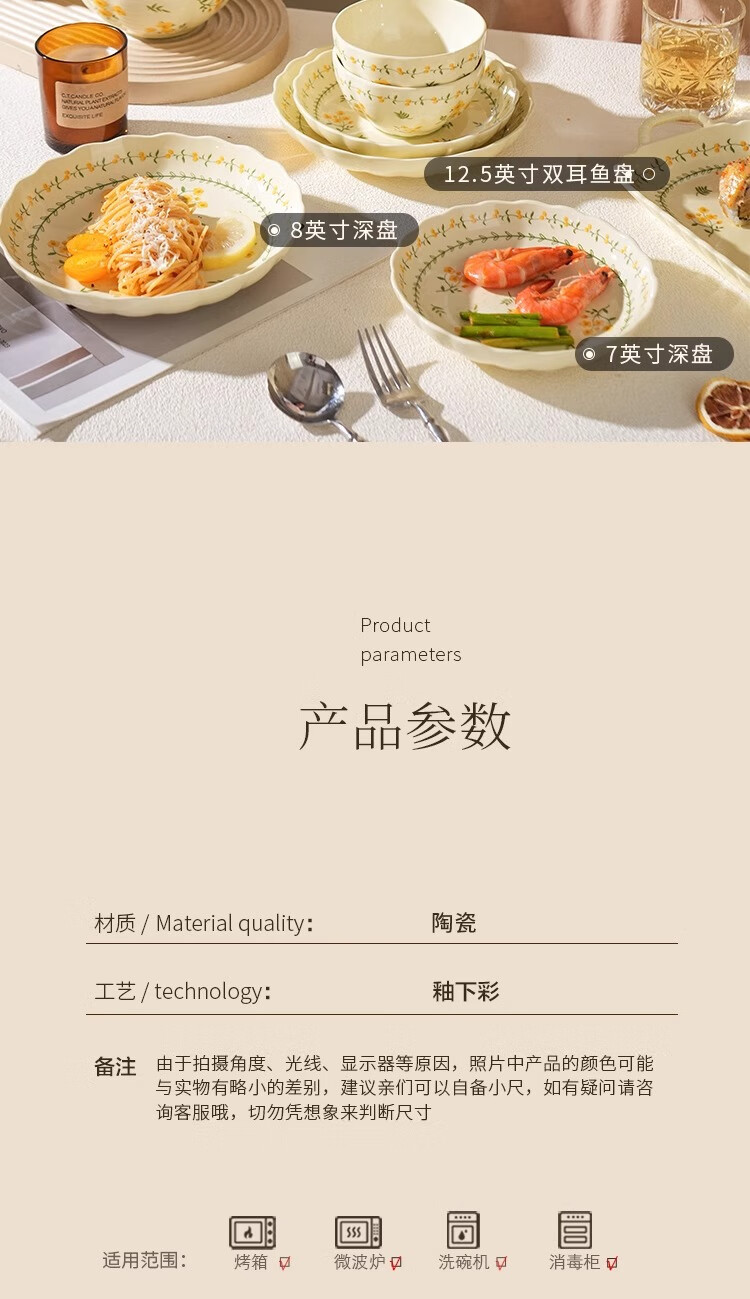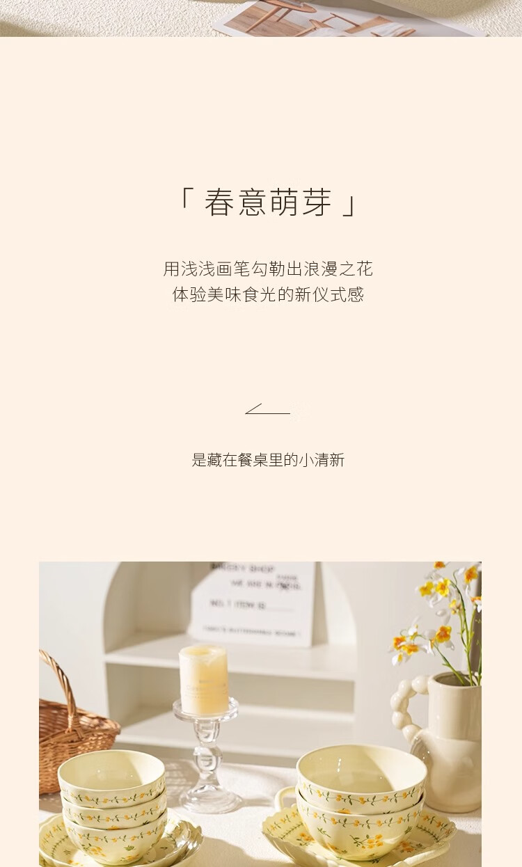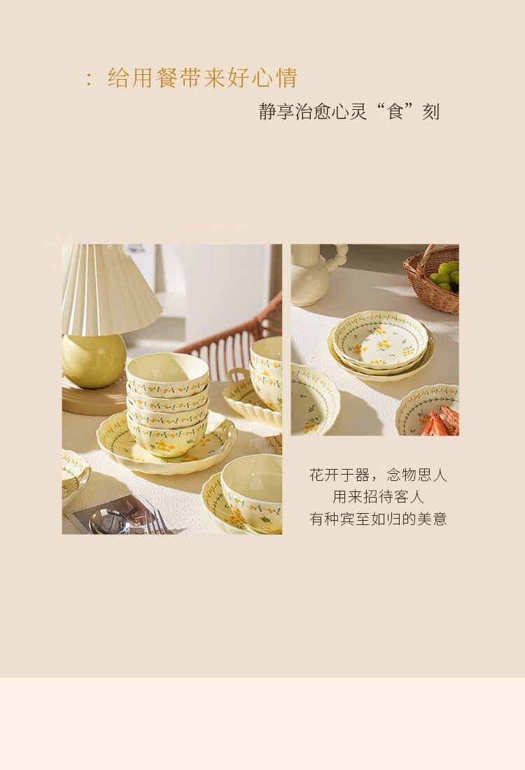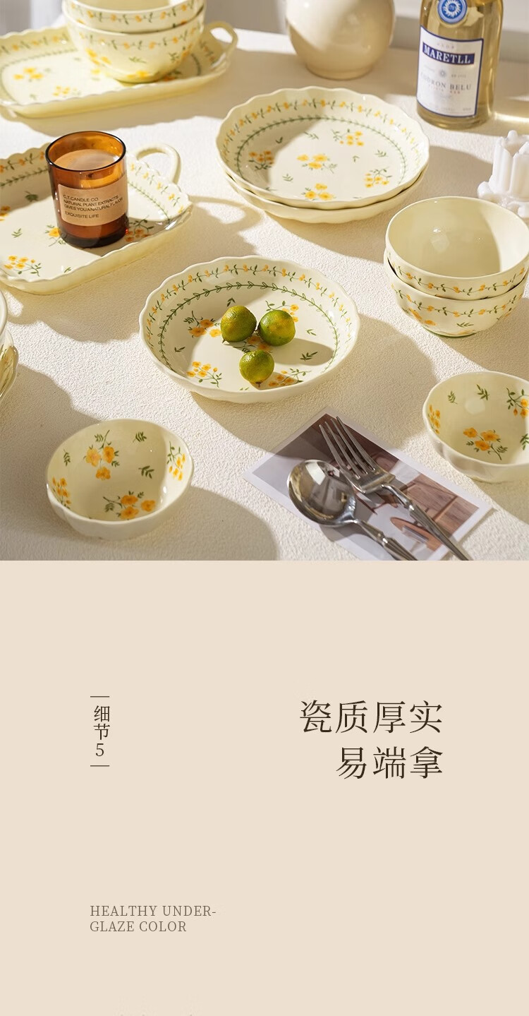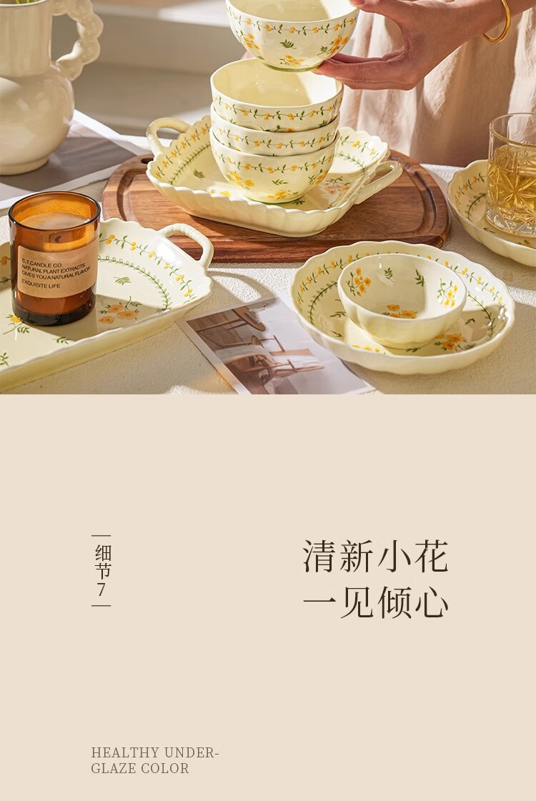Persson underglaze color bowl and plate set household small fresh ceramic bowl and plate set combination housewarming gift tableware complete set spring cute 2-person meal 7-piece set