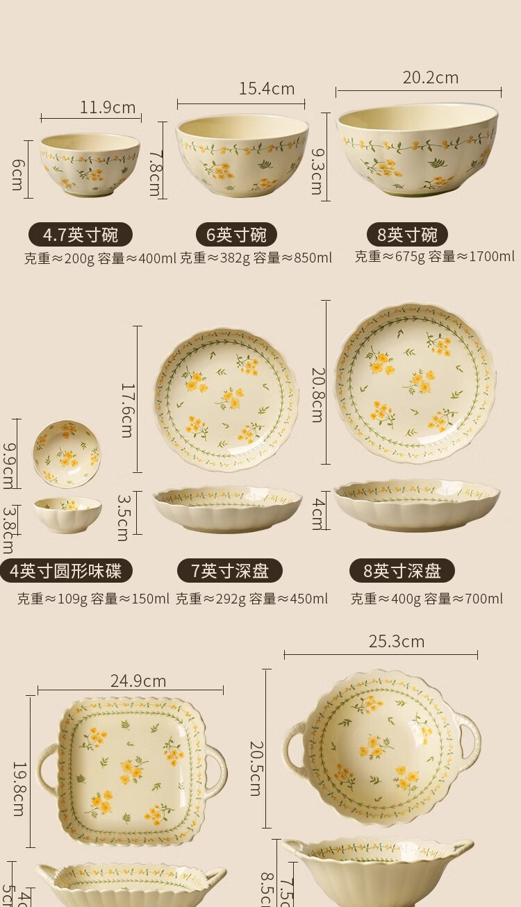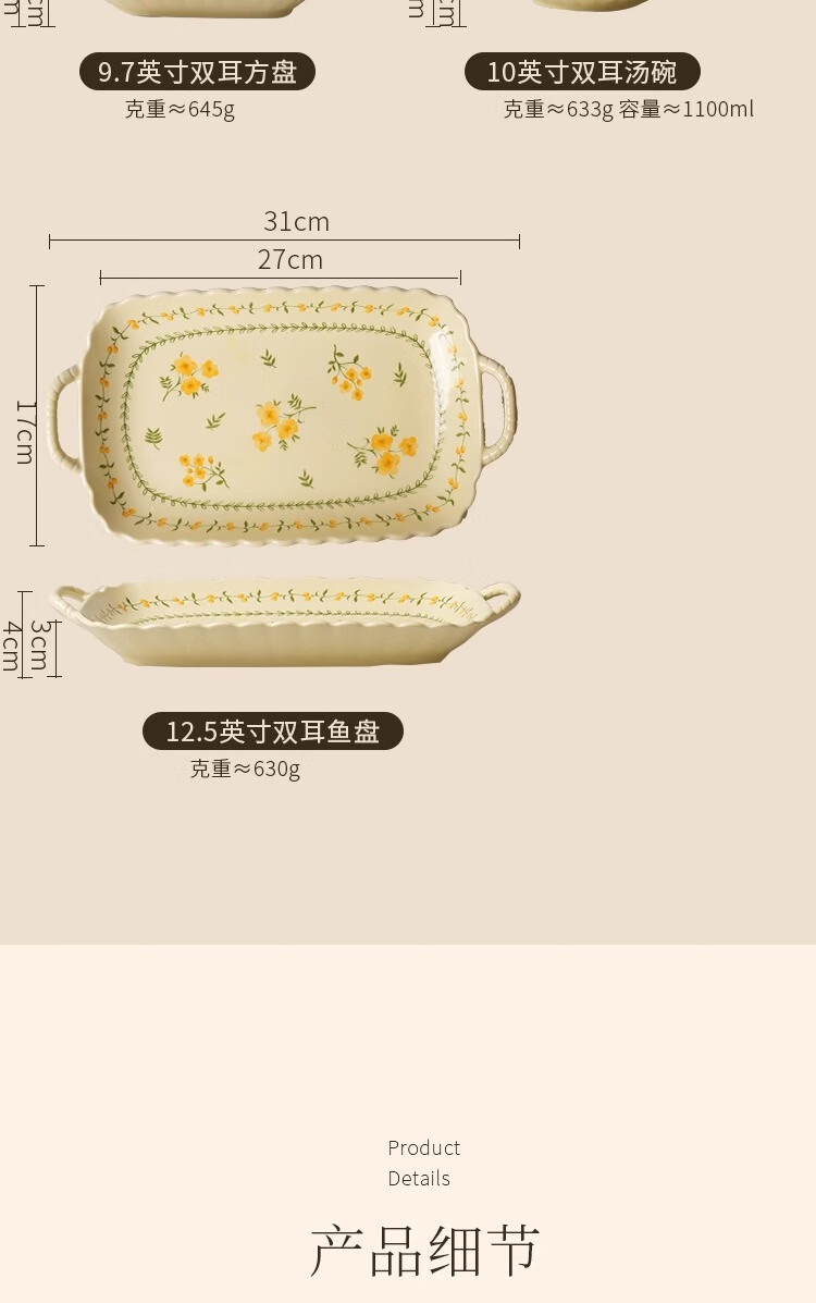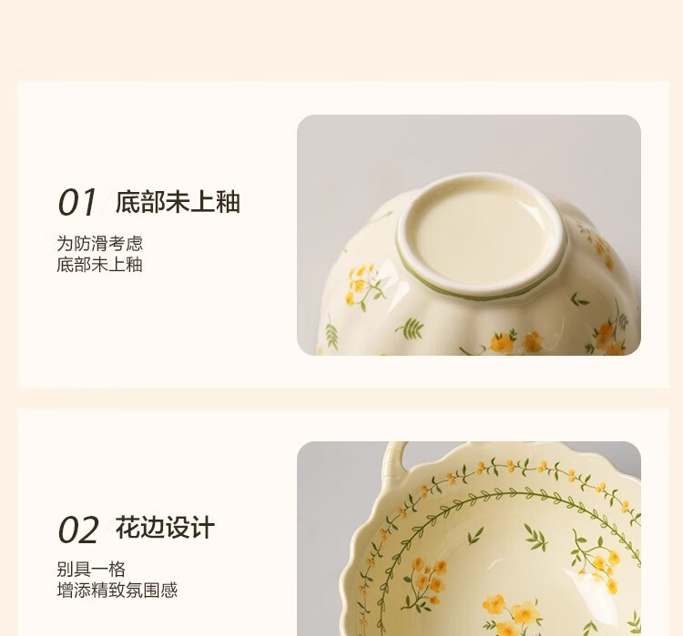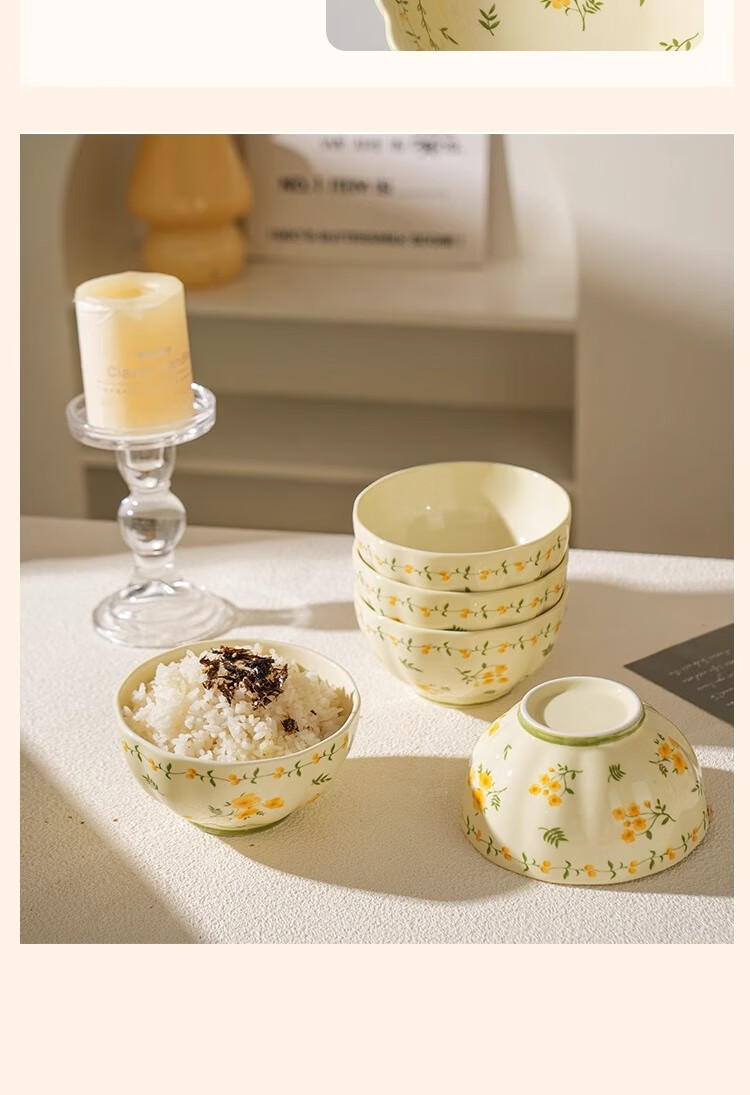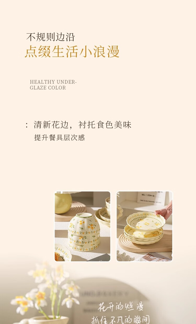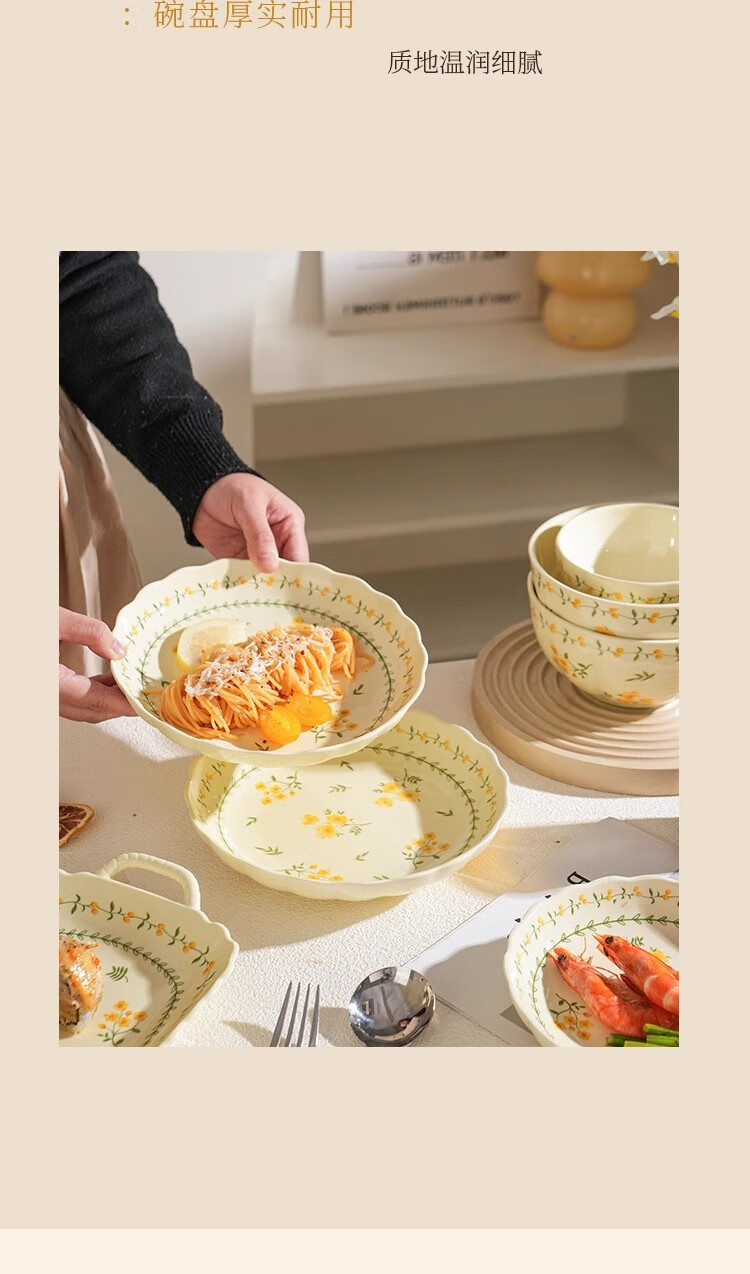Persson underglaze color bowl and plate set household small fresh ceramic bowl and plate set combination housewarming gift tableware complete set spring cute 2-person meal 7-piece set