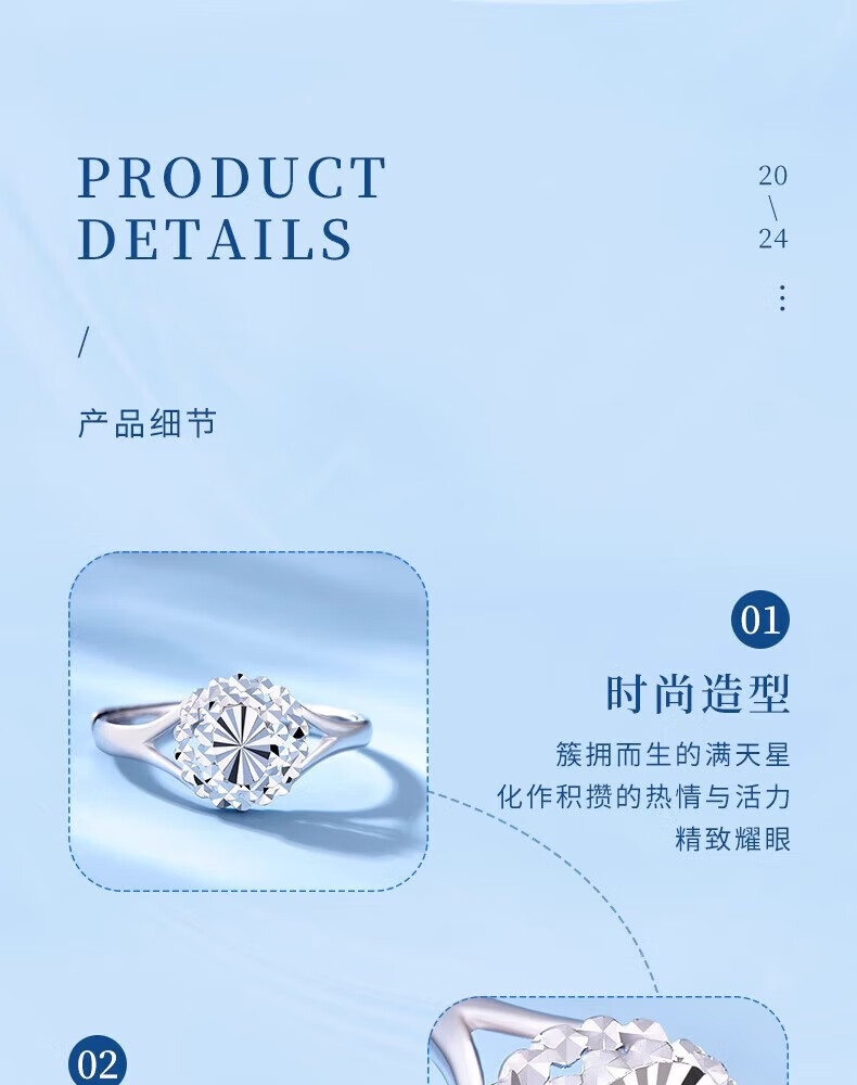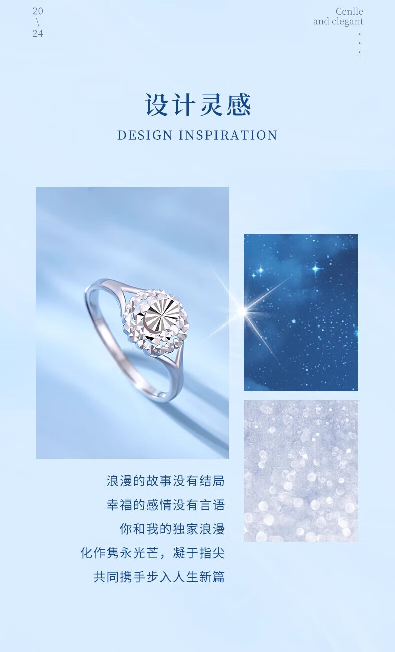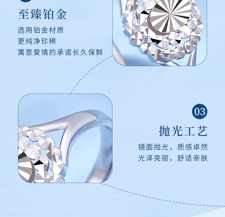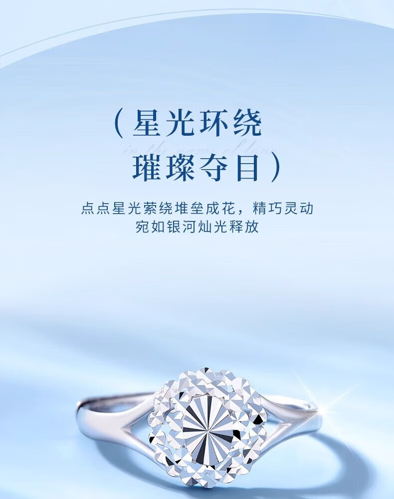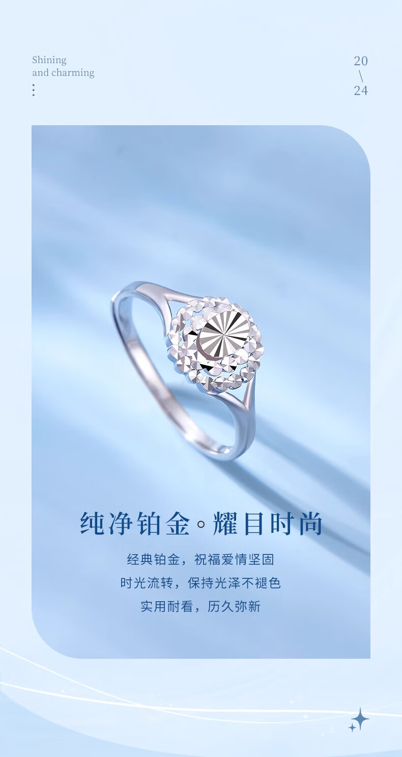 Lao Fengxiang Gypsophila PT950 platinum ring women's genuine platinum ring proposal fiancée birthday gift for girlfriend Gypsophila platinum ring about 2.3g