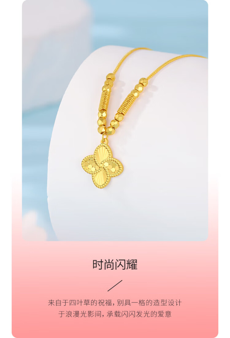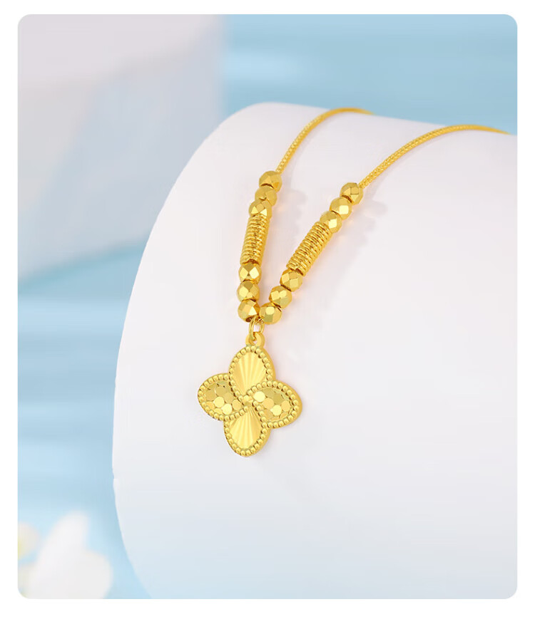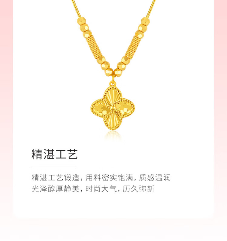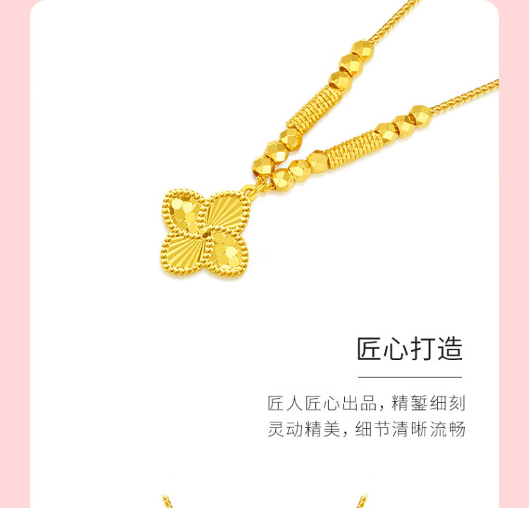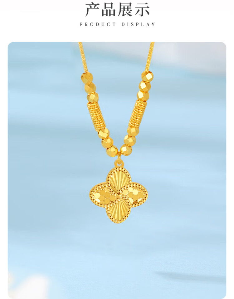 Chinese jewelry 18k gold gold necklace women's four-leaf clover set chain plain chain birthday gift for girlfriend and wife 18k gold four-leaf clover necklace gold weight about 1.7g