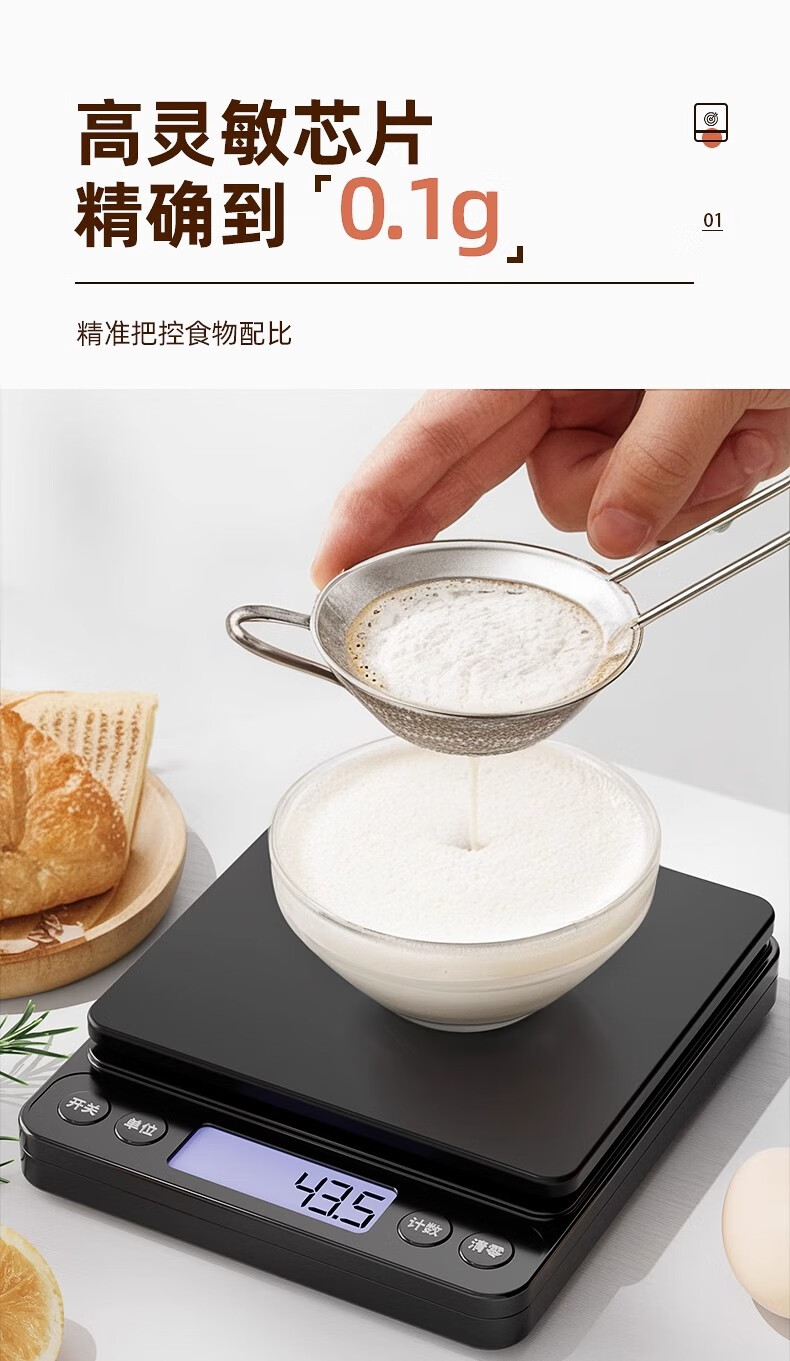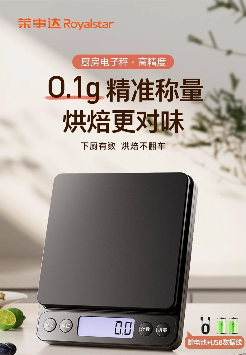 Royalstar Kitchen Scale Household Small Gram Baking High-Precision Accurate Weighing Food Food Weighing Electronic Scale High-Precision Battery Model 3kg/0.1g Six Great Gifts