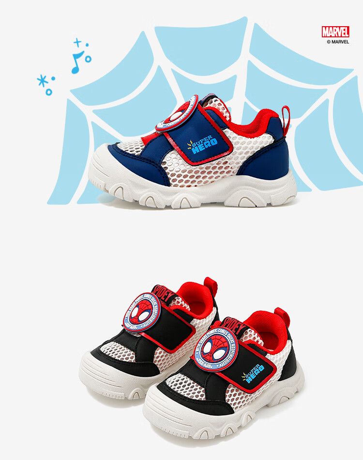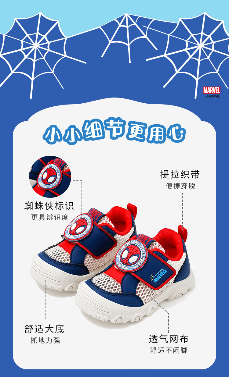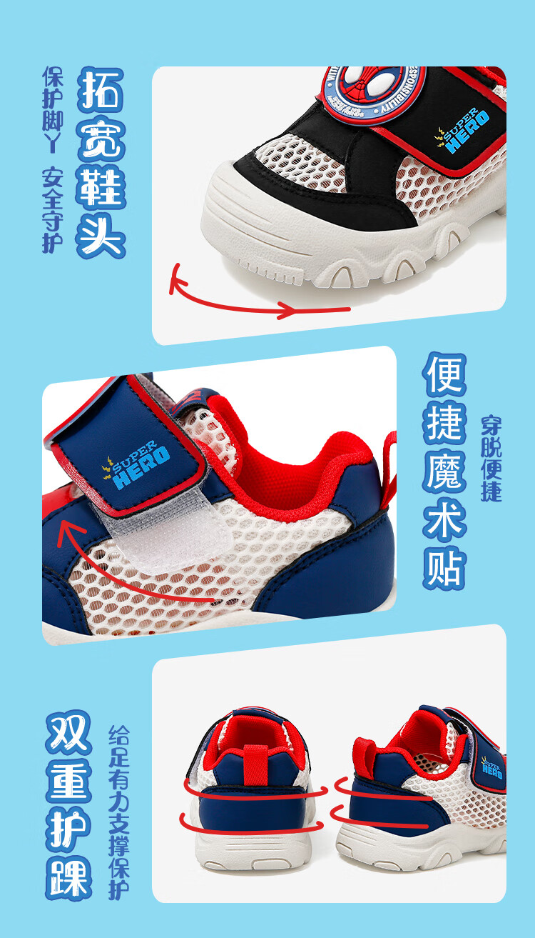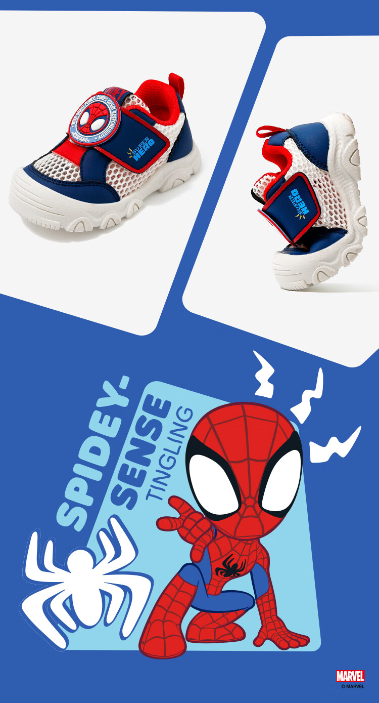 Disney Children's Shoes Spider-Man Boys Toddler Shoes Summer New Children's Girls Sandals Mesh Breathable Kindergarten Indoor Shoes Beige Blue 15 Inner Length 11.5cm Recommended Foot Length 12cm