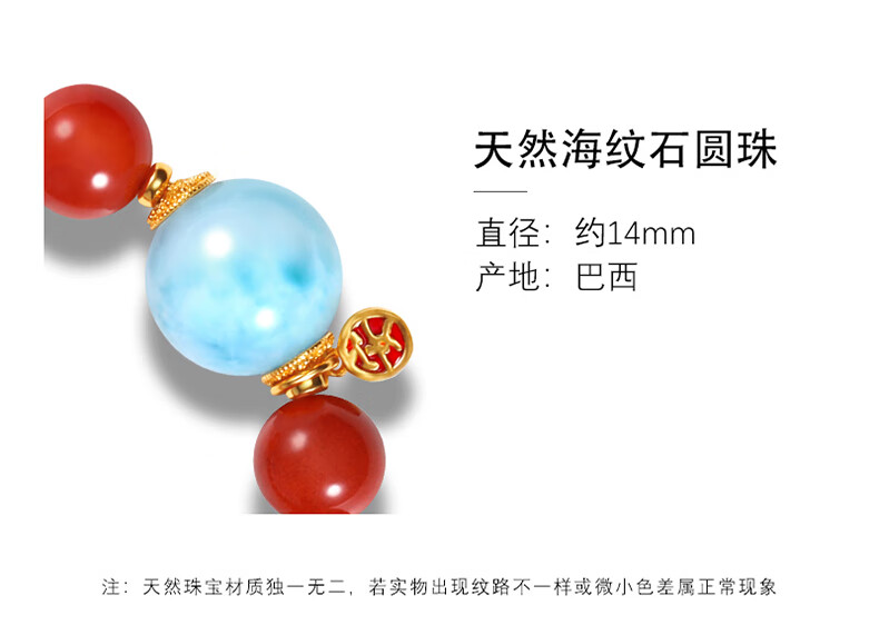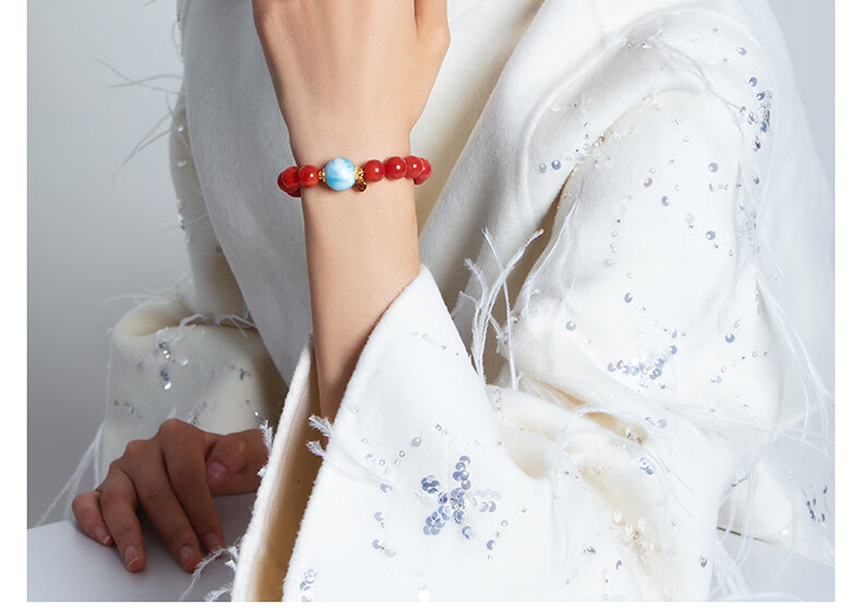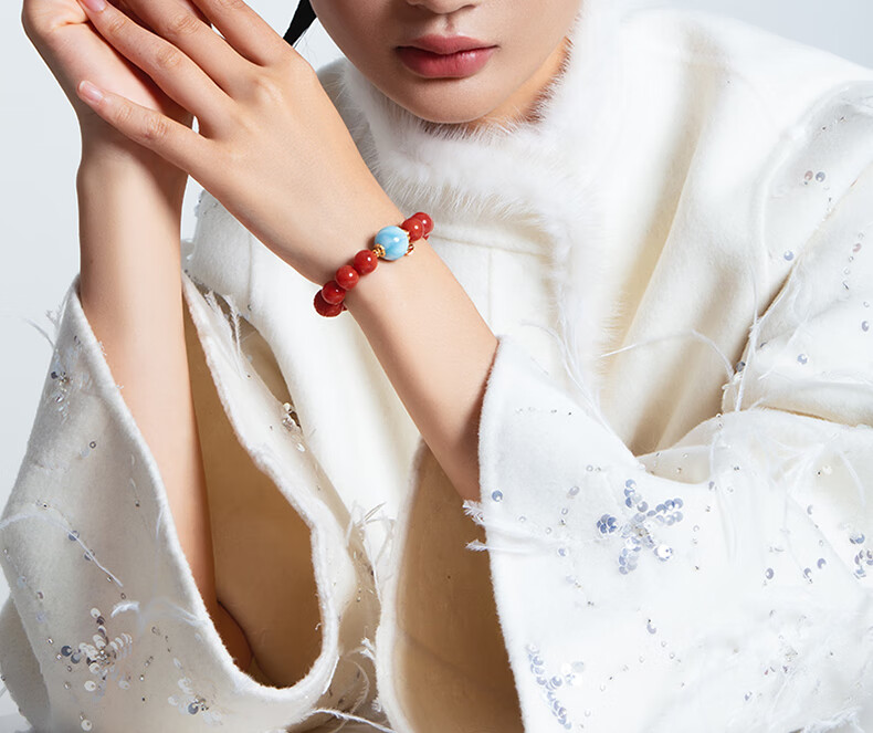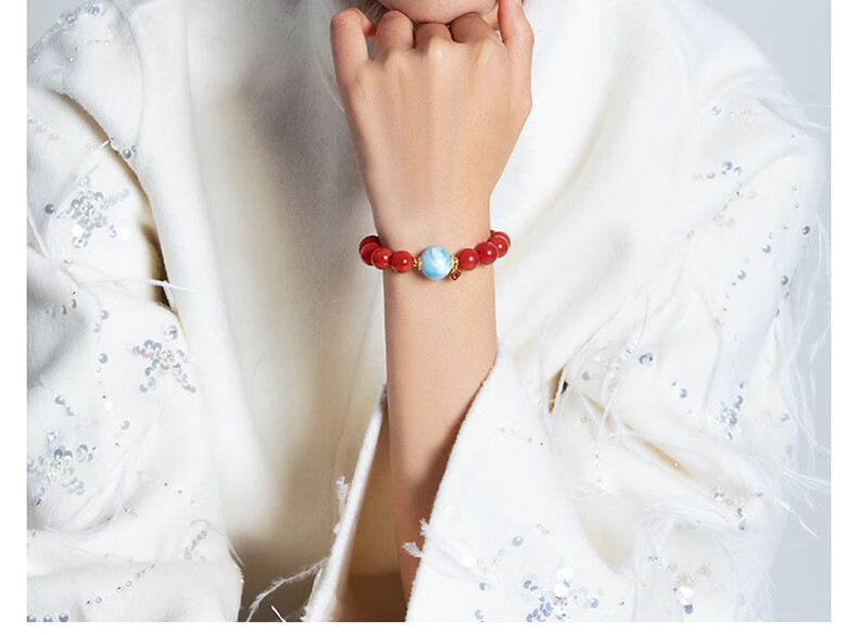 La Yun Feiyin Natural Full Flesh Southern Red Bracelet Women's S925 Silver Plated 18K Gold Sea Grain Stone 10mm Ball Bracelet S 13.5cm-15cm 10mm