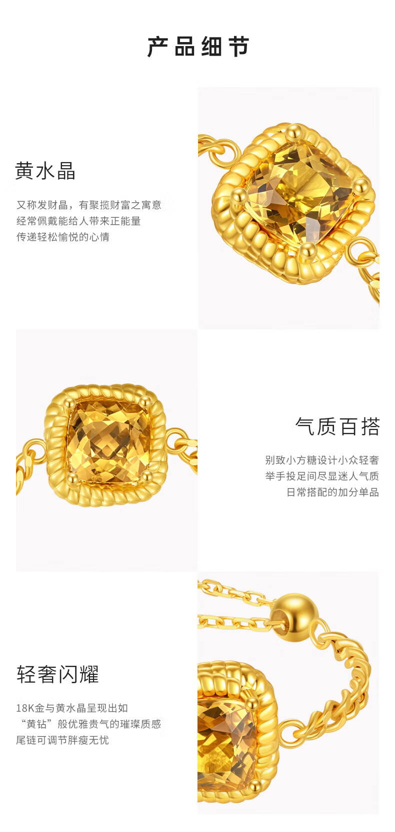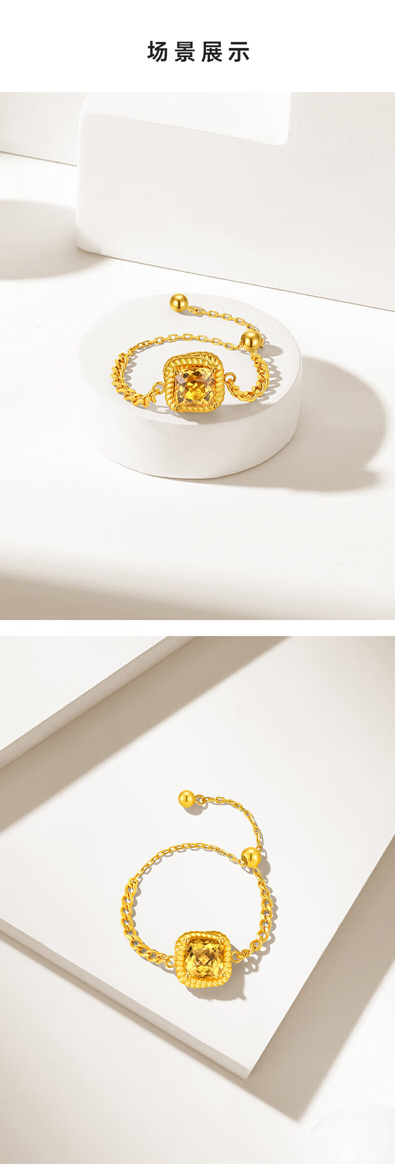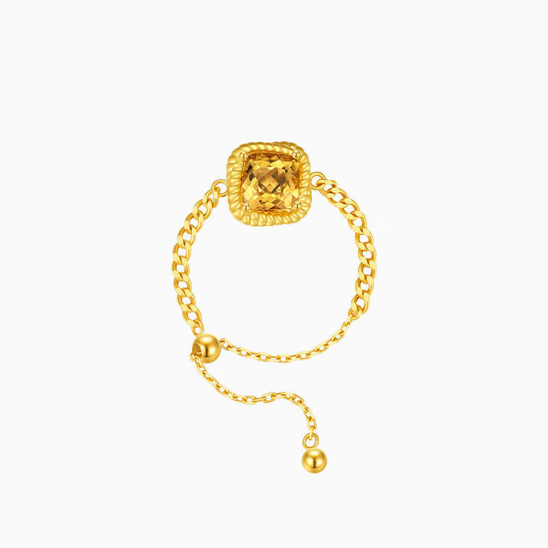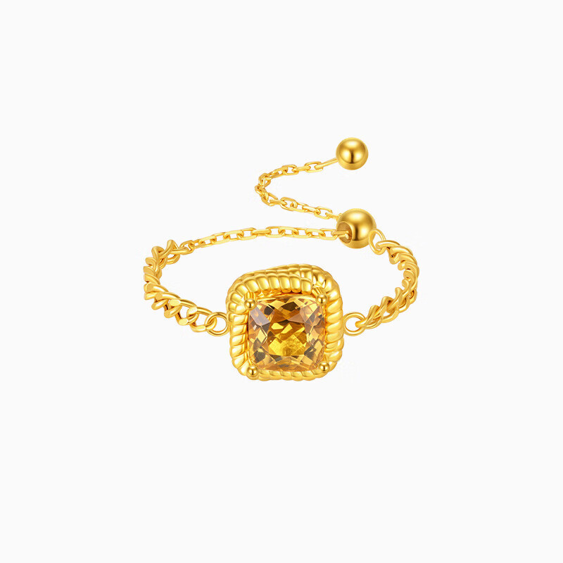 Chao Acer yellow 18K gold small sugar cube citrine ring women's ring ring bracelet gift for girlfriend birthday gift 18K gold crystal ring