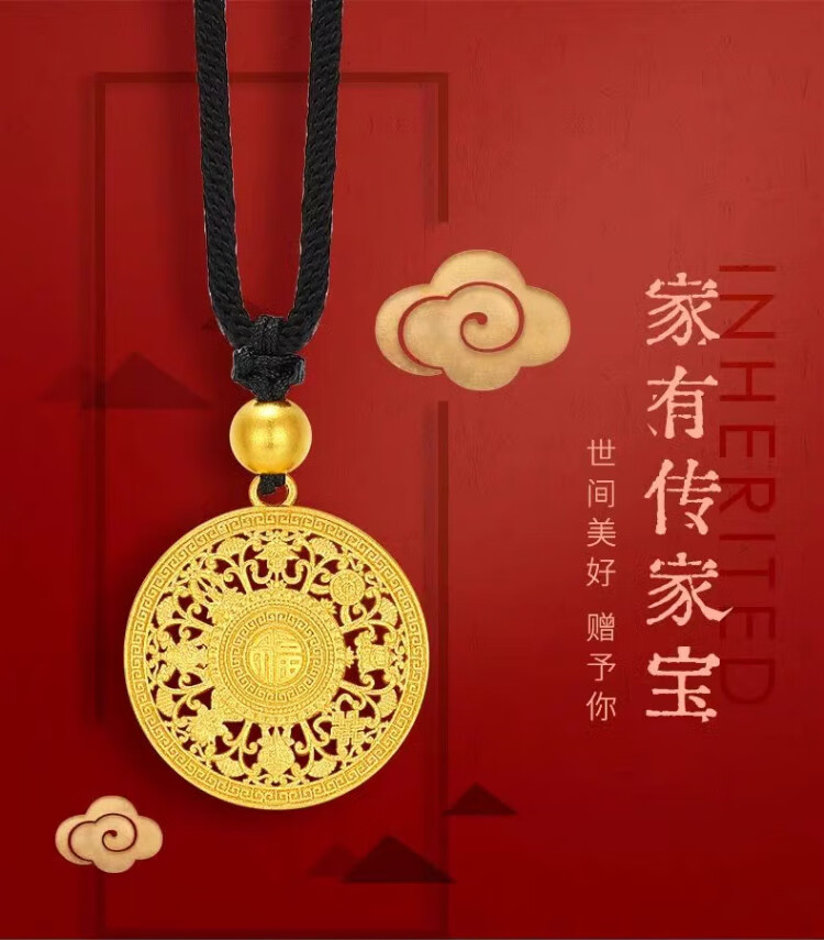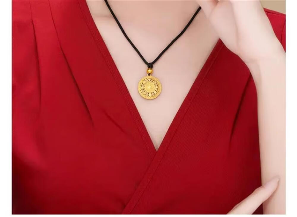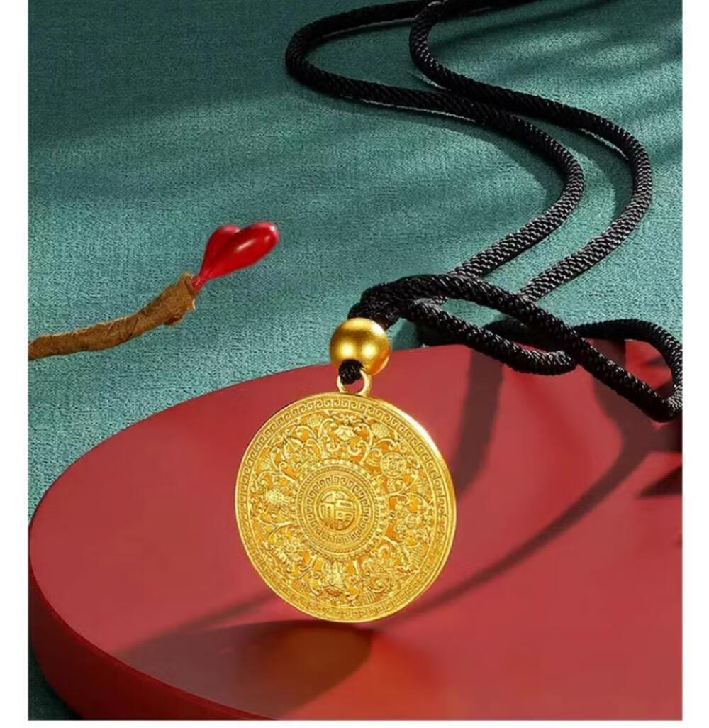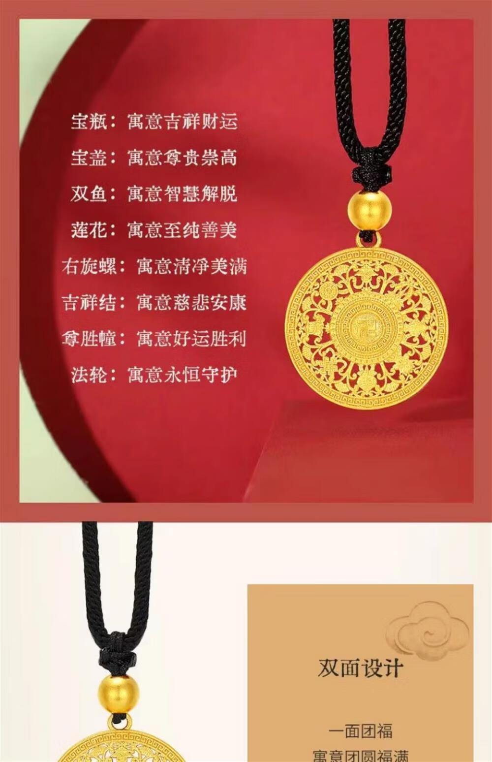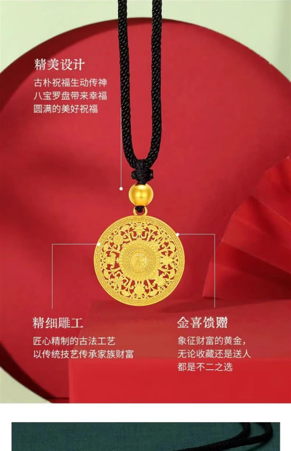 Shaoyu Eight Treasures Compass Pendant Gold Silver-covered Transfer Pearl Water Shell Animal Year Necklace for Men and Women Couples Heirloom Eight Auspicious Pendant (Black Rope) 0.8