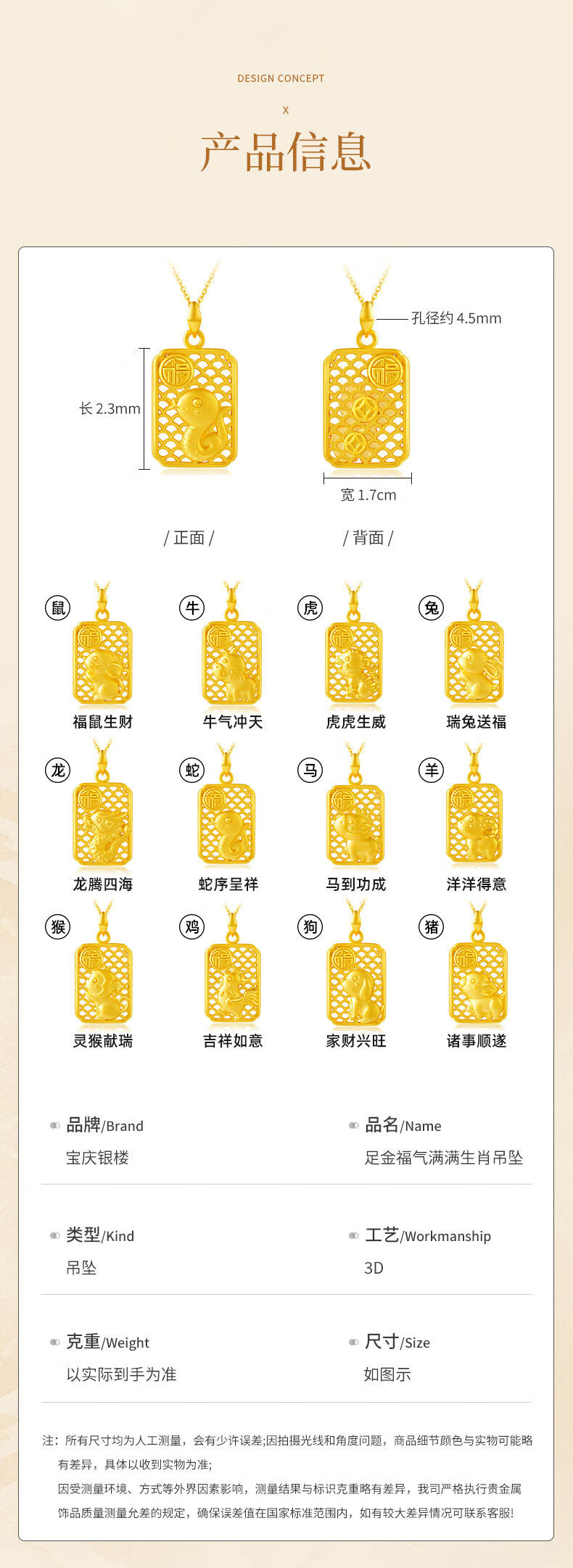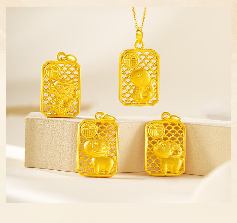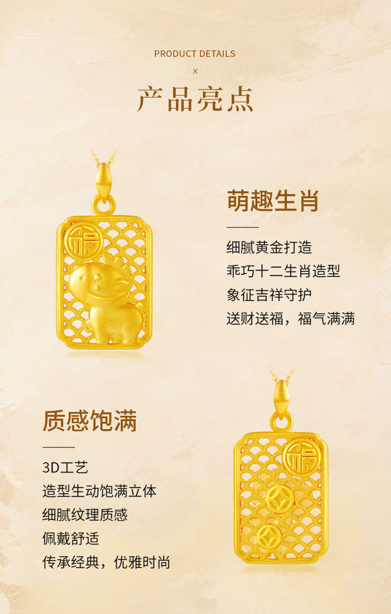 Shaoyu Gold Pendant Pure Gold 3D Hard Gold Fortune Twelve Zodiac Pendant Pure Gold Necklace Zodiac Year Neck Ornament Bullish 3.27g