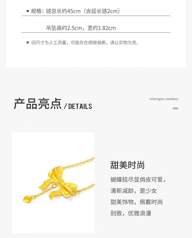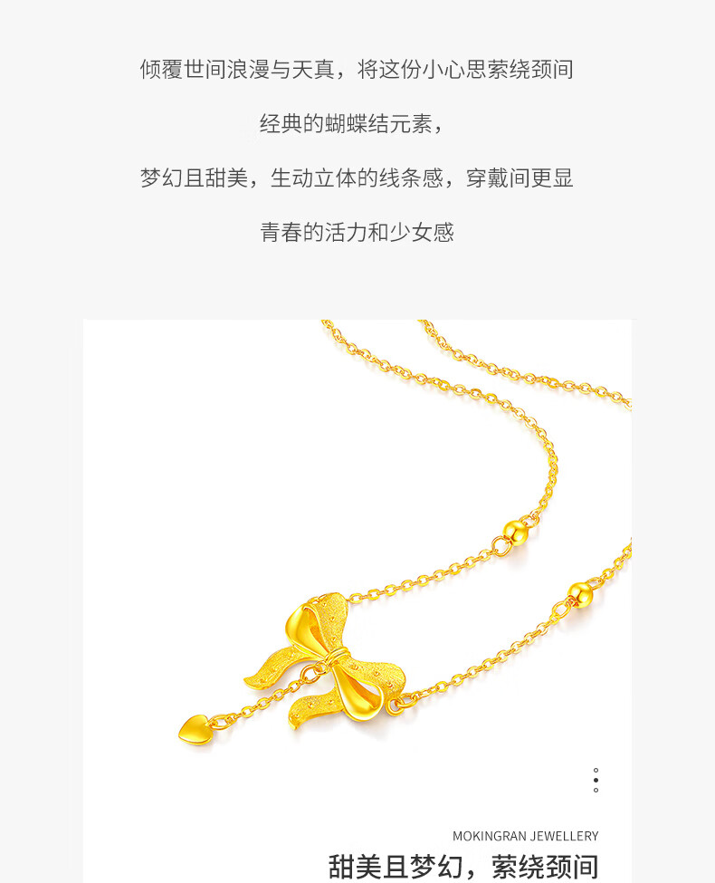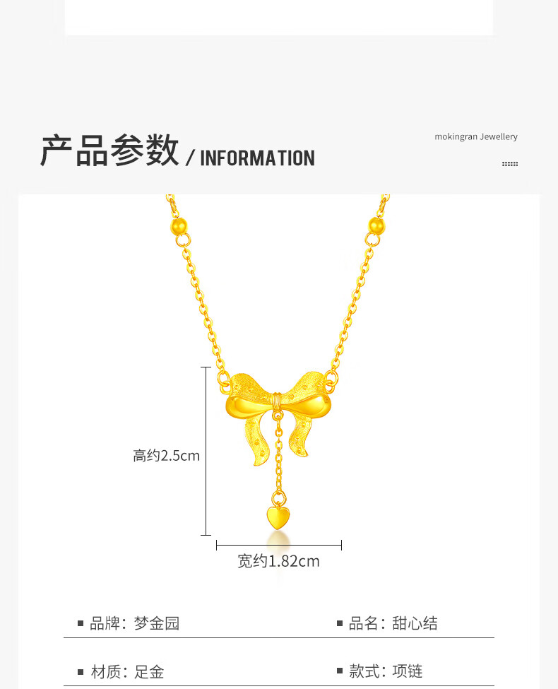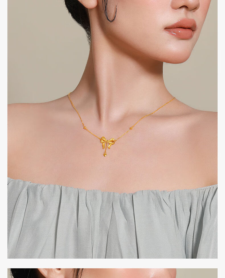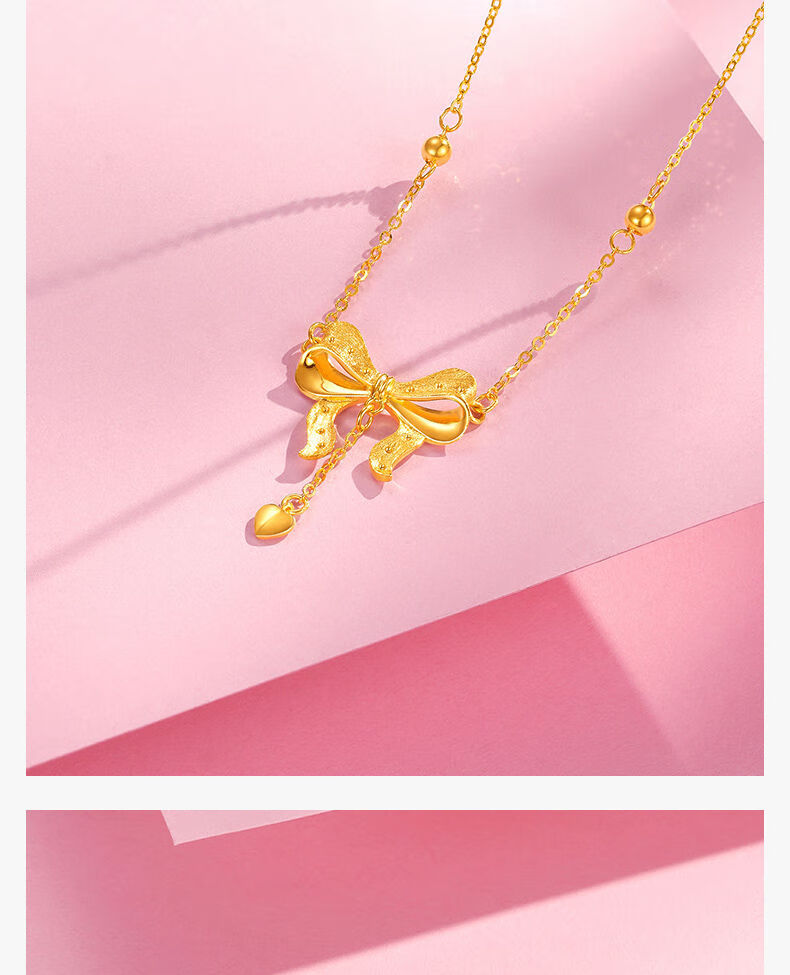 Shaoyu 2025 new fugitive princess gold necklace female love bow pure gold jewelry pendant birthday gift chain length 43.5cm+2.5cm 4.46g