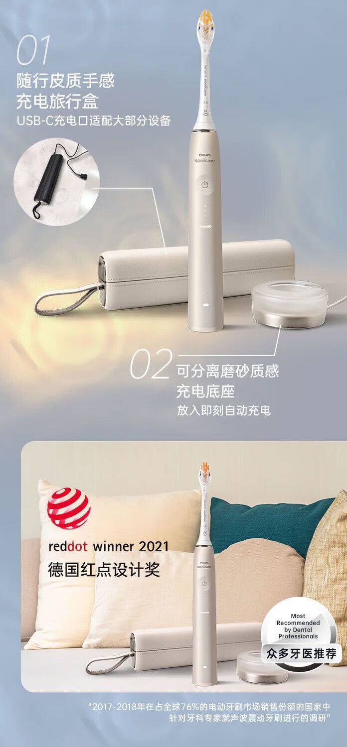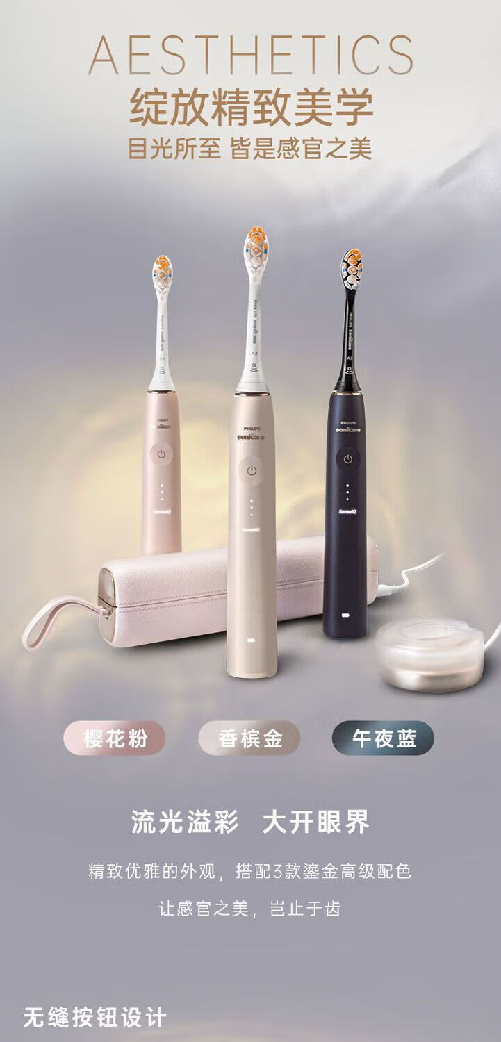 AVENT PHILIPS Philips Electric Toothbrush HX9996 Exclusive Intelligent High-definition Sonic Vibration Whitening Gum Protection Adult HX9996 Cherry Blossom Powder + Cup Recharge + Replacement Brush *4 No Box