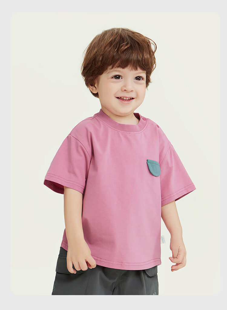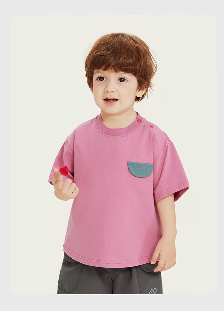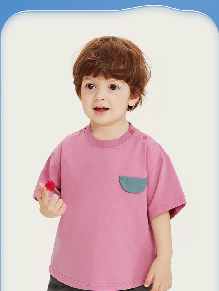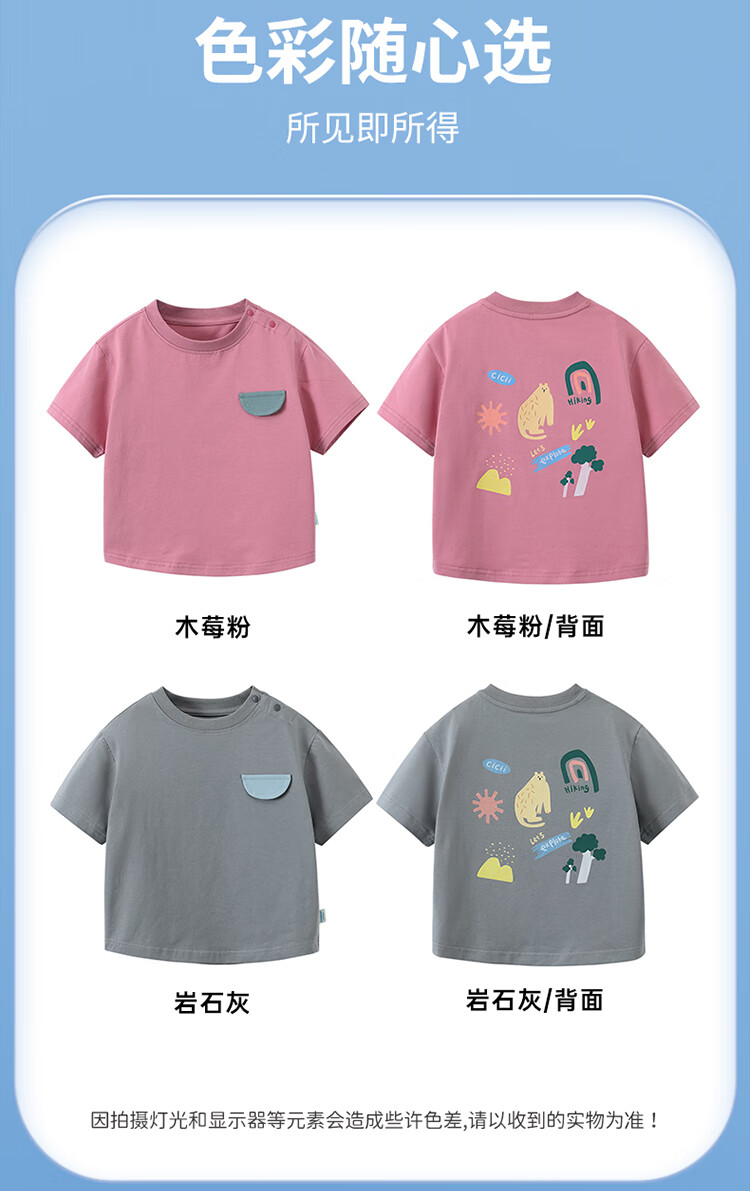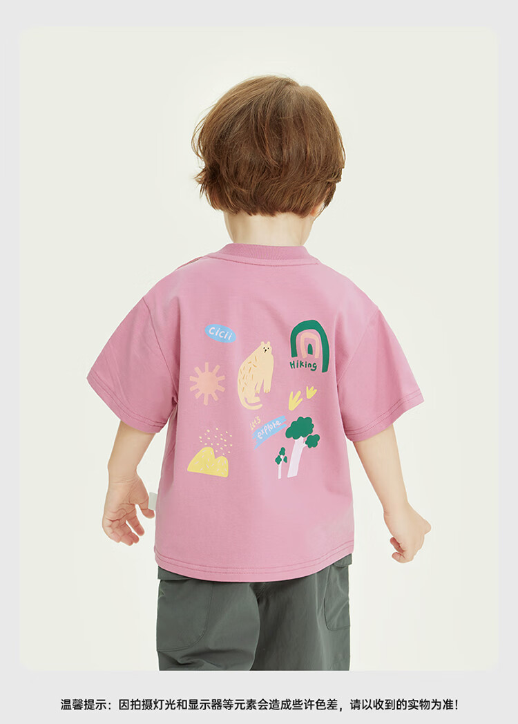 Ciciibear 7A antibacterial cool outdoor style boys short-sleeved T-shirt summer baby printed half-sleeved top children raspberry pink 100