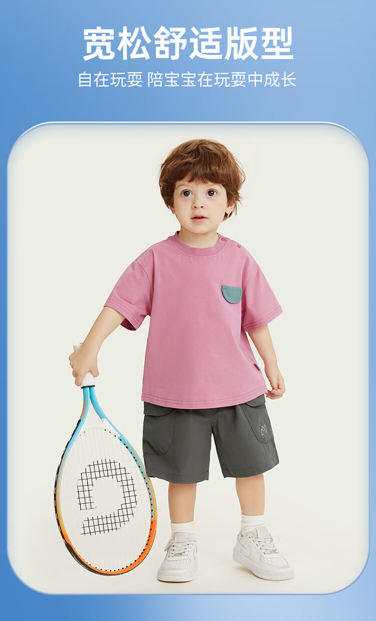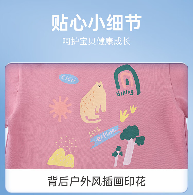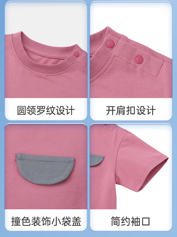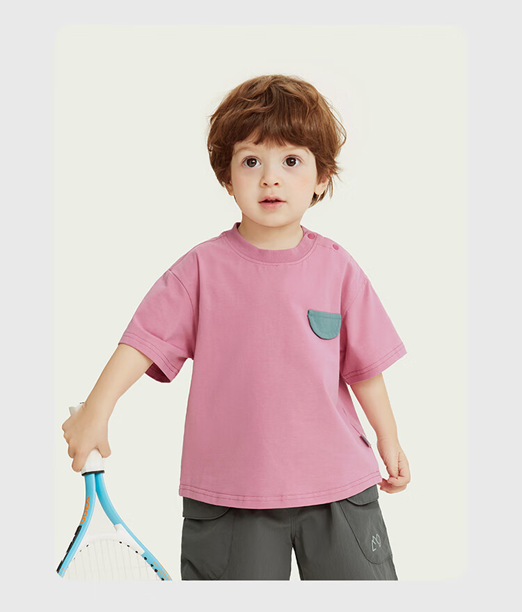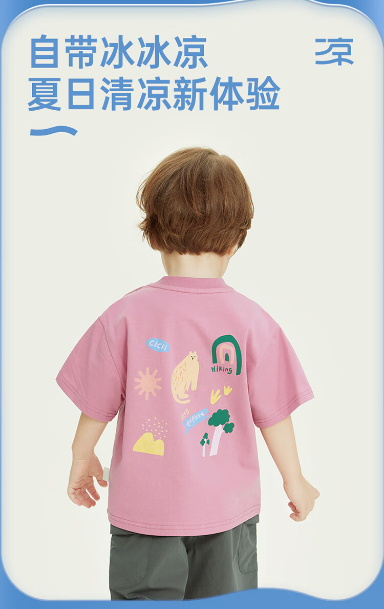 Ciciibear 7A antibacterial cool outdoor style boys short-sleeved T-shirt summer baby printed half-sleeved top children raspberry pink 100