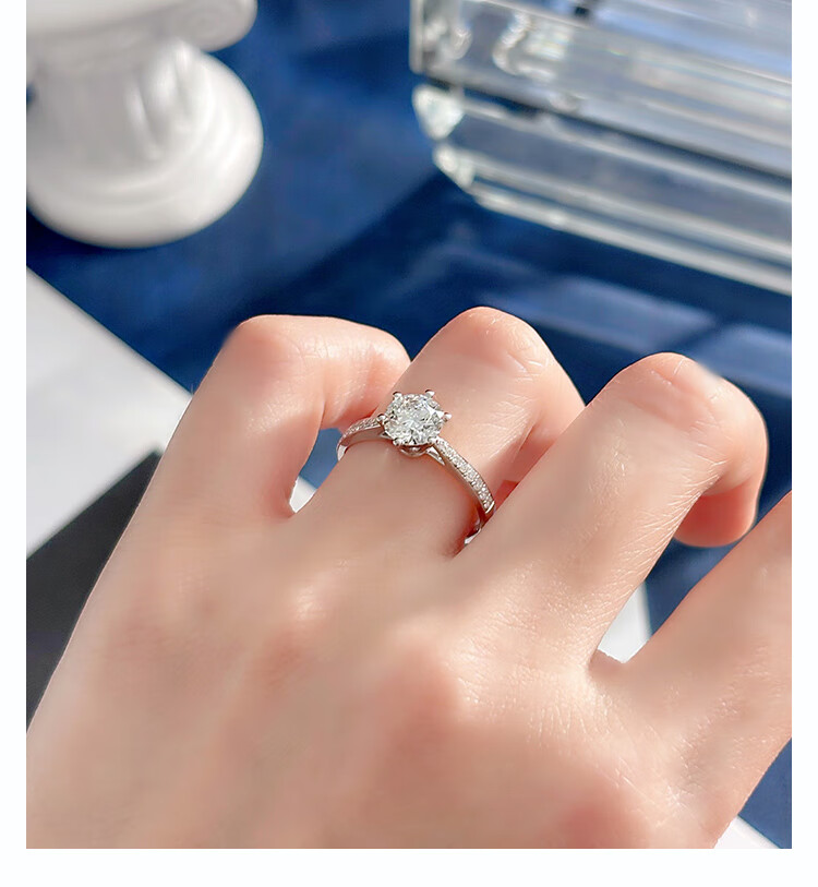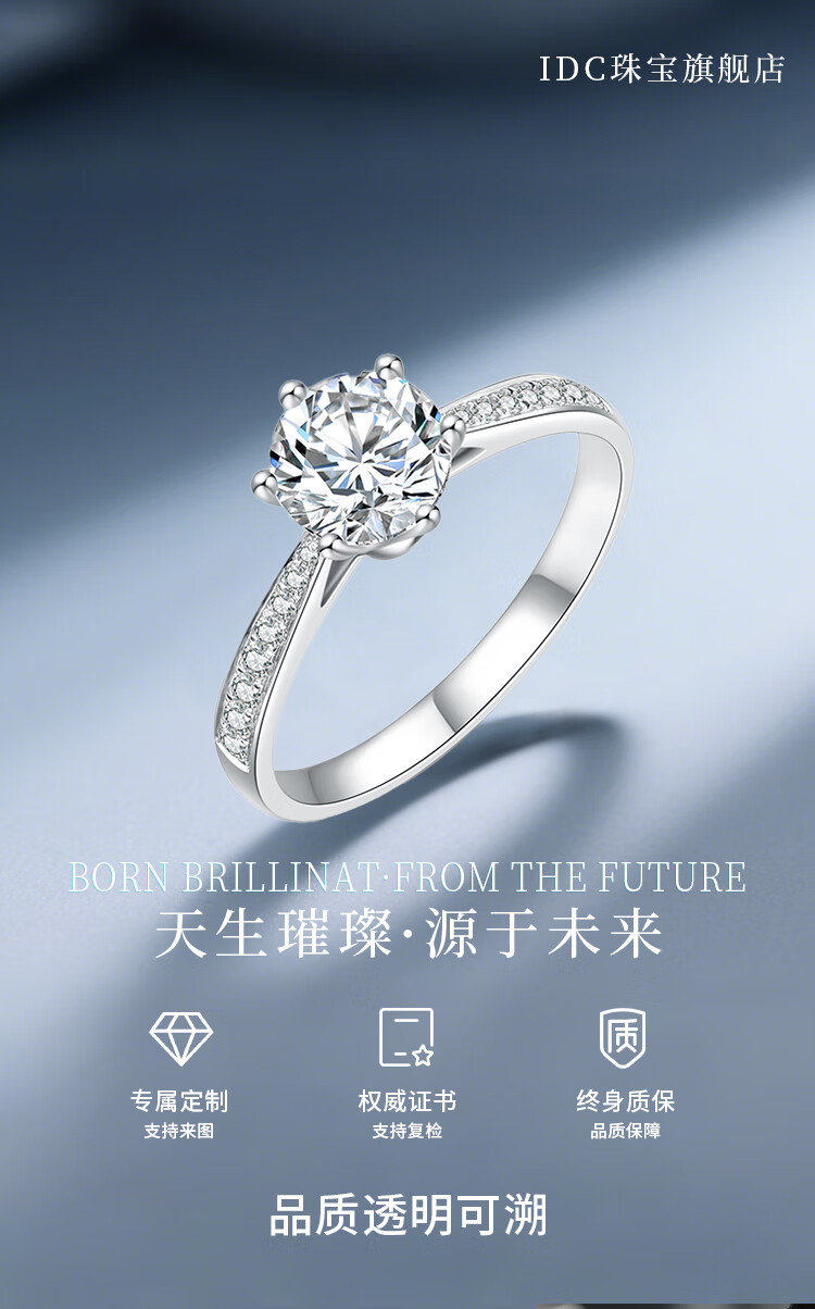IDC Henan artificially cultivated diamond 18K gold diamond ring Starlight six-claw wedding platinum 1 carat ring engagement Valentine's Day PT950 platinum D color/VVS/NGIC certificate 30 points heavy gold version