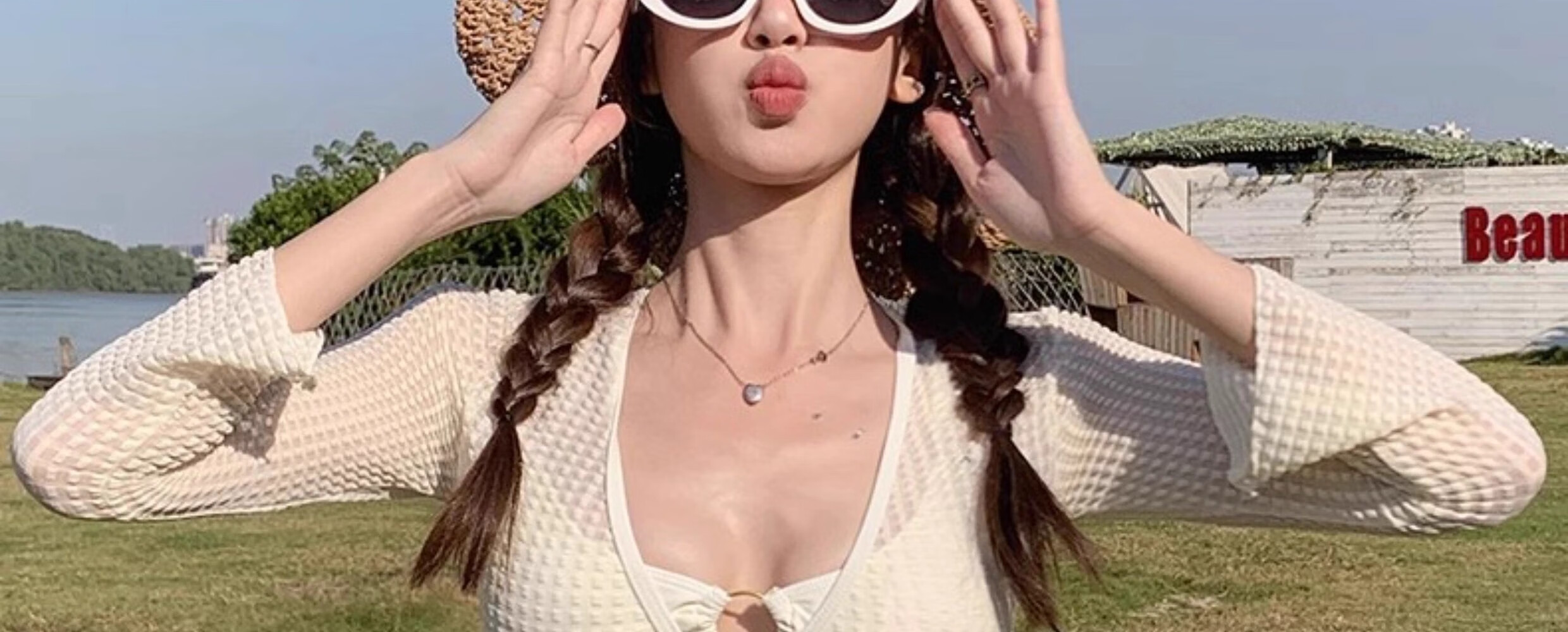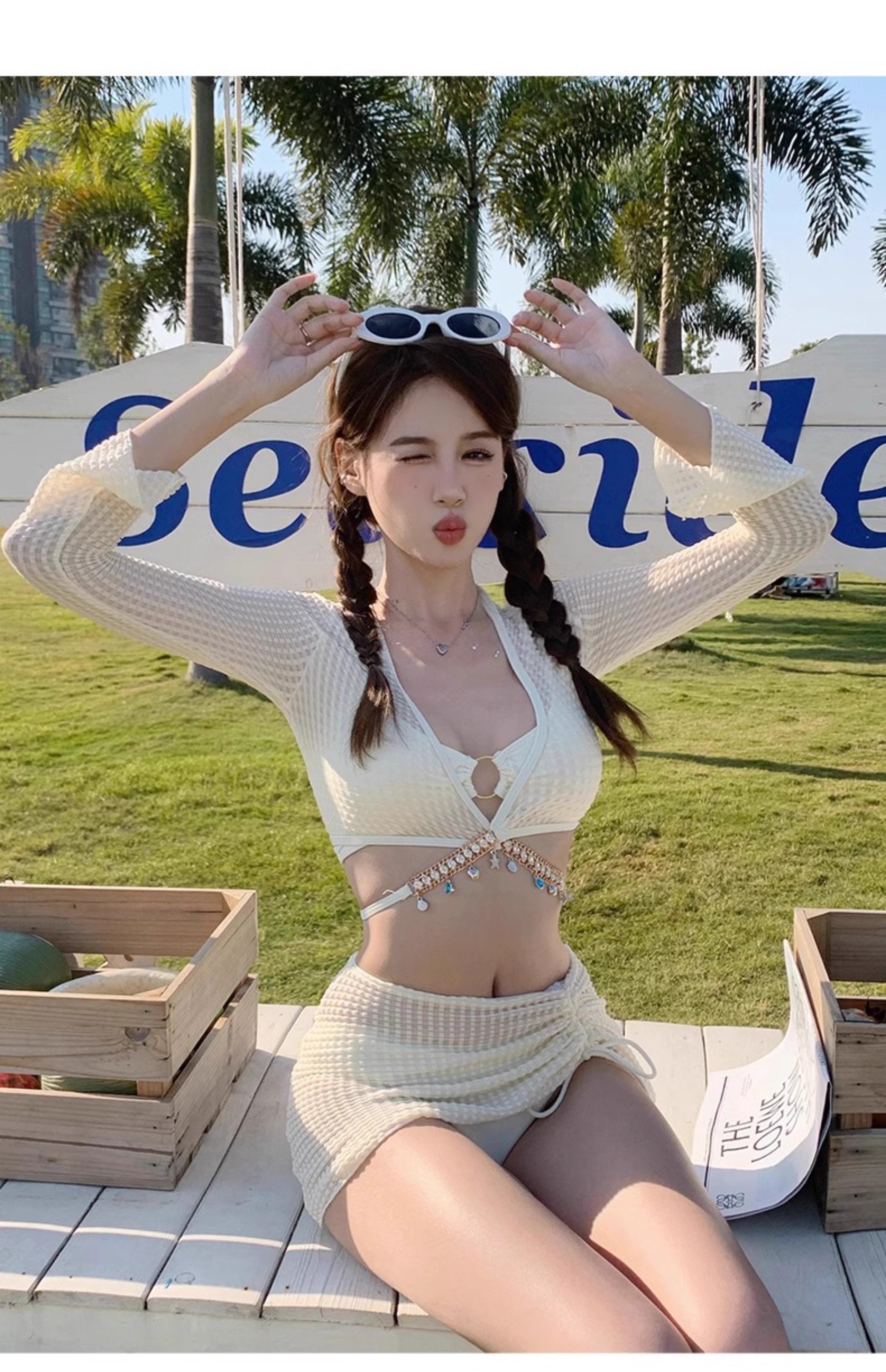 JIOESC swimsuit women's bikini four-piece sexy slim cover-up pure lust style beach hot spring hip skirt split swimsuit bikini-pure lust white average size 80-120Jin Jin equals 0.5 kg