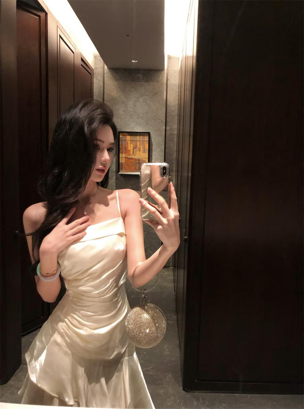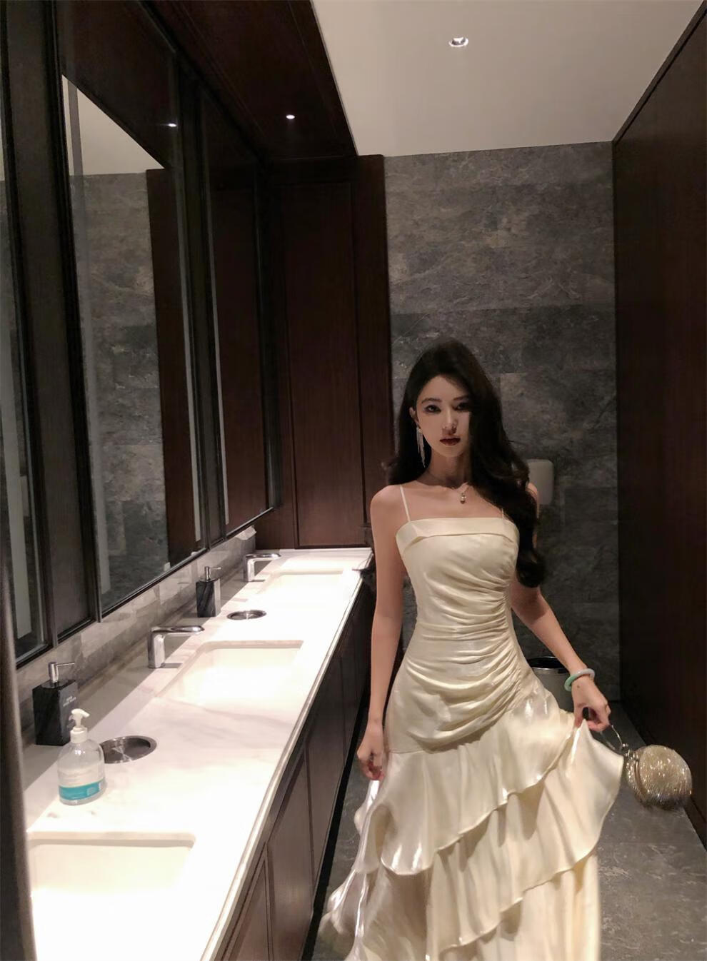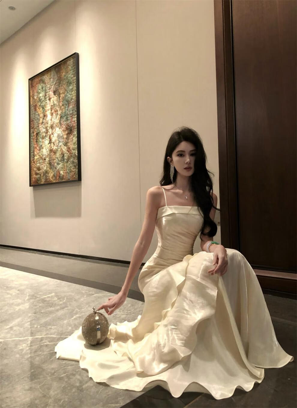 European M niche light luxury high-end suspender waist birthday dress for women coming of age fishtail banquet dress 6074 Champagne S