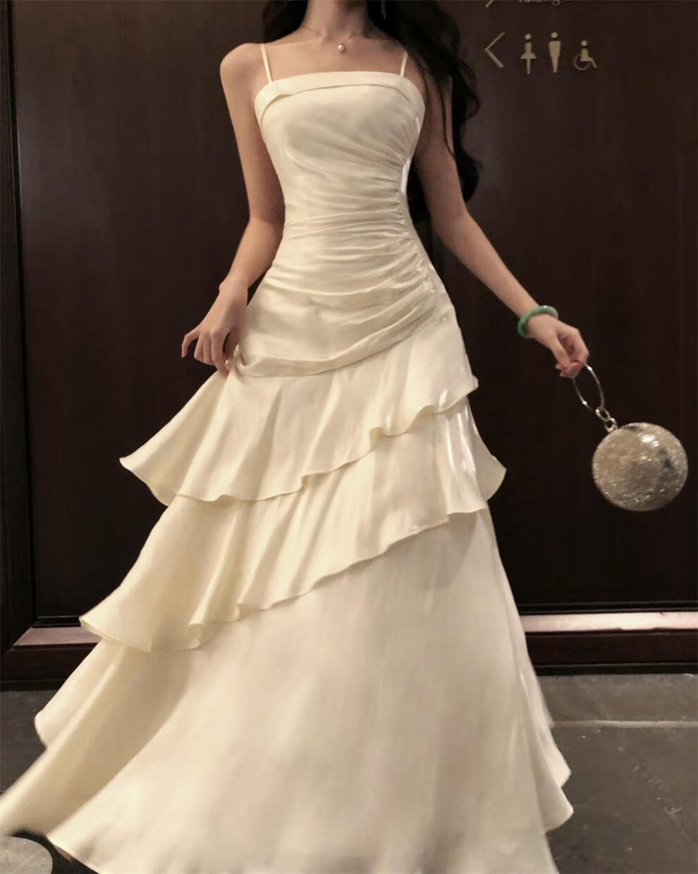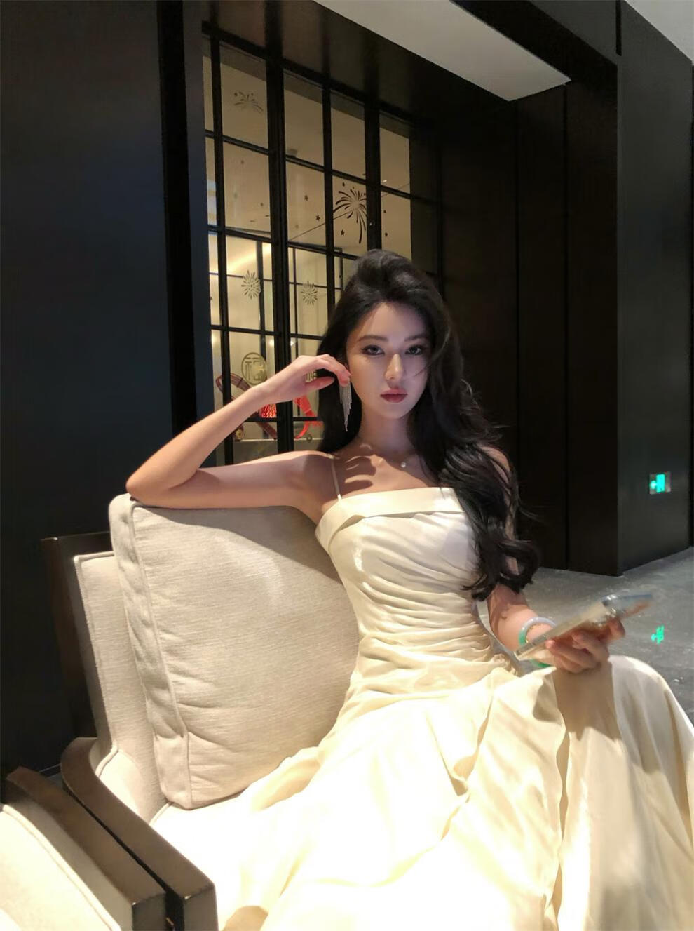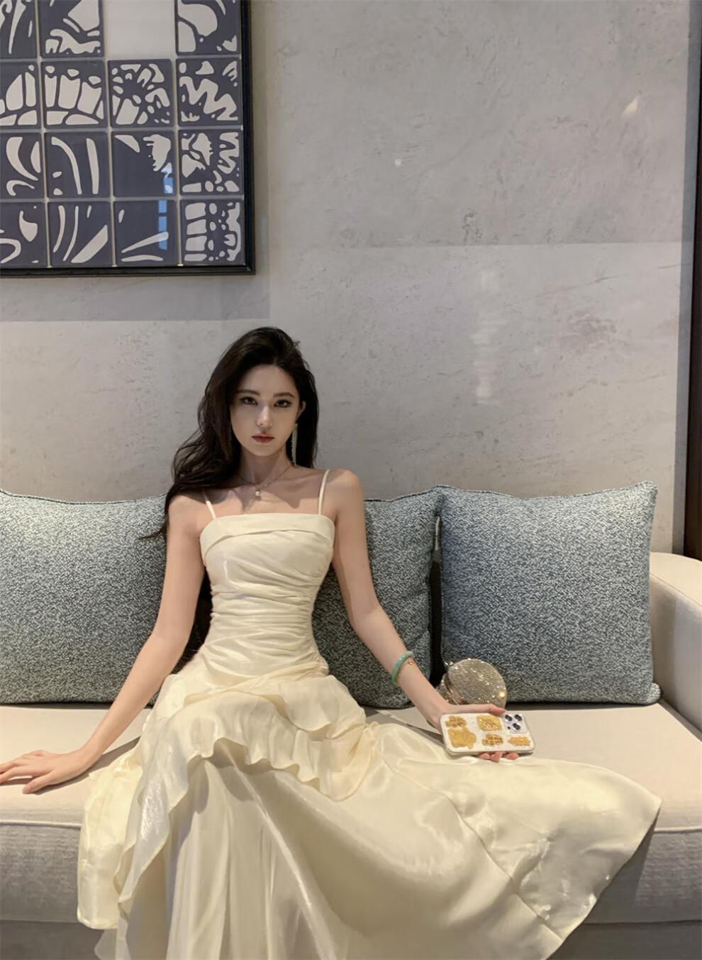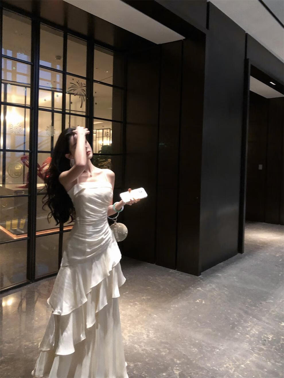 European M niche light luxury high-end suspender waist birthday dress for women coming of age fishtail banquet dress 6074 Champagne S