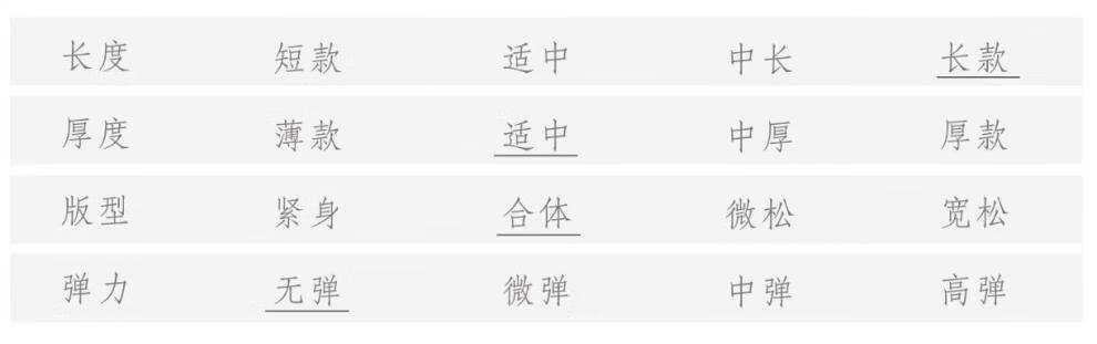 China (cm) 160-165/84-86 165-170 / 88-90 167-172 / 92-96 168-173 / 98-102 170-176 / 106-110