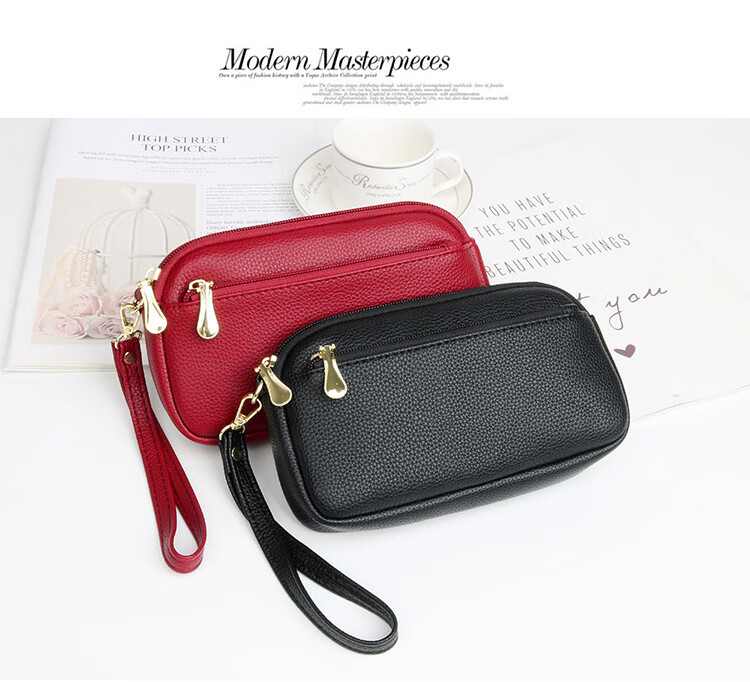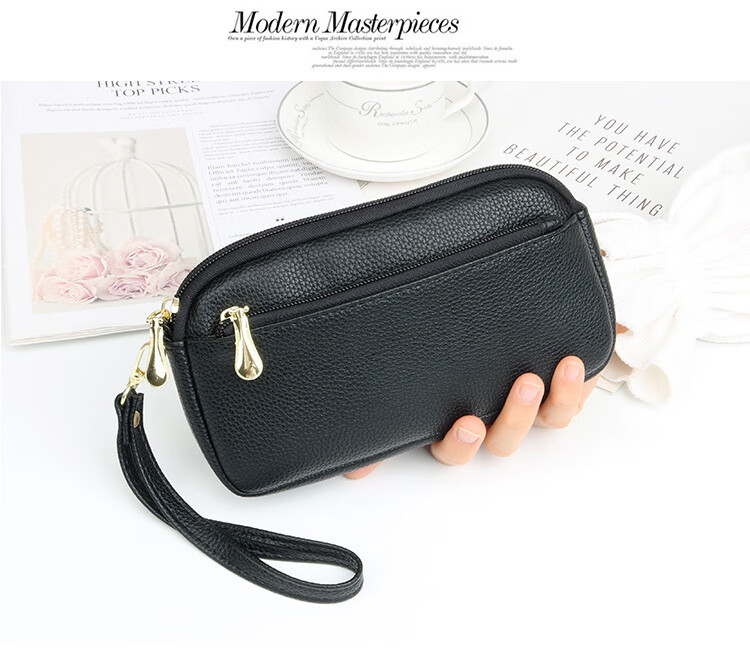 Yunluo Fashion Chinese Valentine's Day Women's Long Wallet Temperament Women's Bag Hand-carrying Clutch Bag Simple Coin Purse Clutch Bag Mobile Phone Bag Black