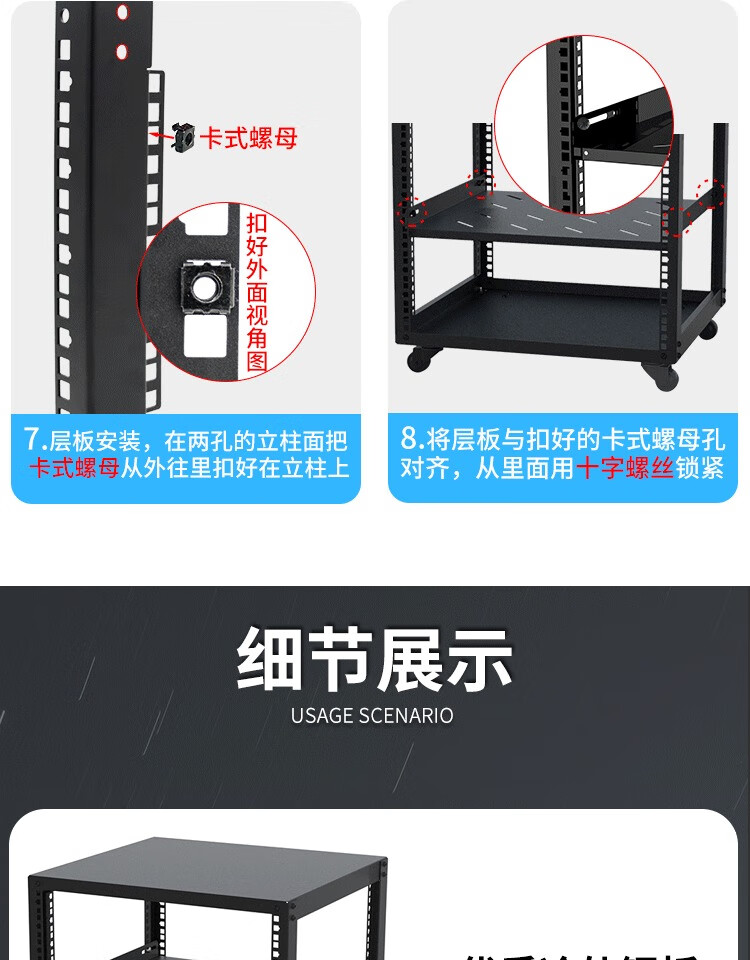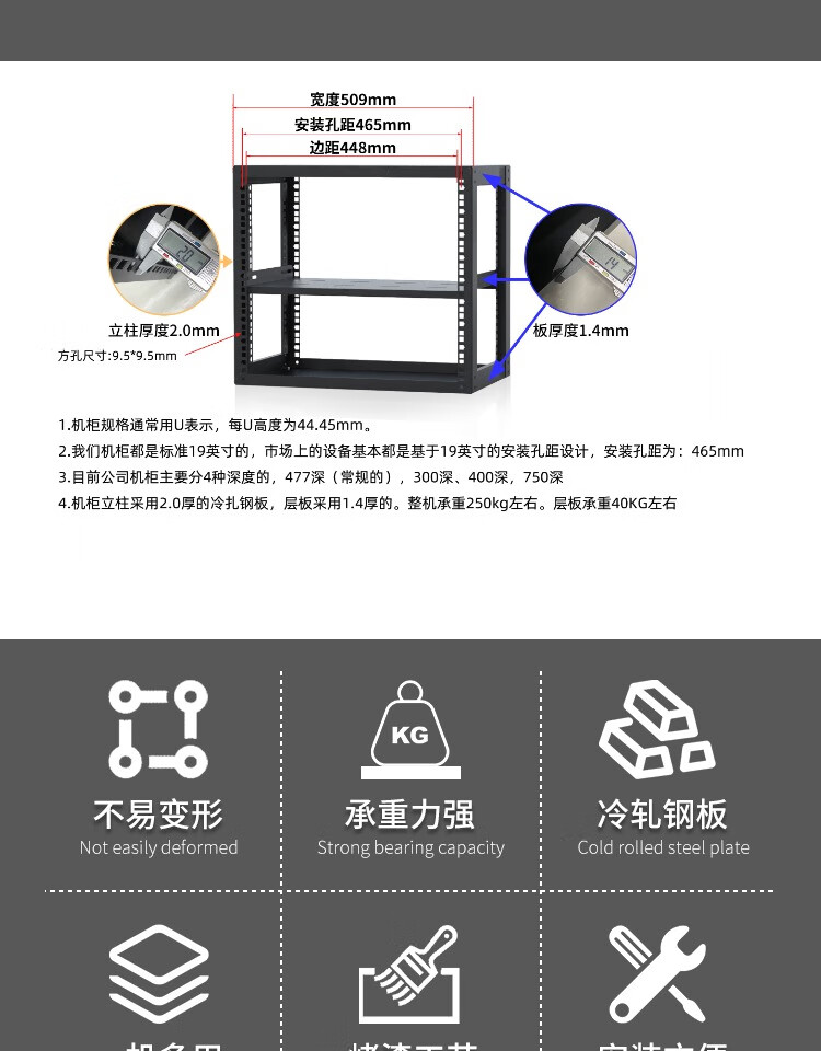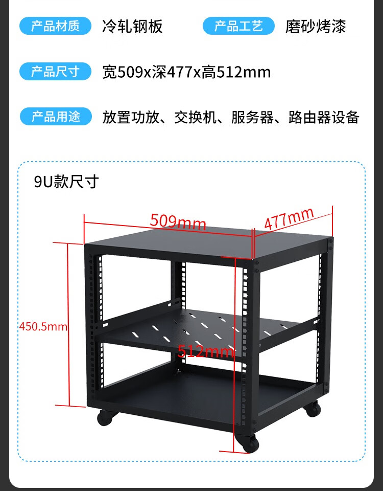 Home cabinet open network cabinet power amplifier mobile switch server cabinet simple open audio cabinet wall-mounted digital cabinet simple 19-inch rack (one piece of 477 deep cabinet shelf) 1x1x1cm