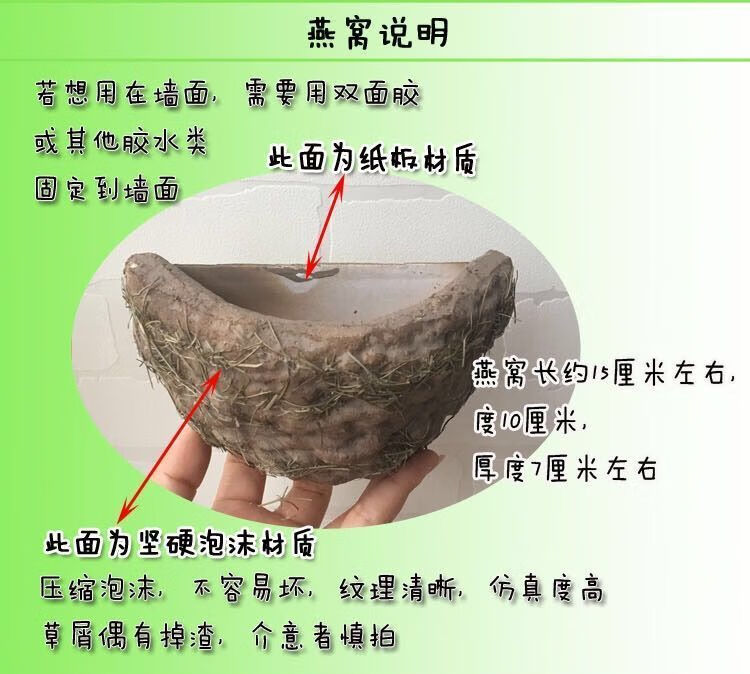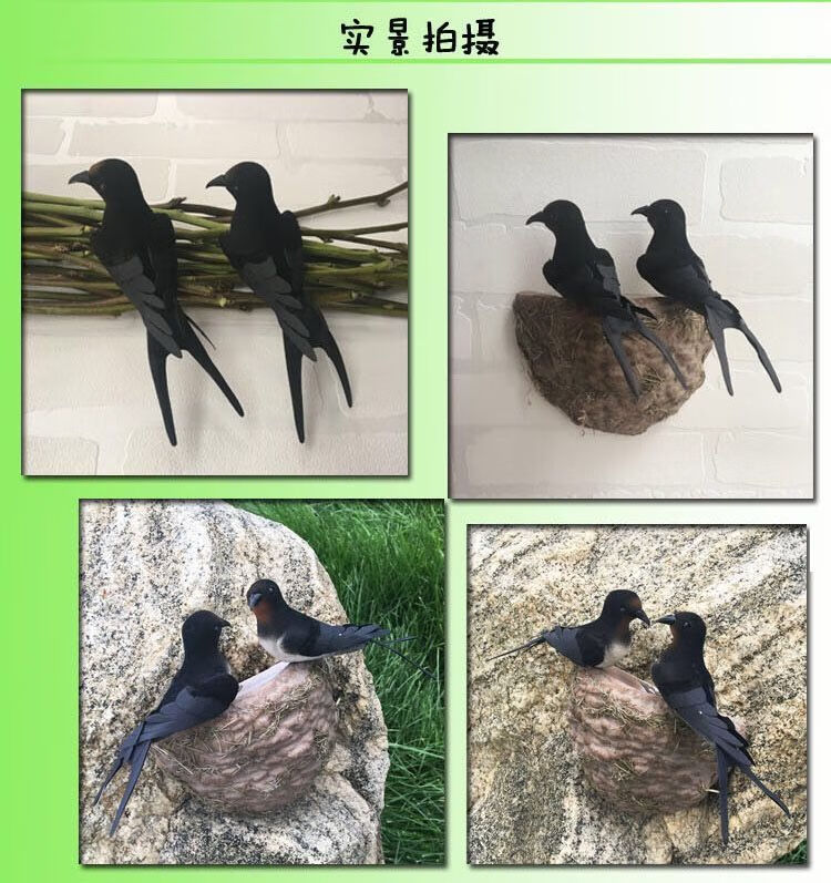 Runhuanian wall decoration simulated swallow bird nest nest spring decoration soft 2 swallows + baby swallows + double-sided tape + nest dy