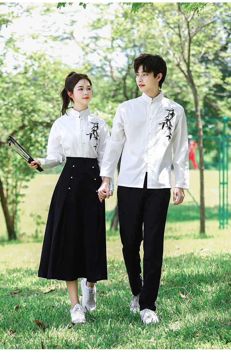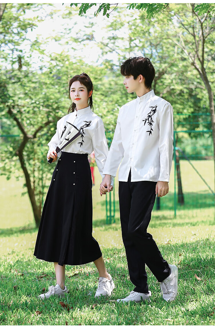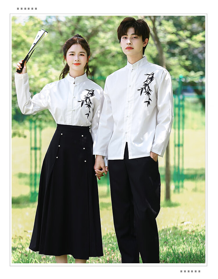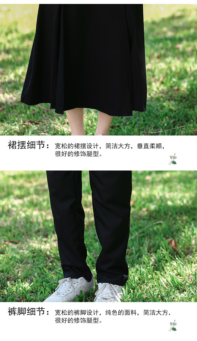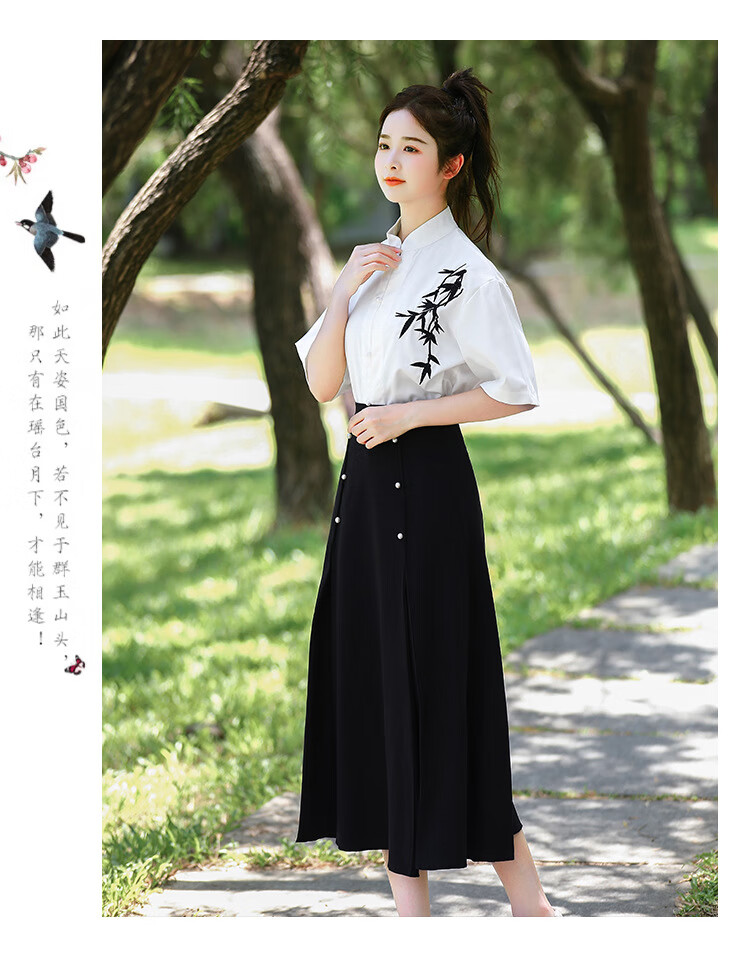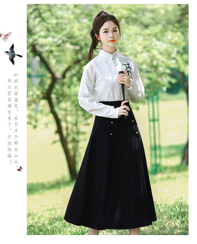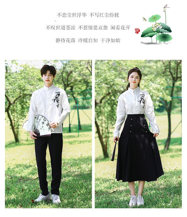 St. Luofeng antique uniforms, middle school student choir performance uniforms, junior high school student class uniforms, poetry recitation red song competition clothing, women's model, black bamboo long-sleeved top + pearl skirt L