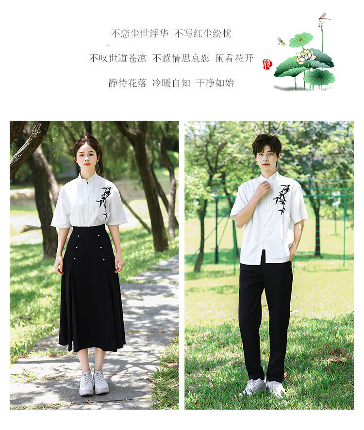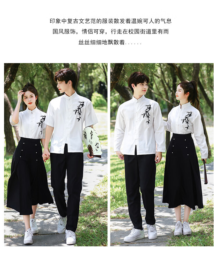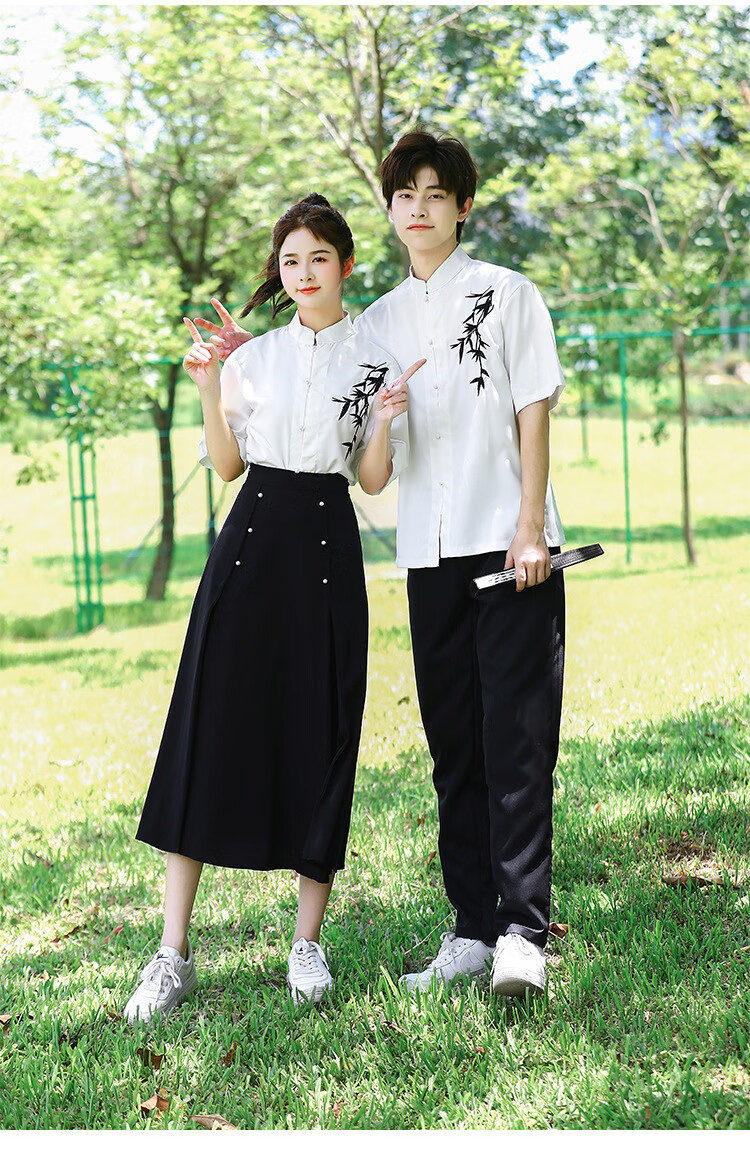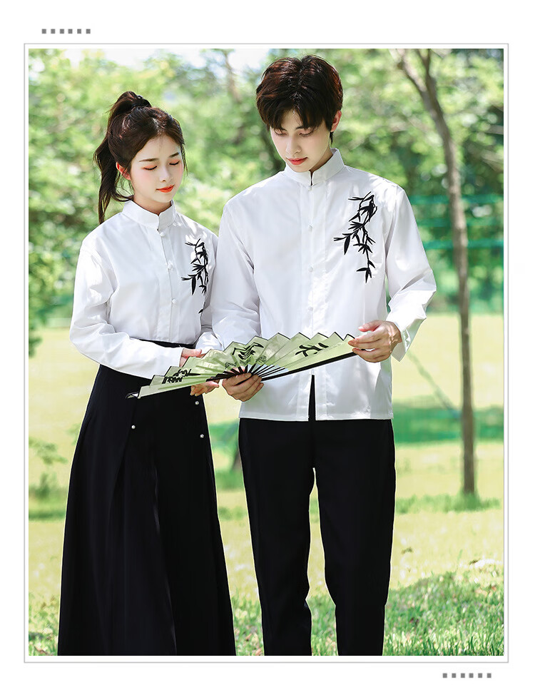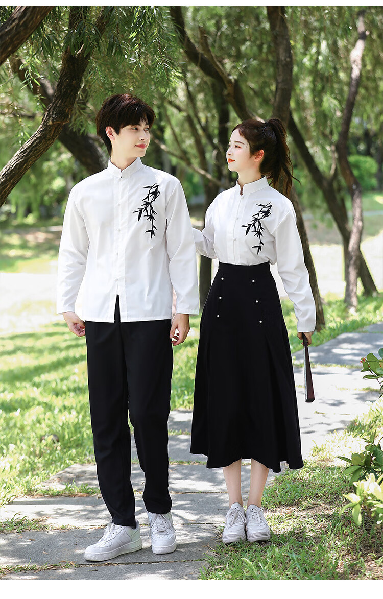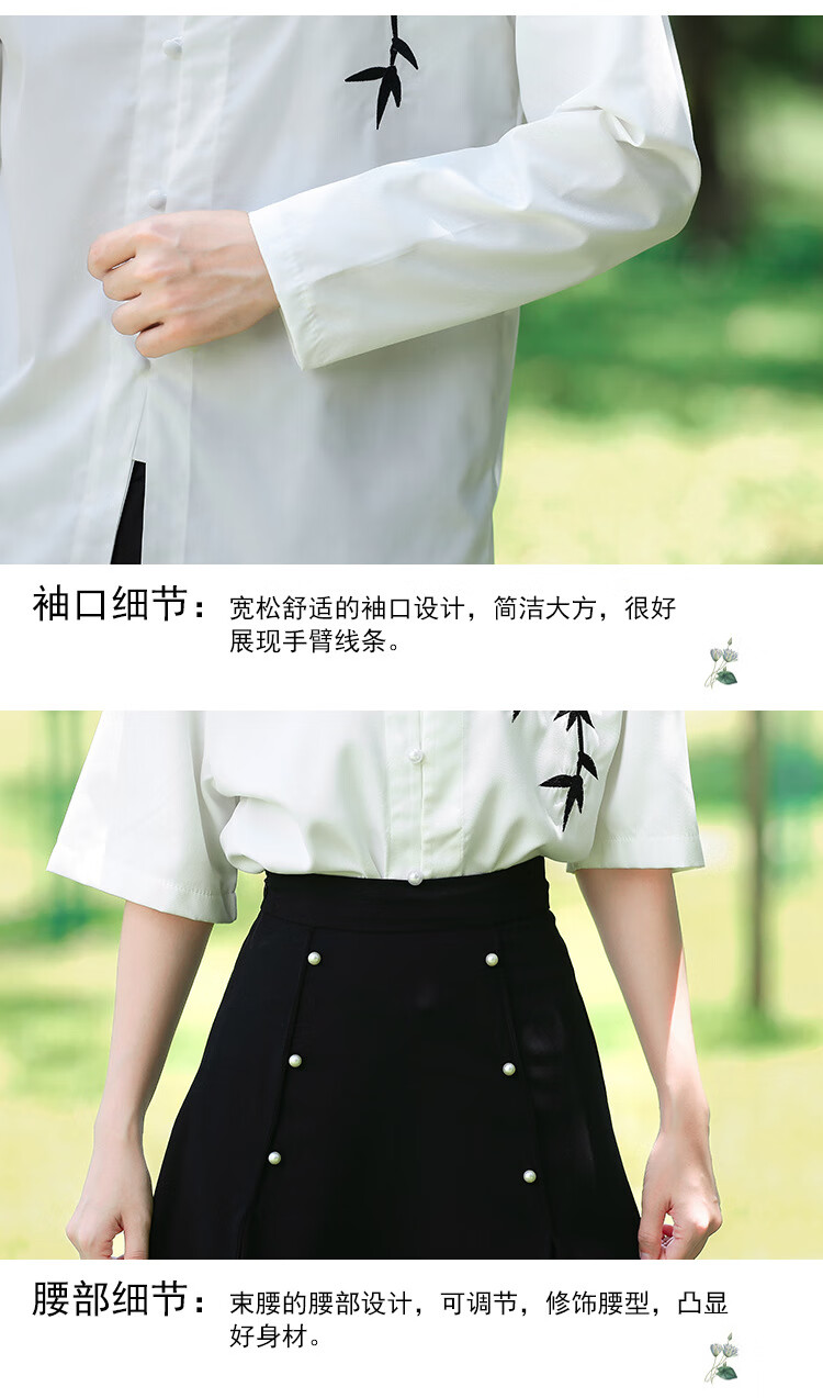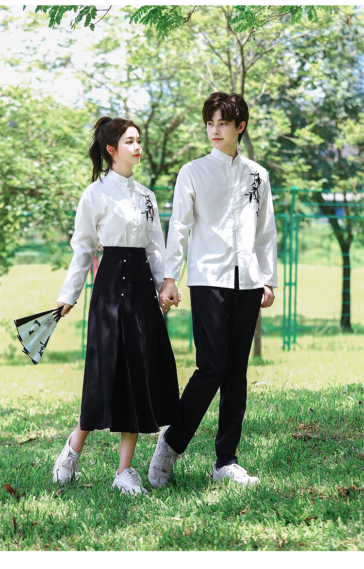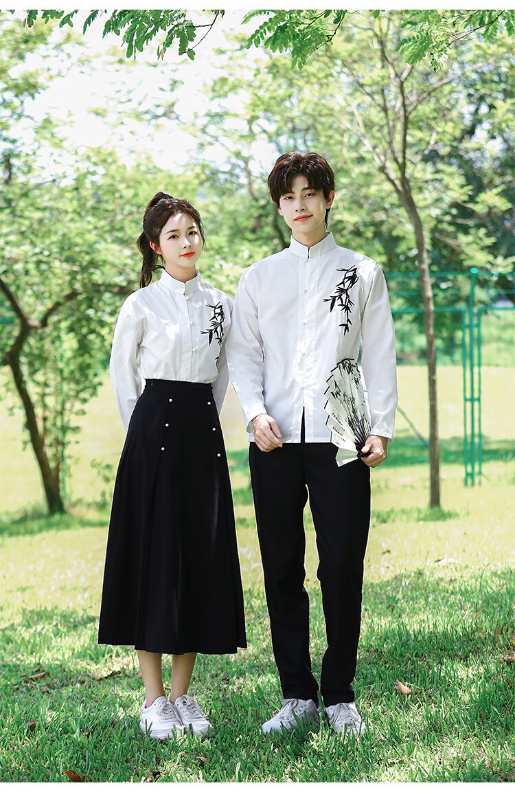 St. Luofeng antique uniforms, middle school student choir performance uniforms, junior high school student class uniforms, poetry recitation red song competition clothing, women's model, black bamboo long-sleeved top + pearl skirt L
