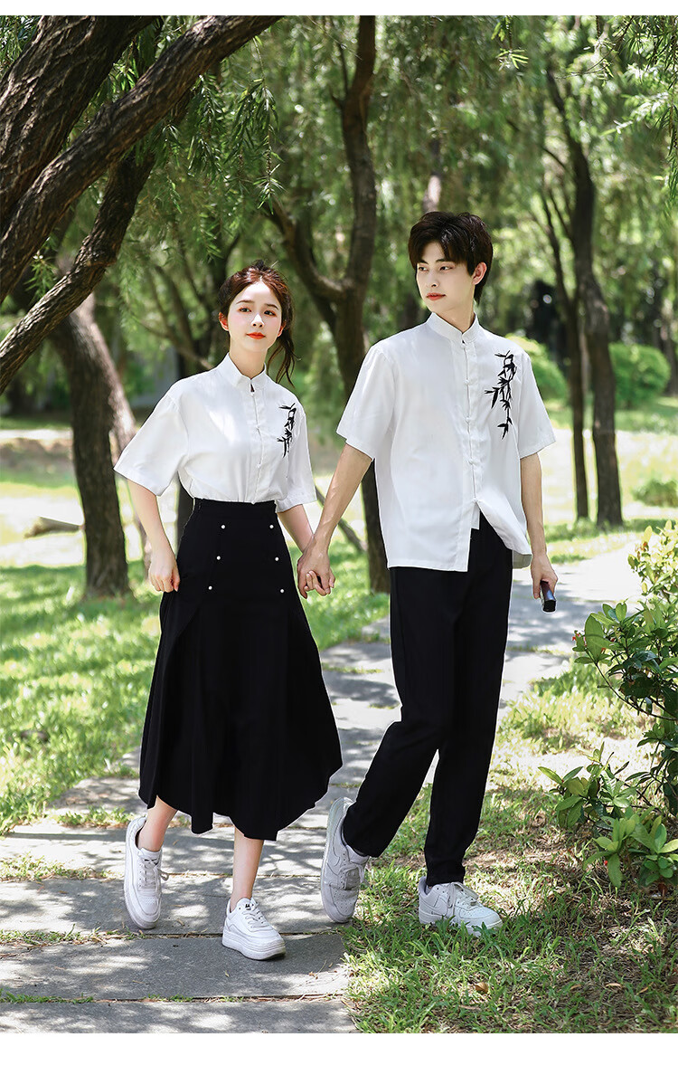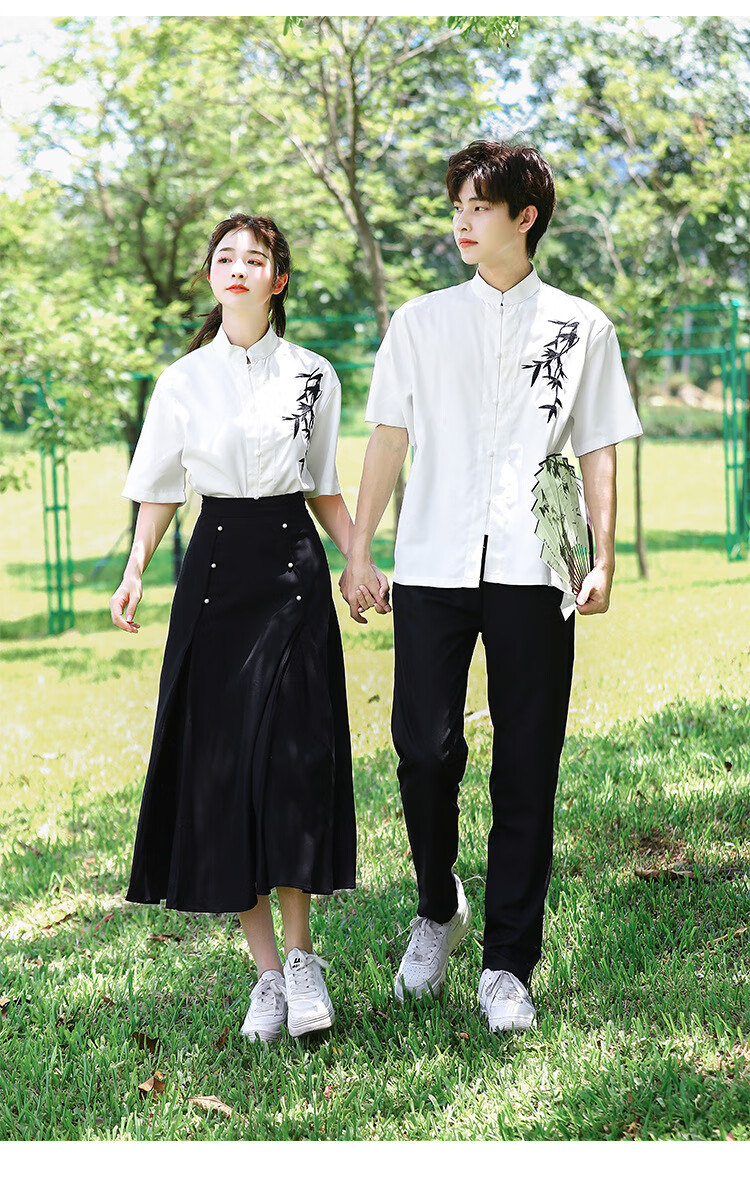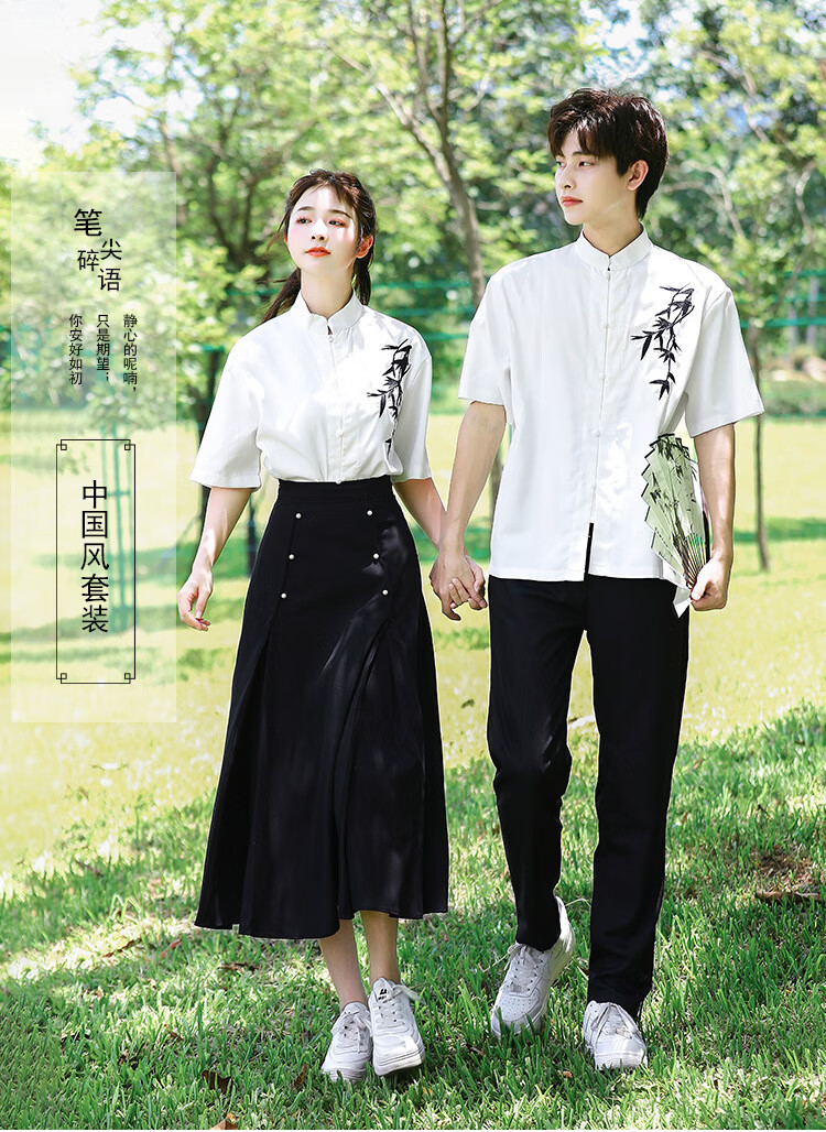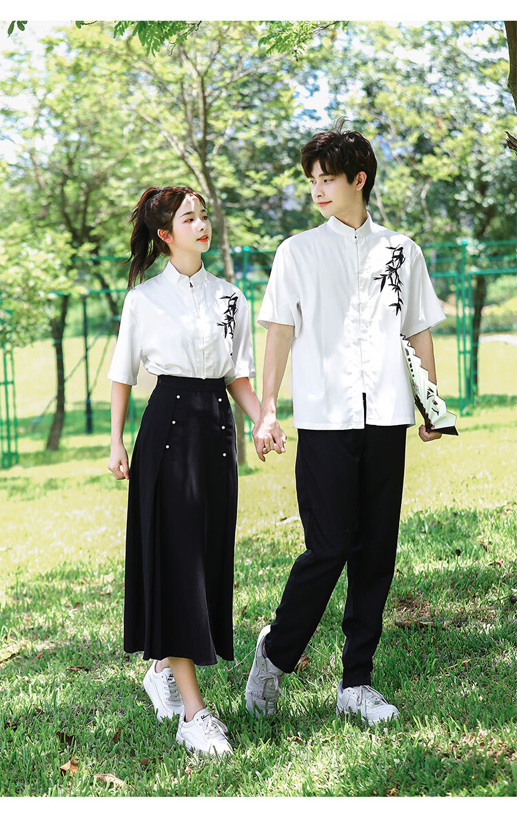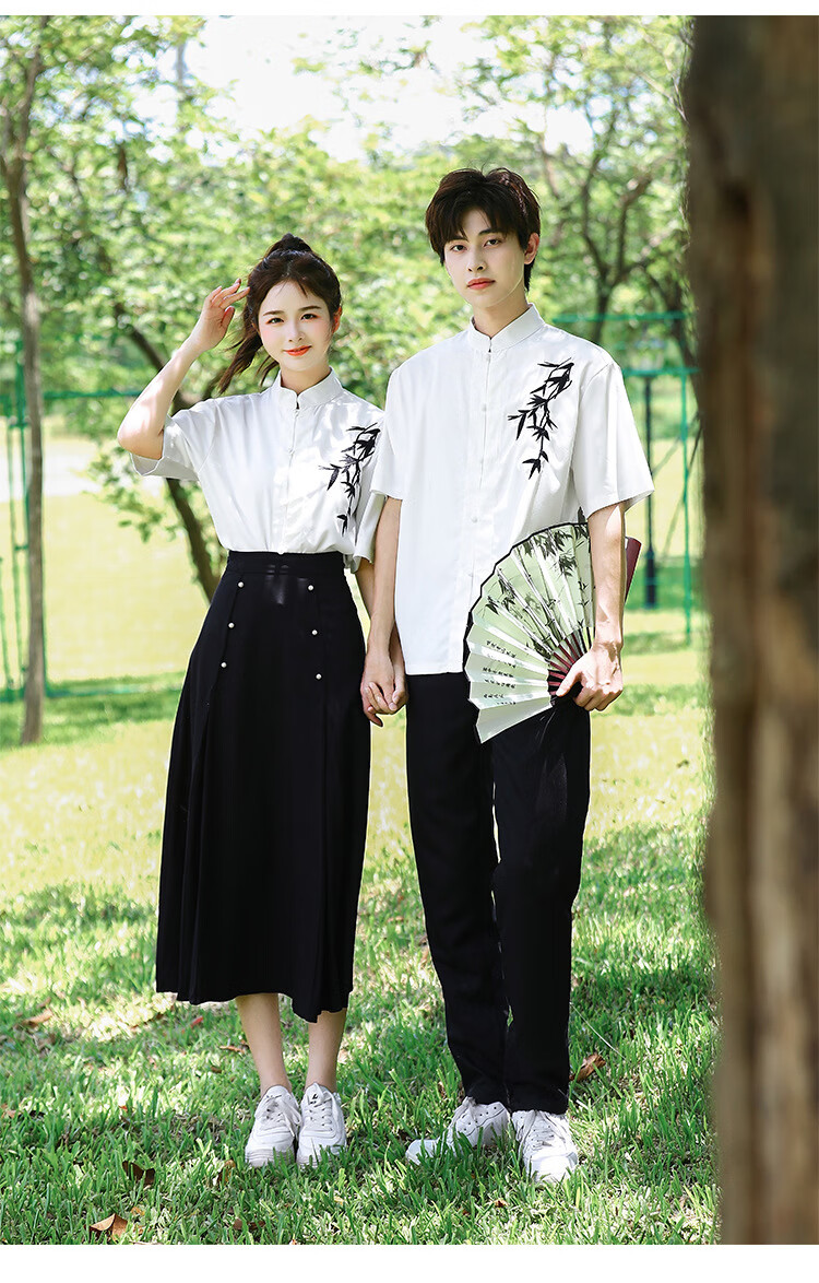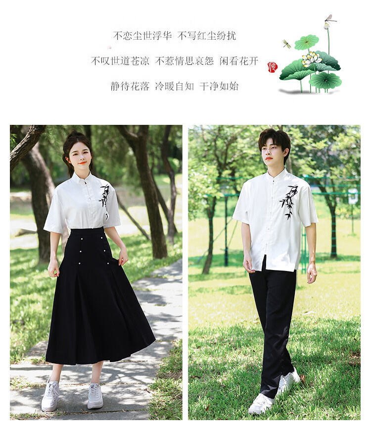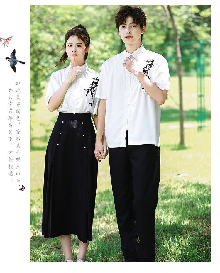 St. Luofeng antique uniforms, middle school student choir performance uniforms, junior high school student class uniforms, poetry recitation red song competition clothing, women's model, black bamboo long-sleeved top + pearl skirt L