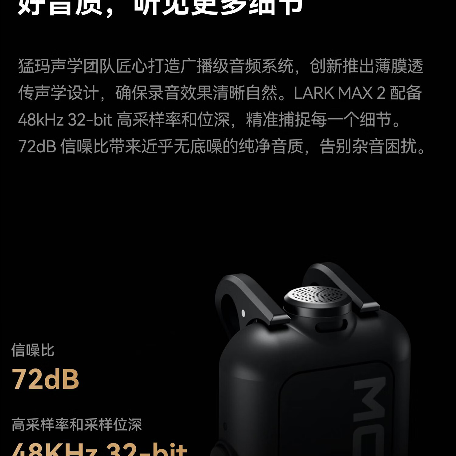 Mammoth microphone one to two LARK MAX 2 wireless monitoring microphone Mammoth lark max 2 AI noise reduction lavalier live broadcast microphone Mammoth radio microphone all-round monitoring set (with monitoring headphones)