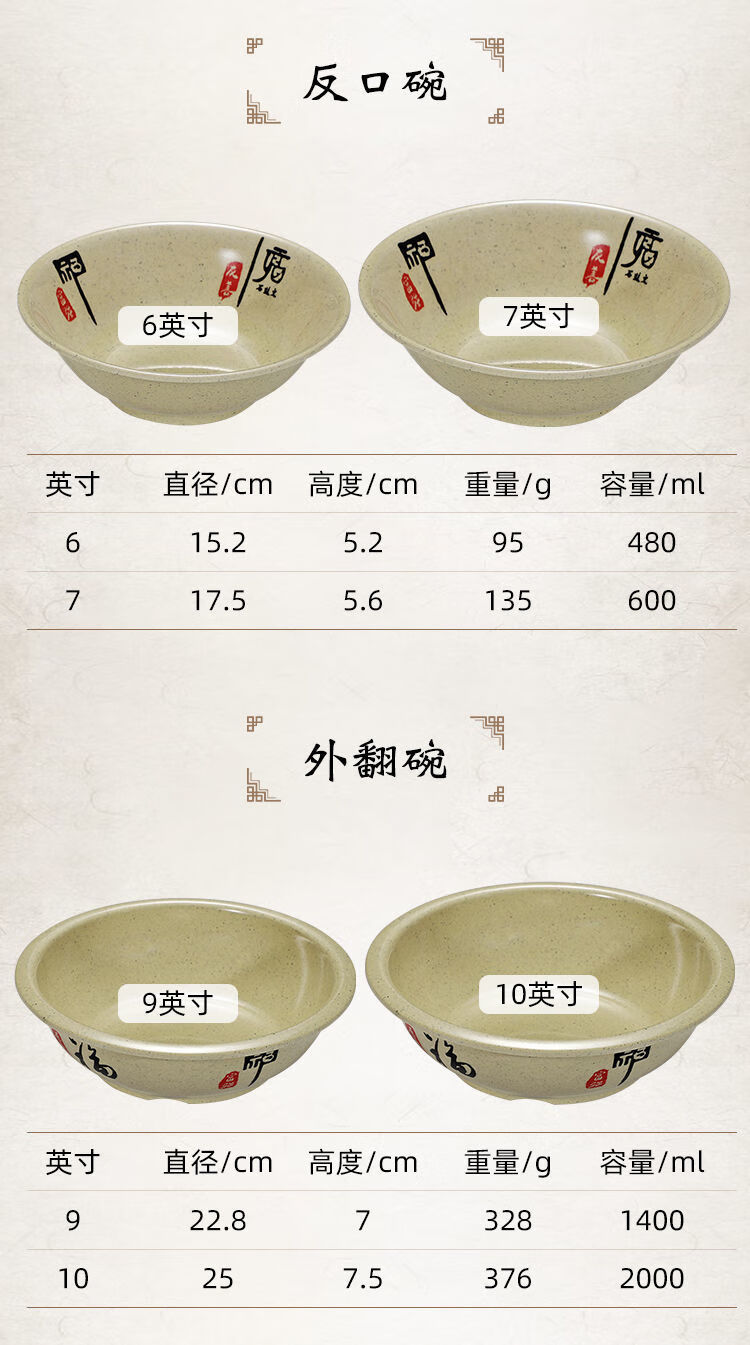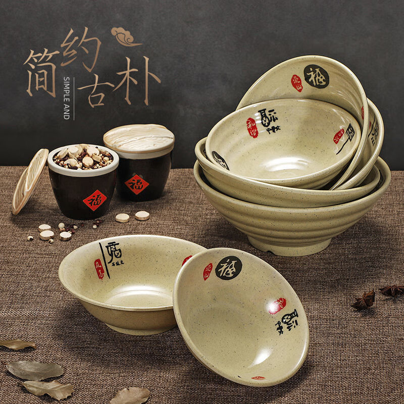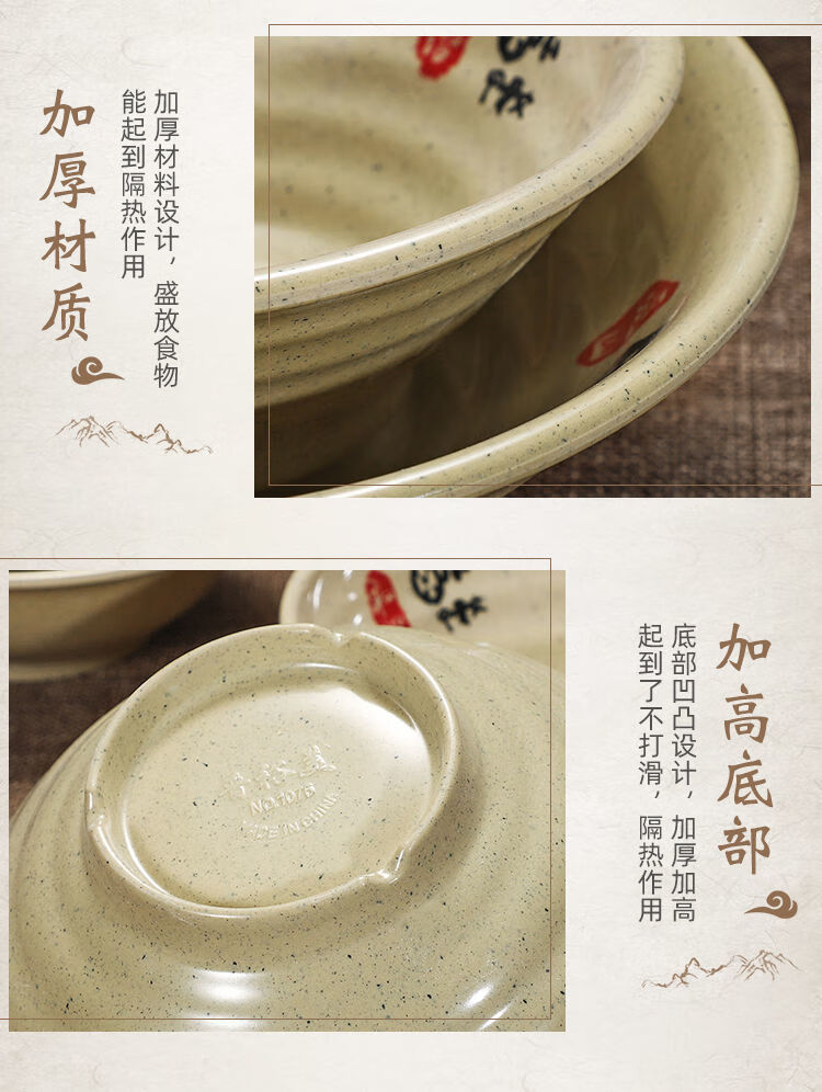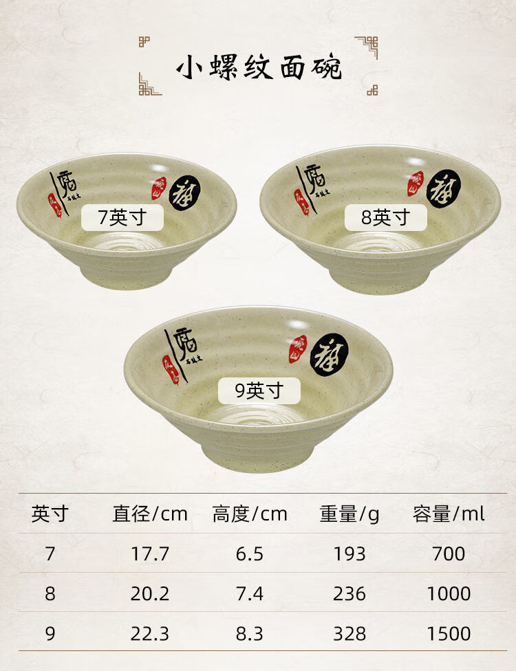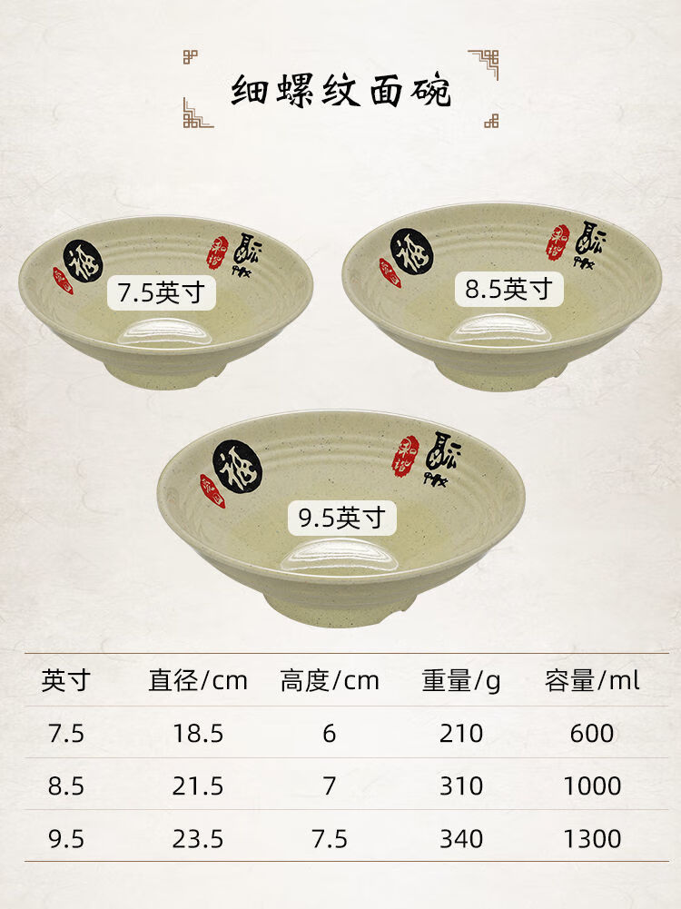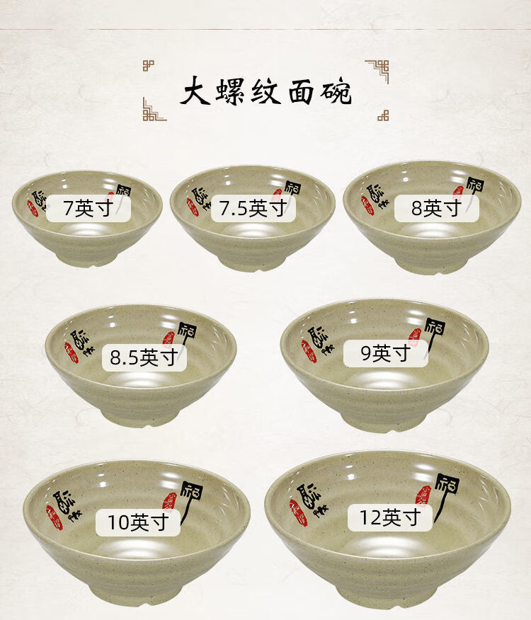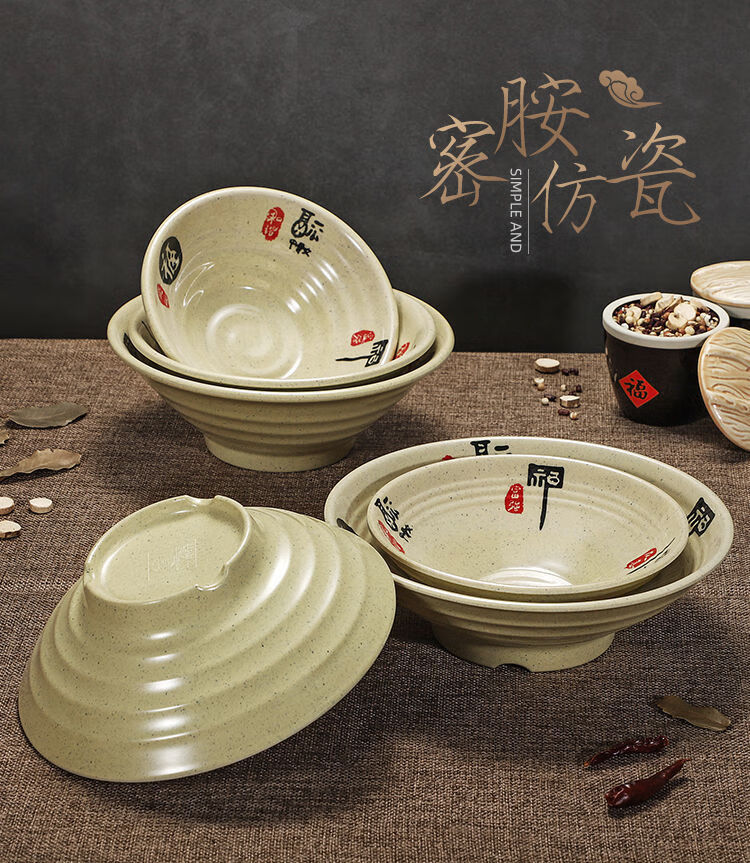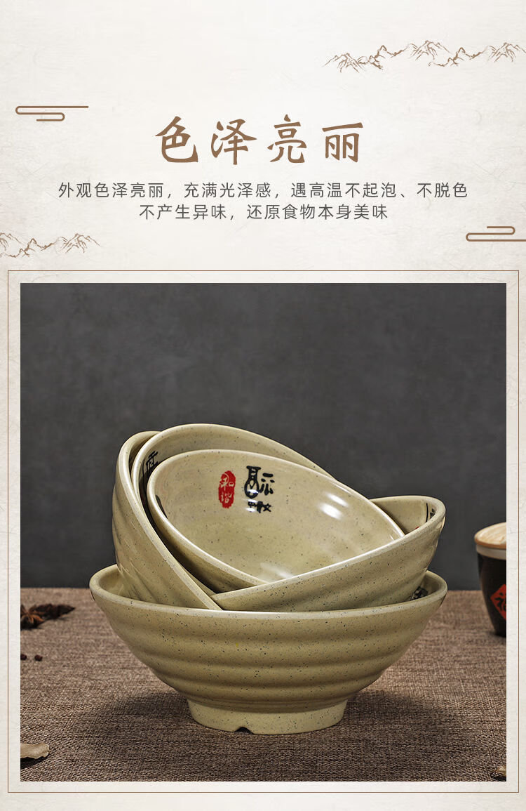 Enshousu instant noodle bowl, soup bowl, large bowl, commercial beef noodle spicy hot bowl, imitation porcelain tableware, plastic bowl, melamine flavored ramen bowl, 2023 10-inch large threaded noodle bowl (pack of 10) 20