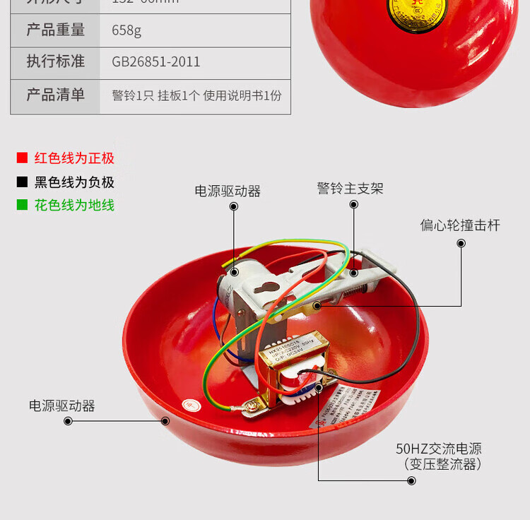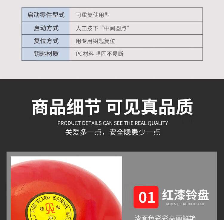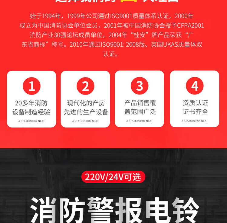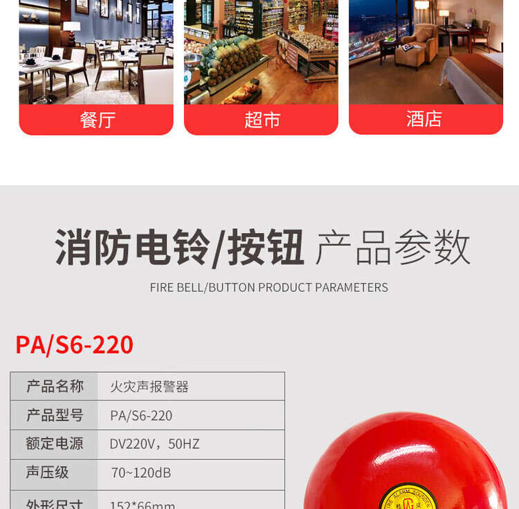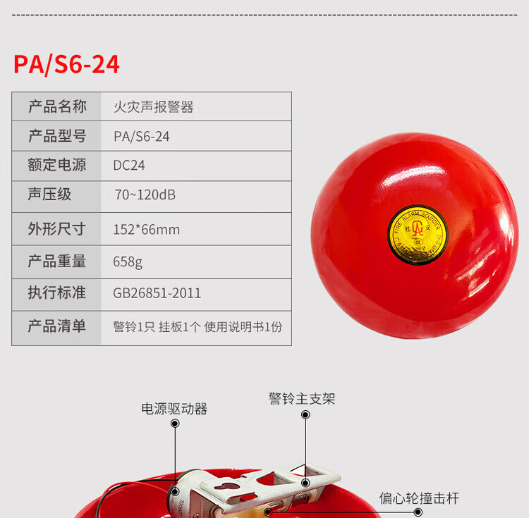 Gui'an Pingan fire alarm bell 220V fire alarm 24V one-touch manual button PA/S6-24V alarm bell