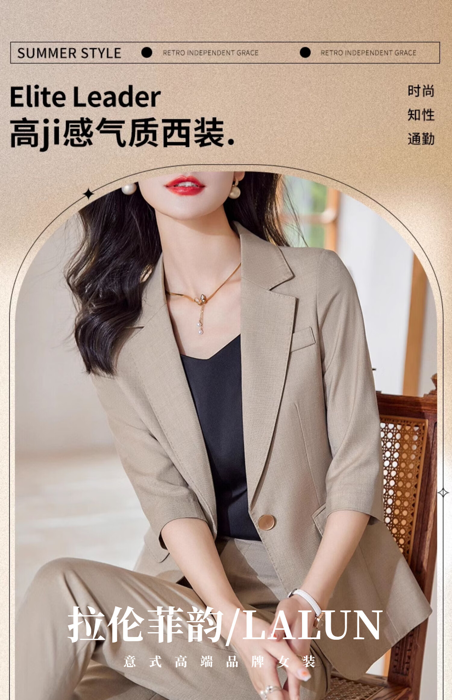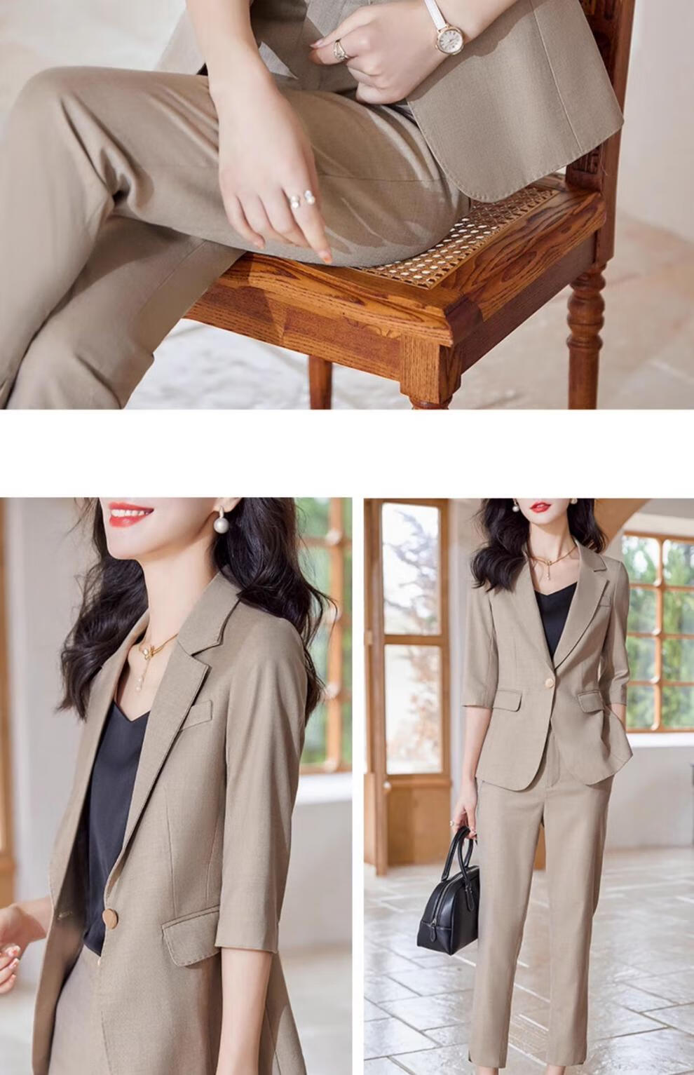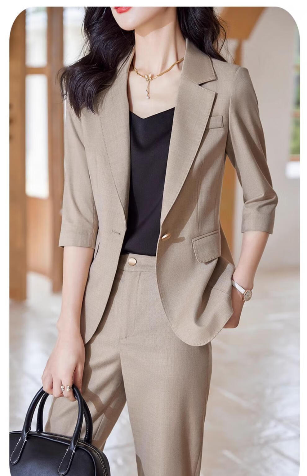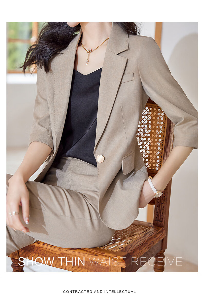 Laren Feiyun high-end brand small suit women's suit 2026 new summer thin temperament slim professional casual suit jacket light khaki (summer breathable and thin) L