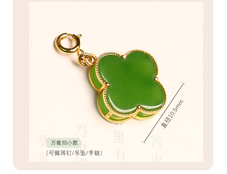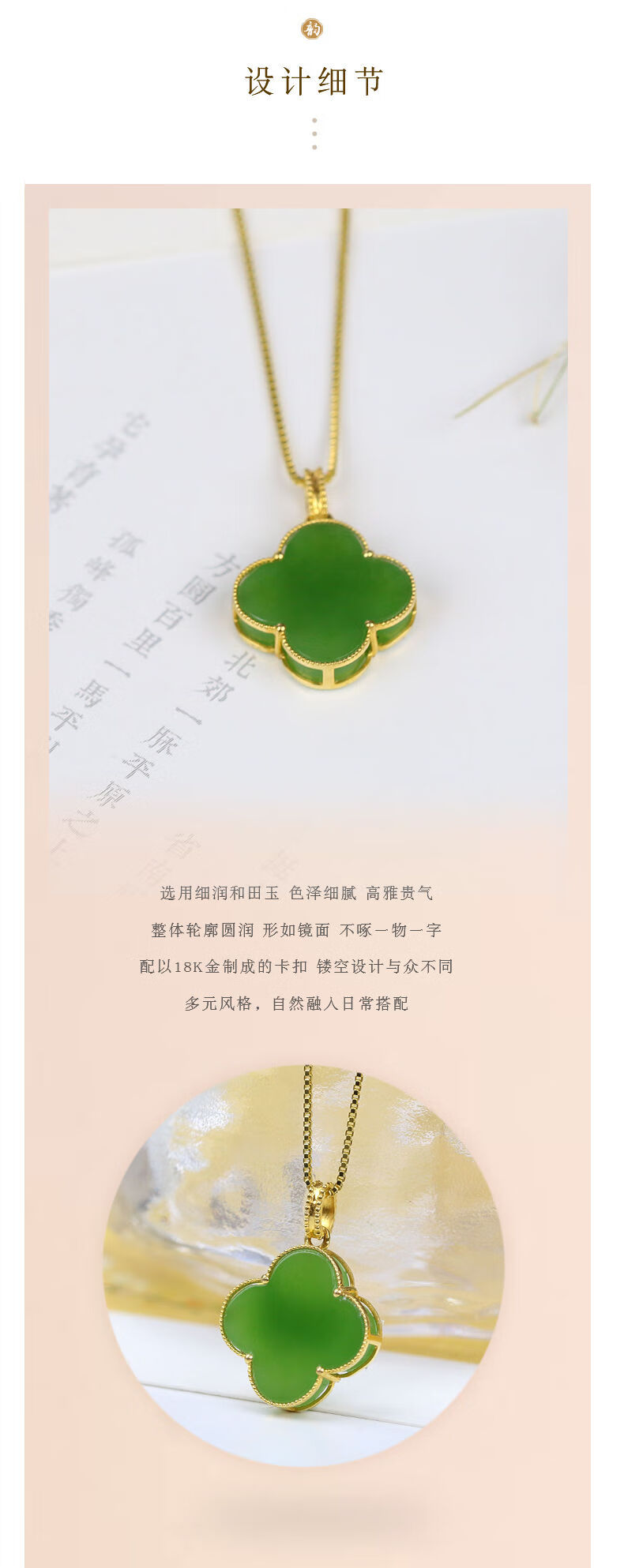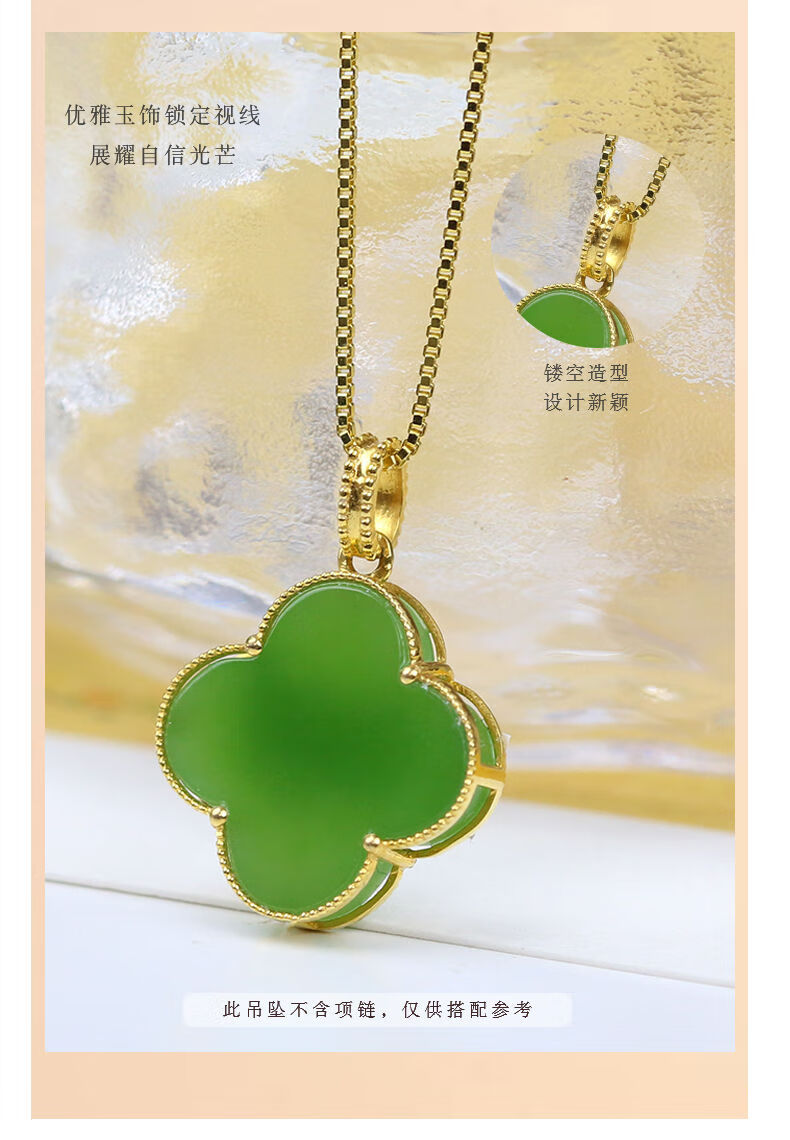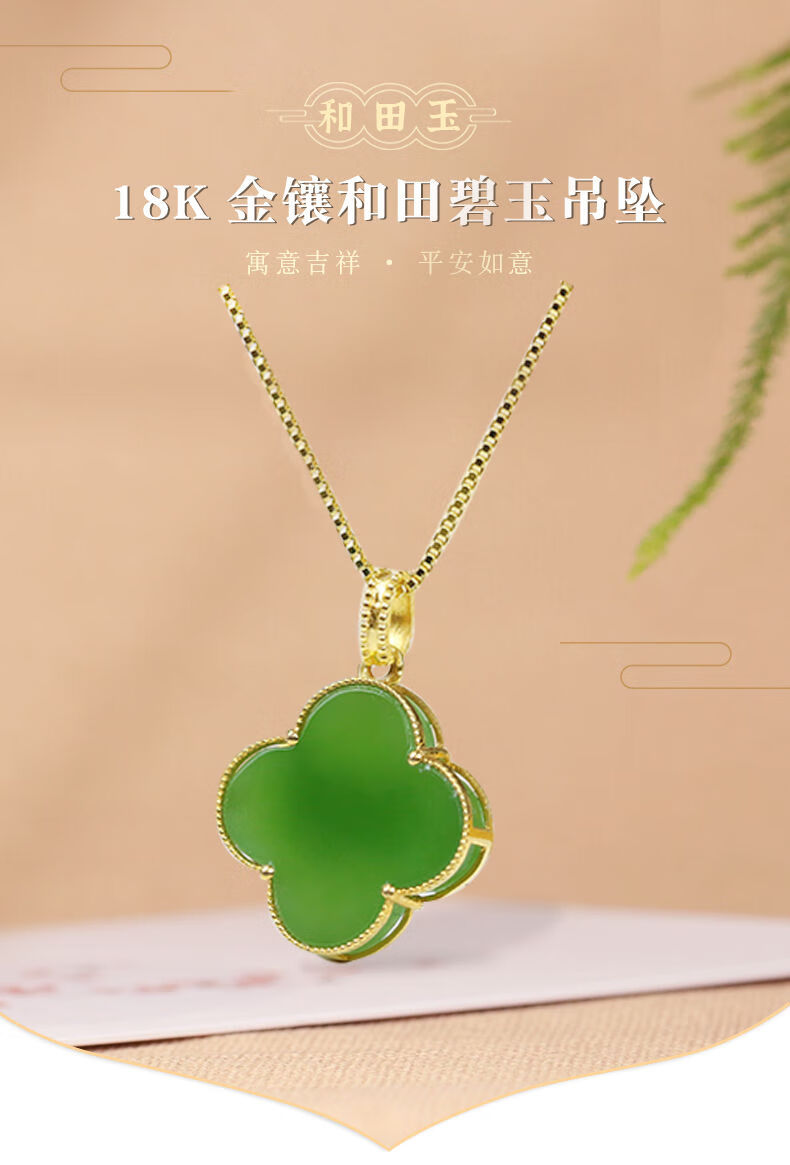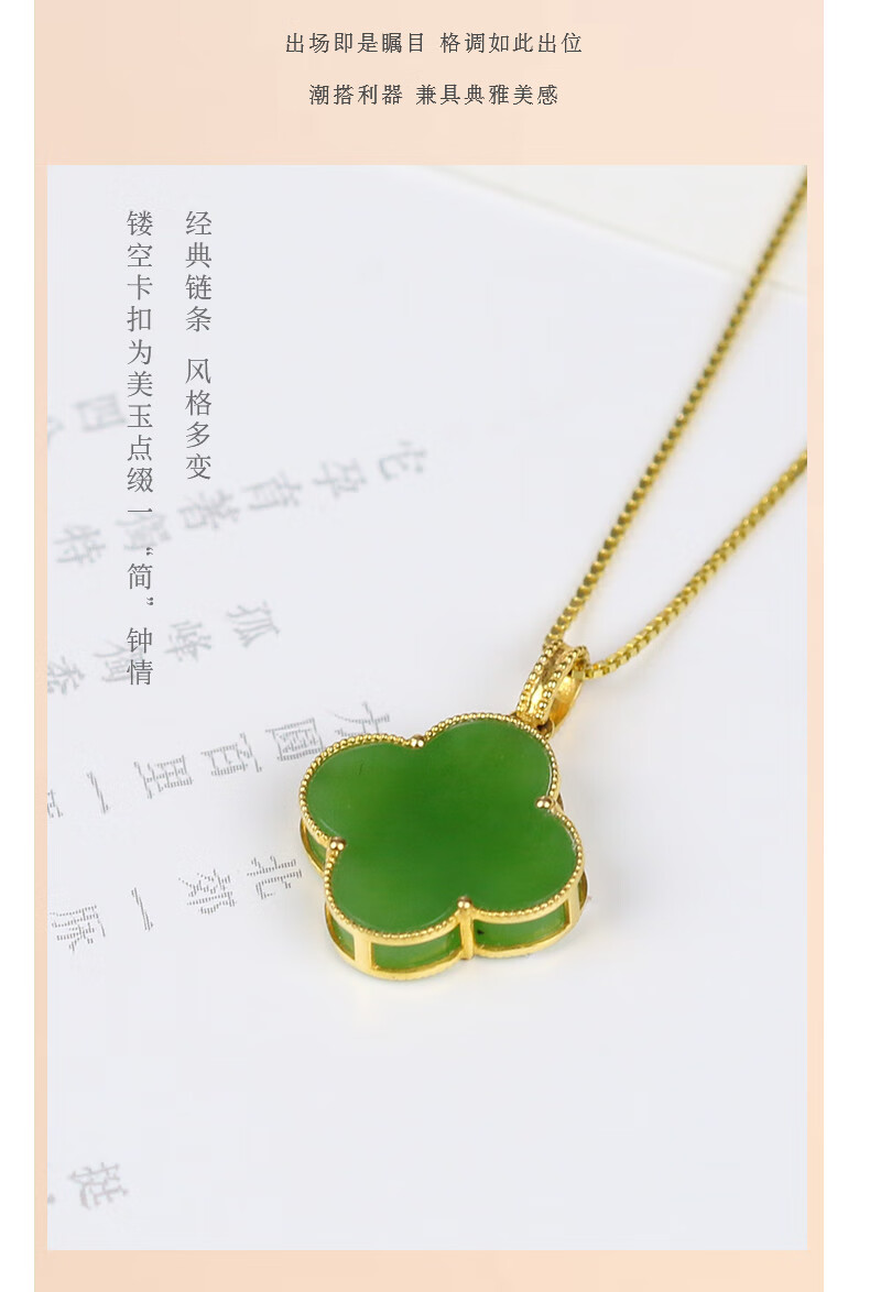 Iosn Natural Hotan Jasper 18k gold four-leaf clover necklace high-end jade pendant gift gift birthday gift 18K gold inlay small 12.5mm free silver chain