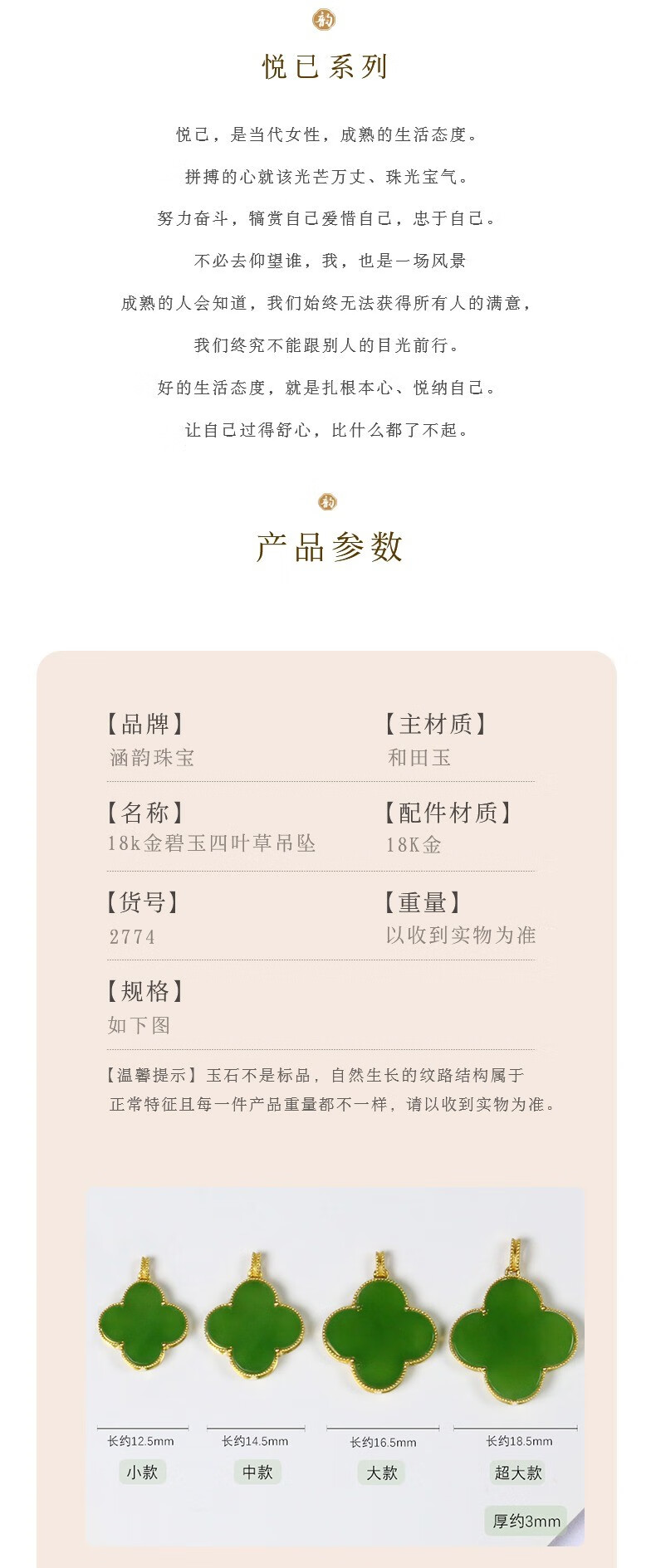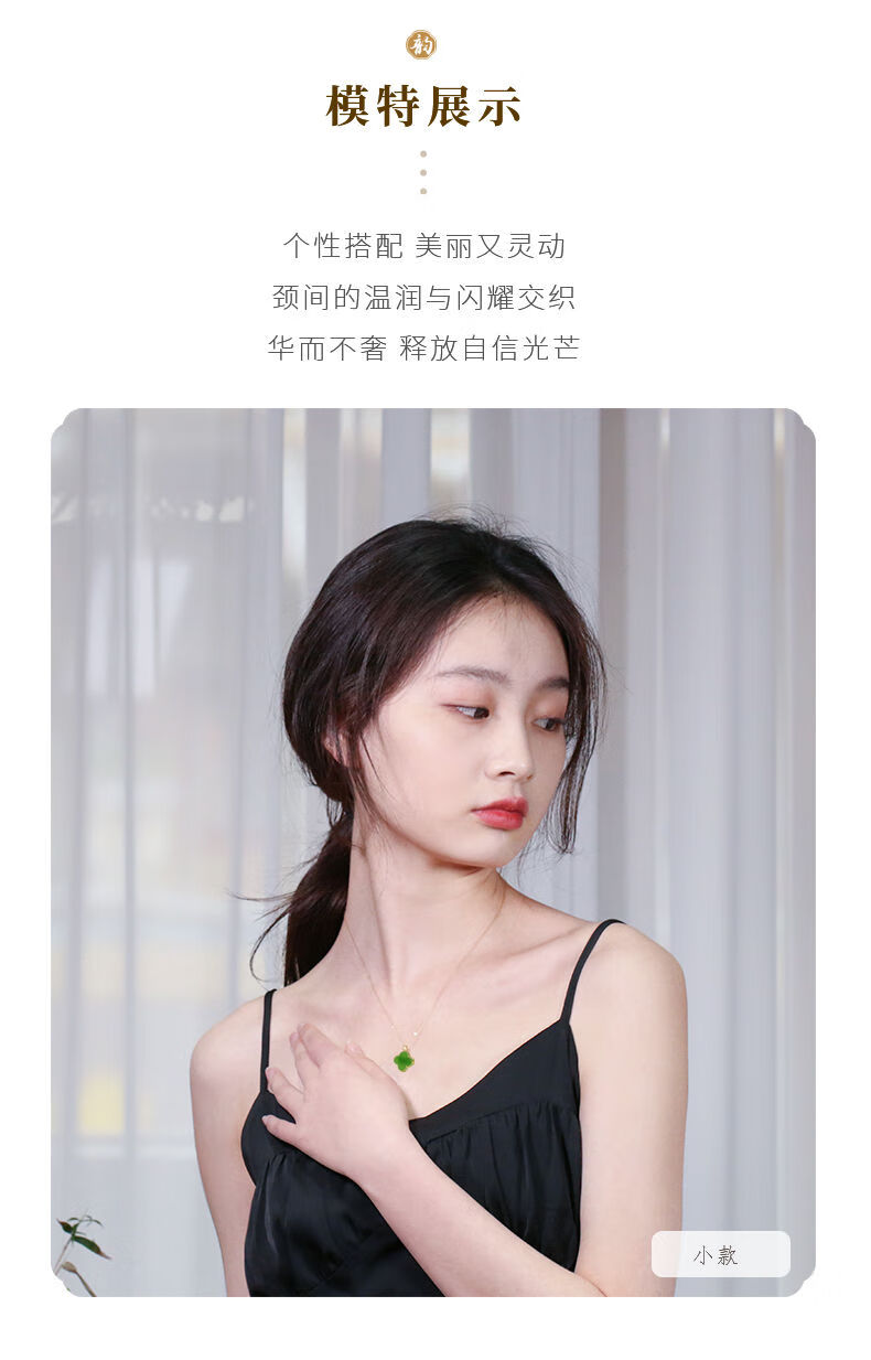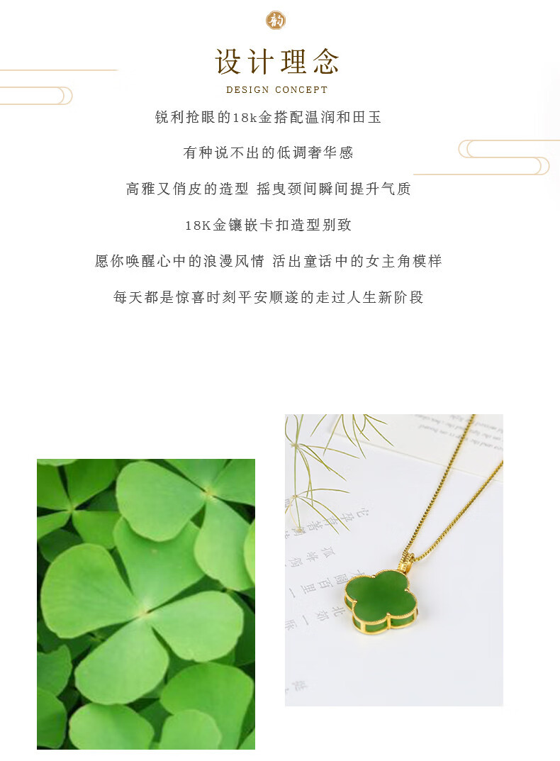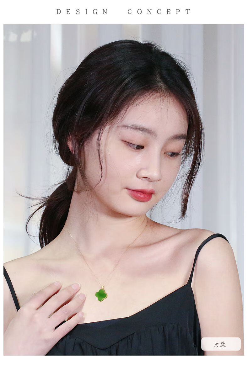 Iosn Natural Hotan Jasper 18k gold four-leaf clover necklace high-end jade pendant gift gift birthday gift 18K gold inlay small 12.5mm free silver chain