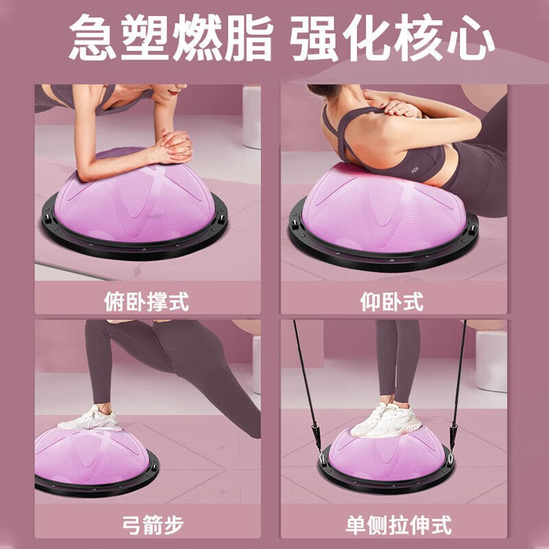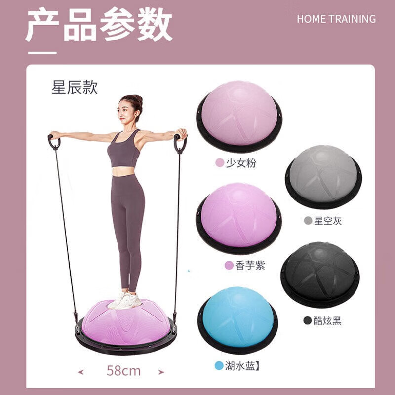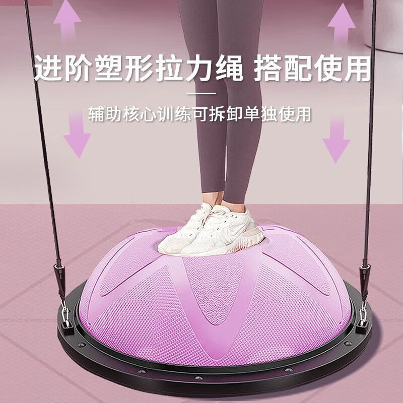 He Jian Gong Balanced Wave Speed Ball Thickened Yoga Ball Fitness Semi-circular Foot Step Fitness Rehabilitation Pilates Ball Hemispheric Yoga Equipment Xiangyun Powder Diameter 46 + Pull Rope + Inflatable Device