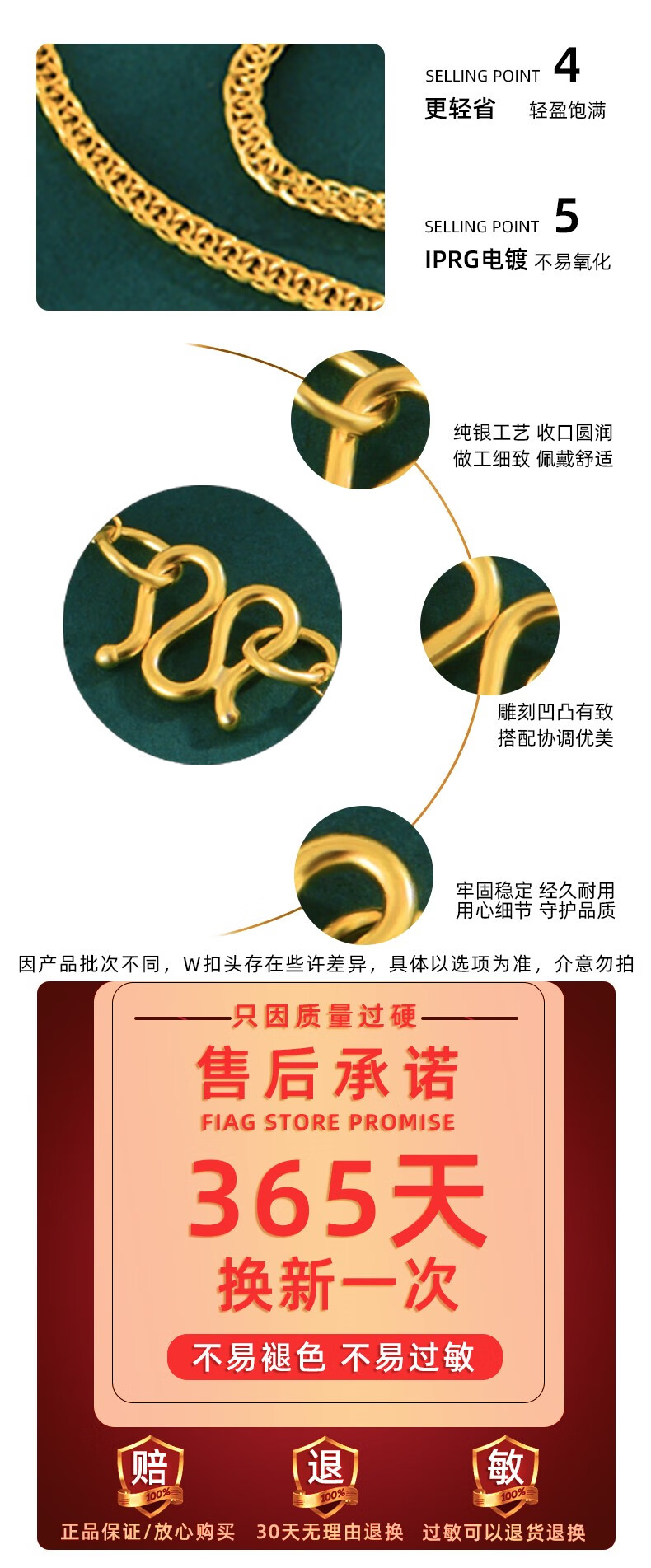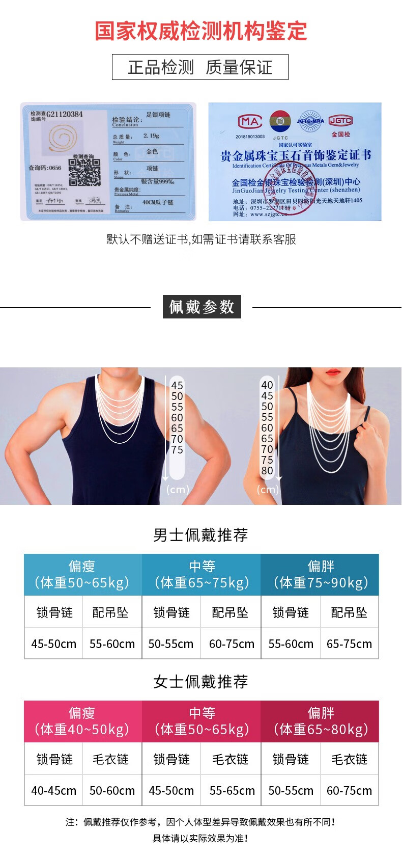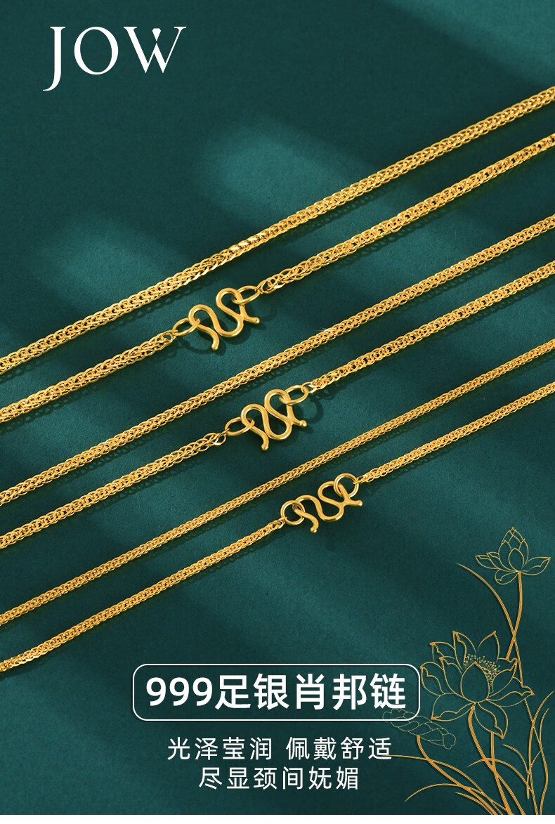 KZD Old Phoenix 999 Chopin chain sterling silver gold gold-plated necklace women's chain 18k gold clavicle chain color silver chain element gold color 1.5mm thick 50cm elder Fengxiang same style