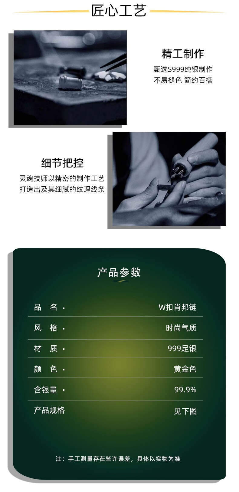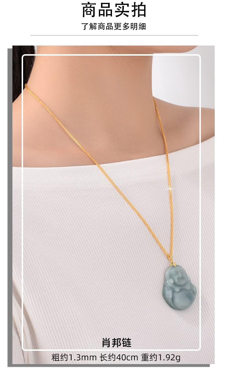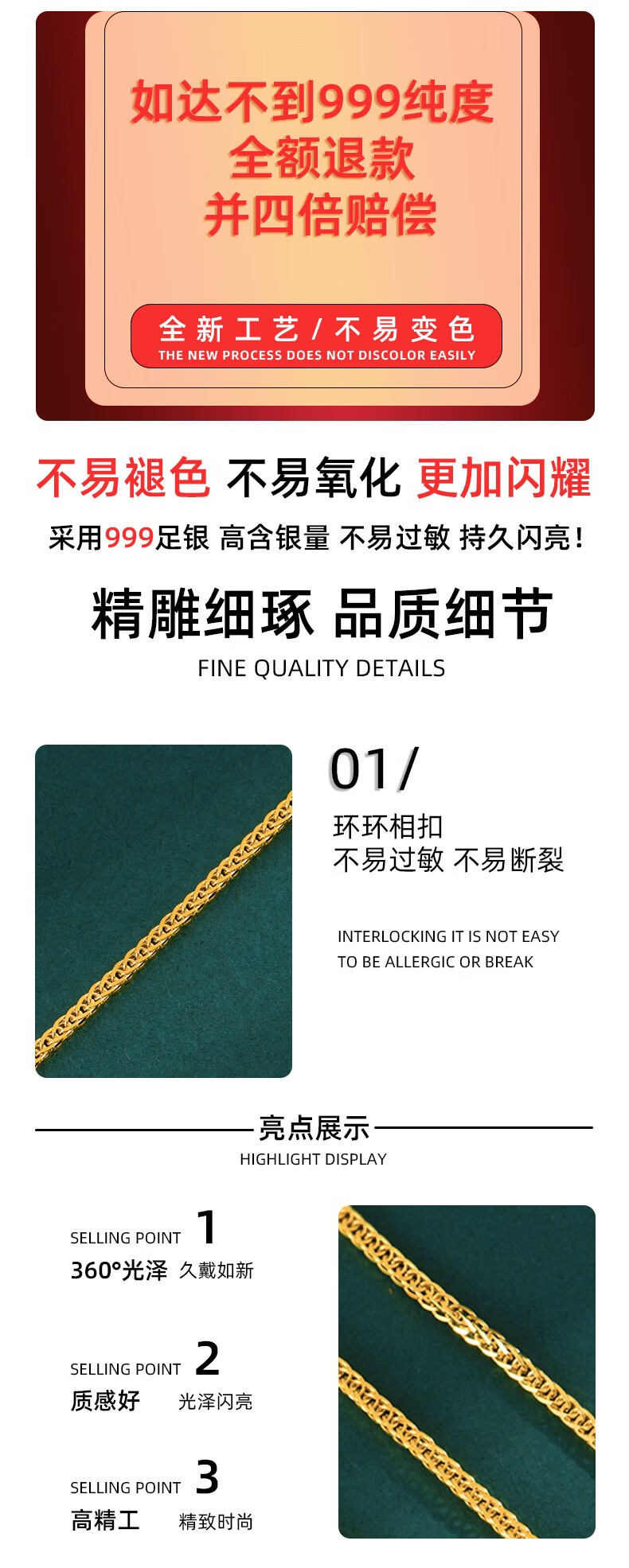 KZD Old Phoenix 999 Chopin chain sterling silver gold gold-plated necklace women's chain 18k gold clavicle chain color silver chain element gold color 1.5mm thick 50cm elder Fengxiang same style
