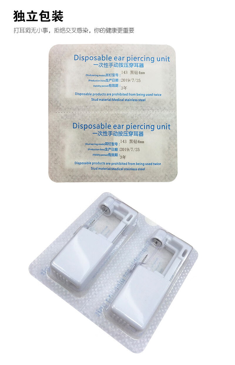 Muyu disposable painless ear piercing second generation ear piercing artifact student ear piercing tool internet celebrity ear piercing earrings black oil men's model comes with disinfectant cotton 2 packs