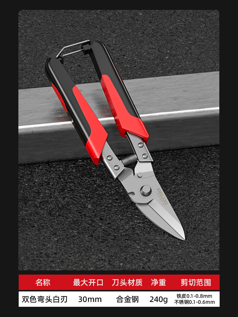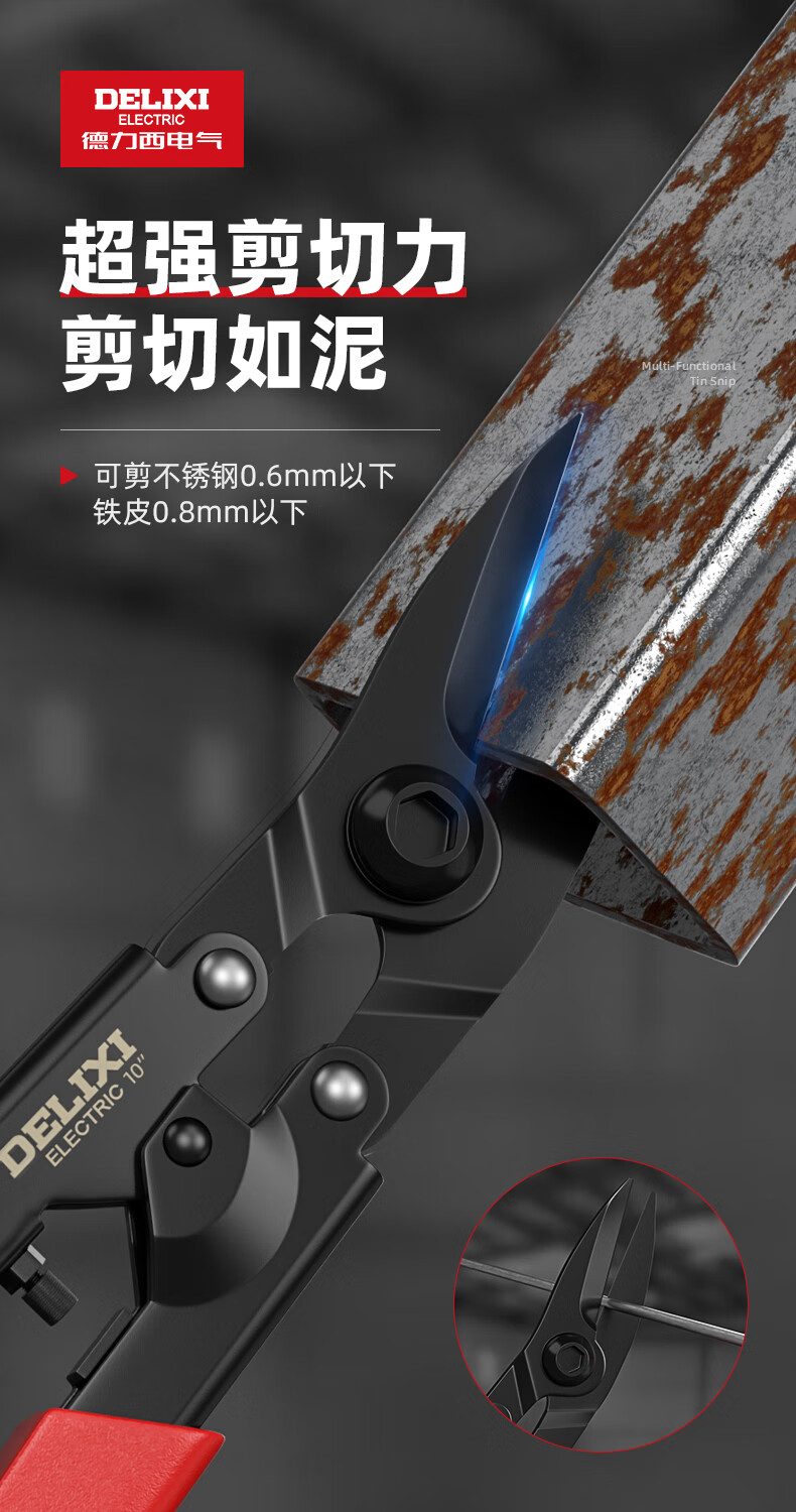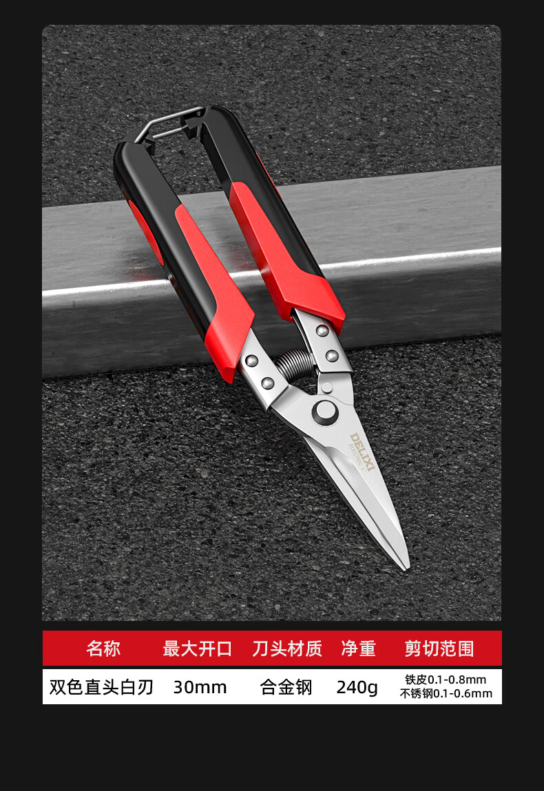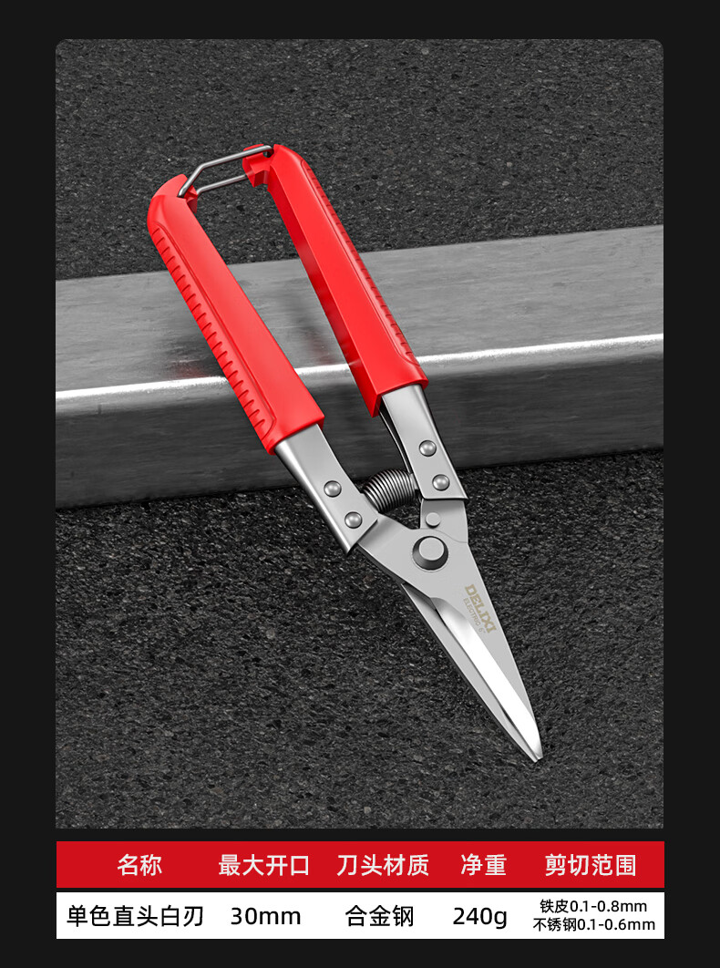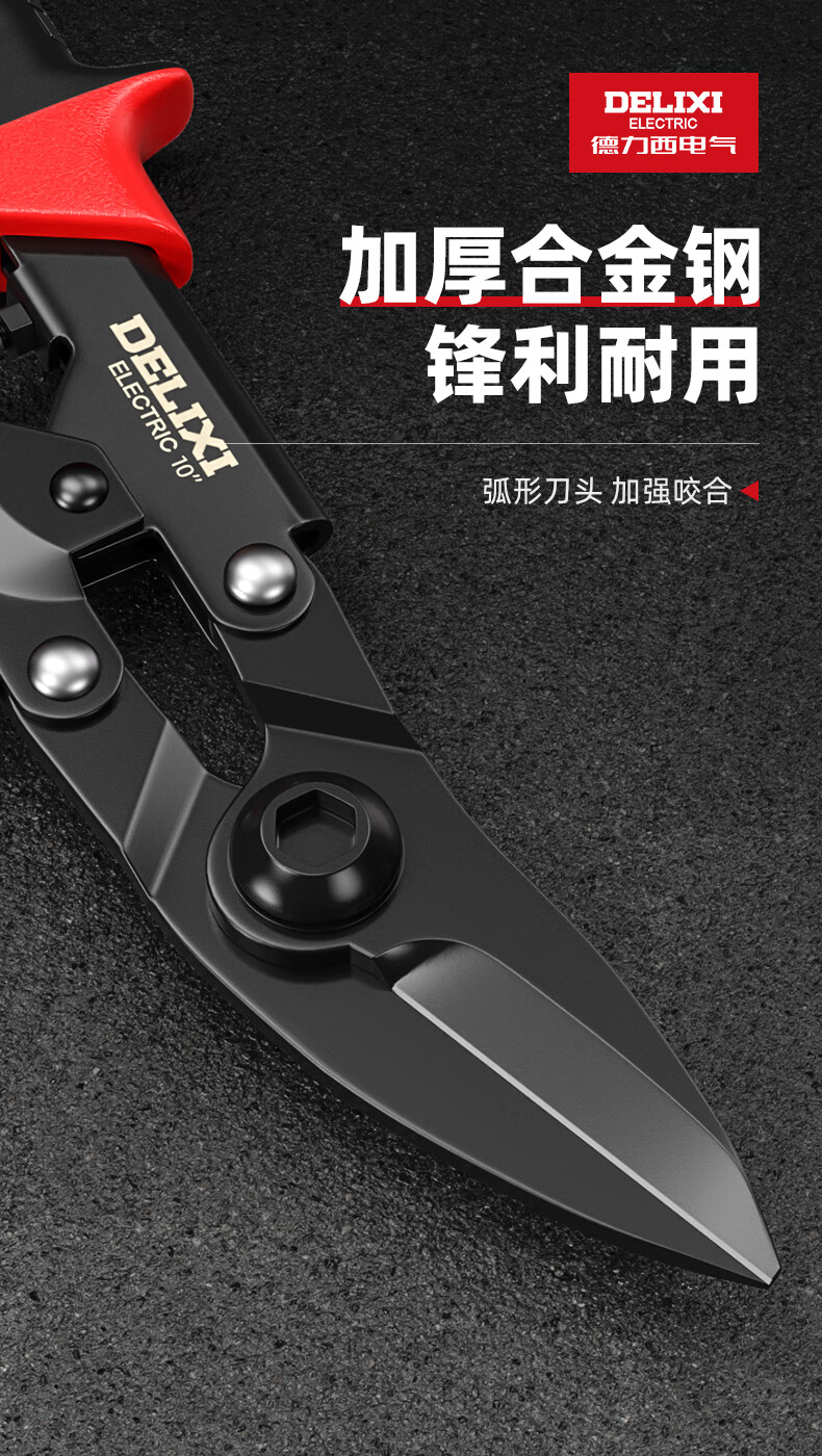 Delixi Electric industrial-grade iron shears, stainless steel powerful aviation scissors, multi-functional strong metal keel aluminum gusset plate special 8-inch single color straight head white blade