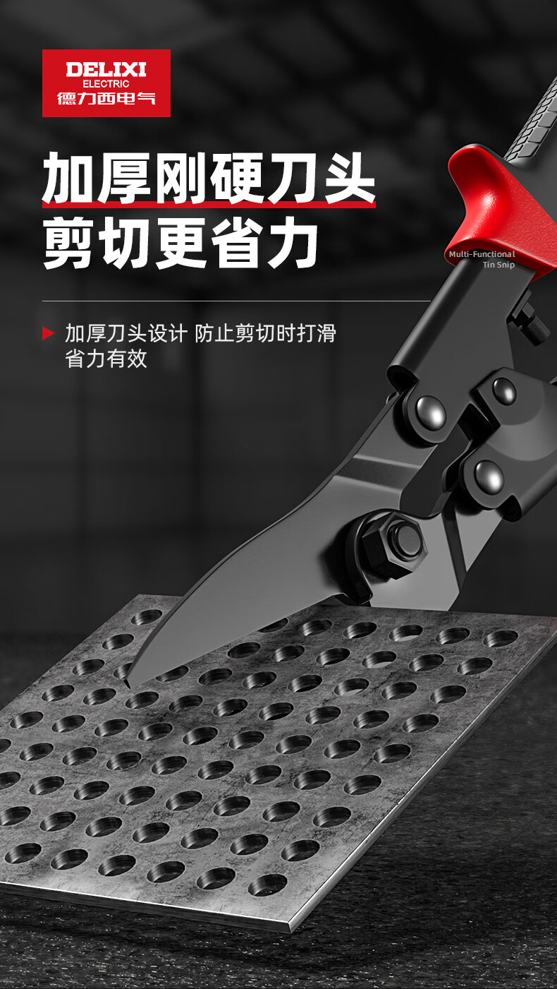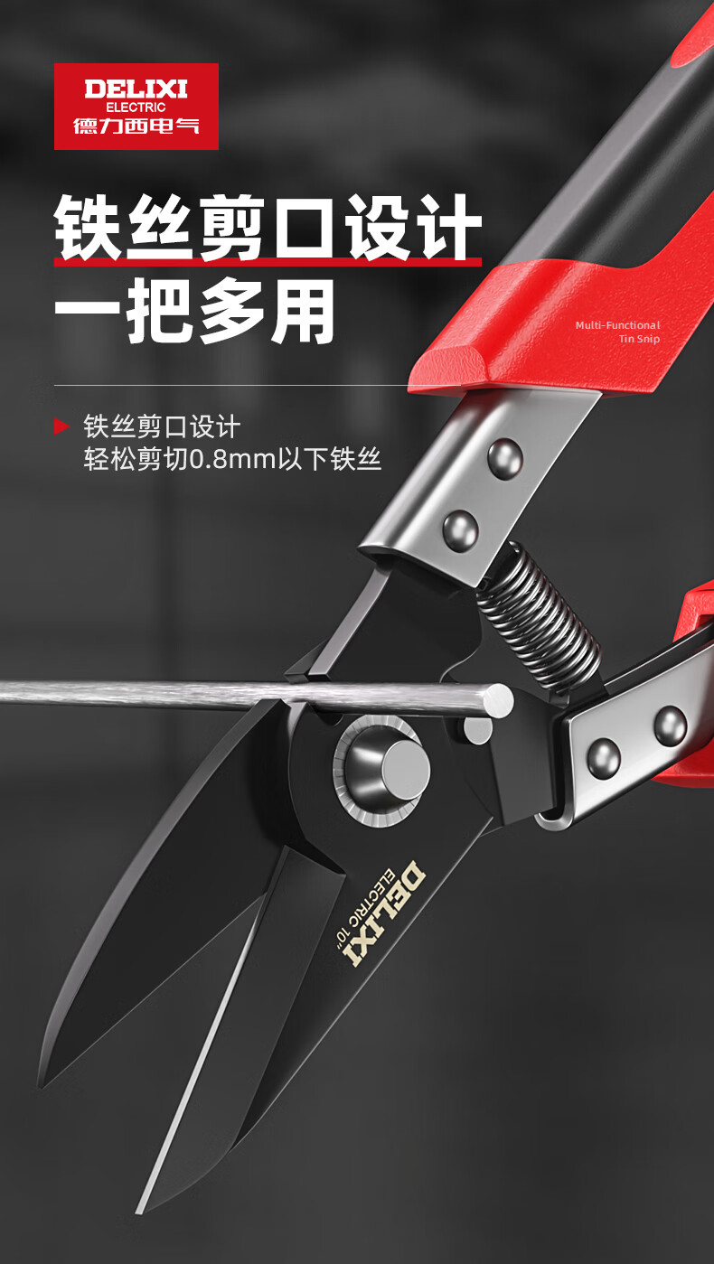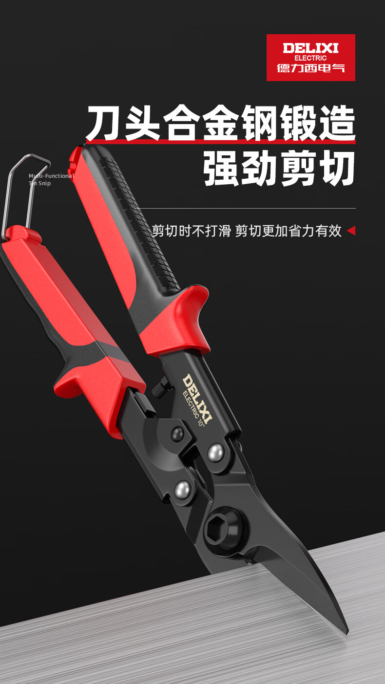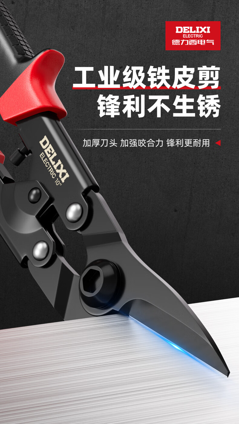 Delixi Electric industrial-grade iron shears, stainless steel powerful aviation scissors, multi-functional strong metal keel aluminum gusset plate special 8-inch single color straight head white blade