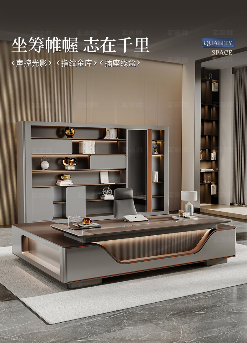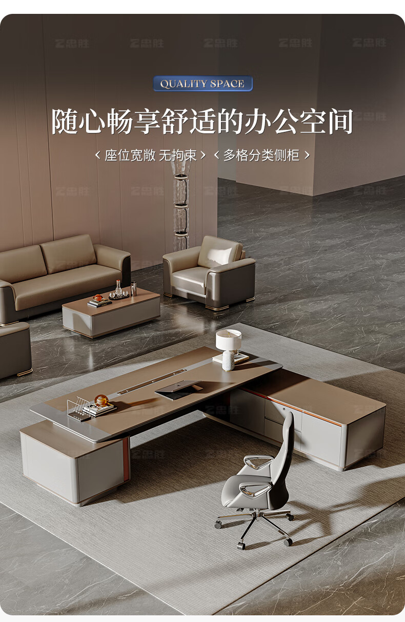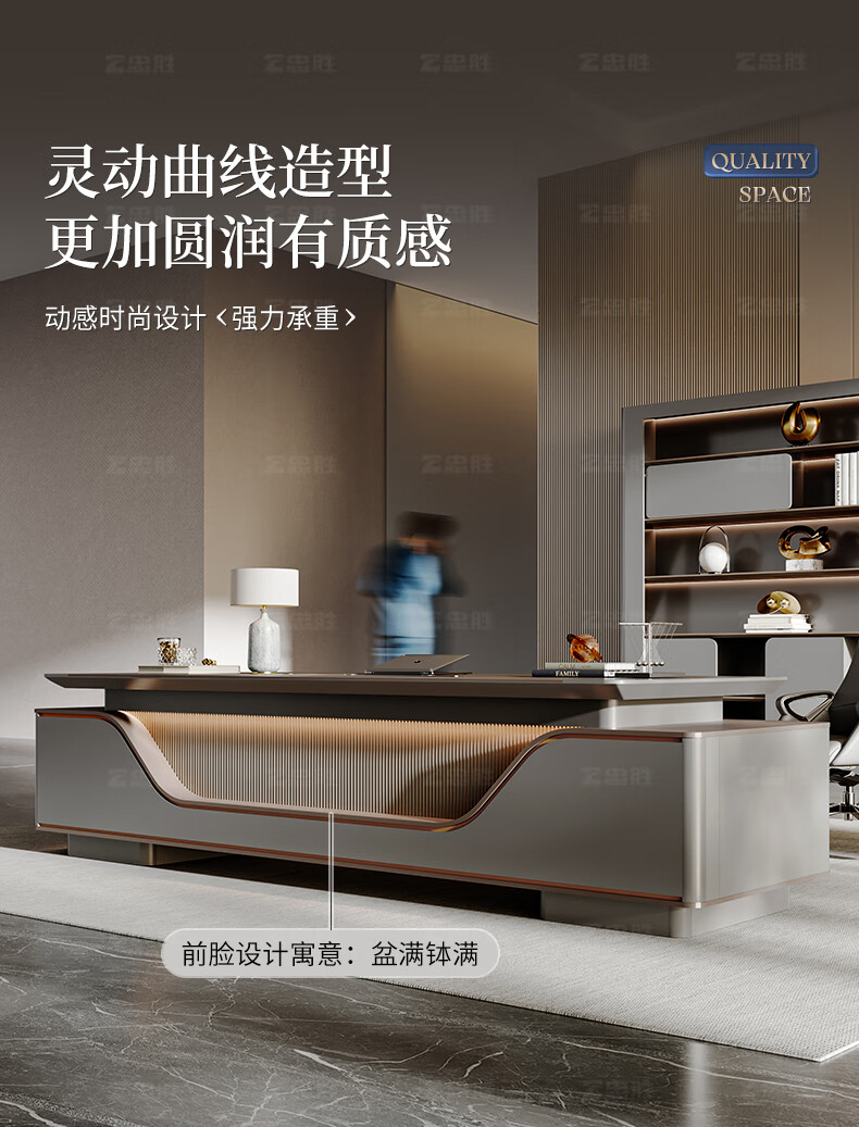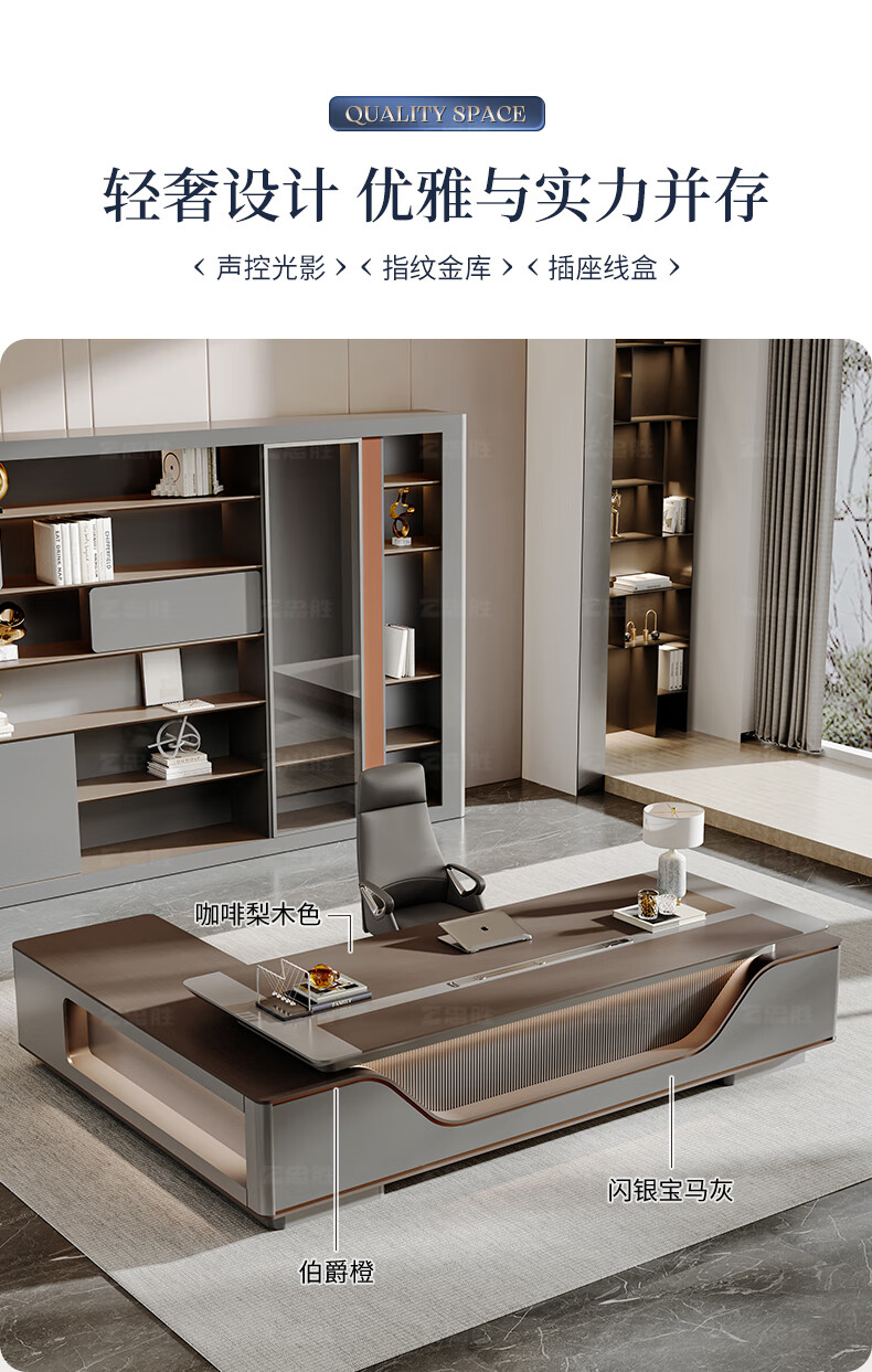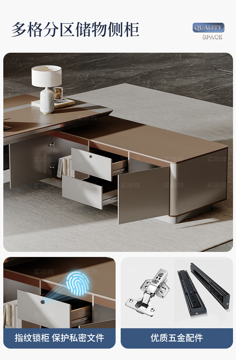 Zhongsheng Office Furniture New Light Luxury High-end President's Desk Boss's Desk E0 Class Environmentally Friendly Boss's Desk Chairman's Desk and Chair Combination 2.6m Boss's Desk + 3.0m File Cabinet