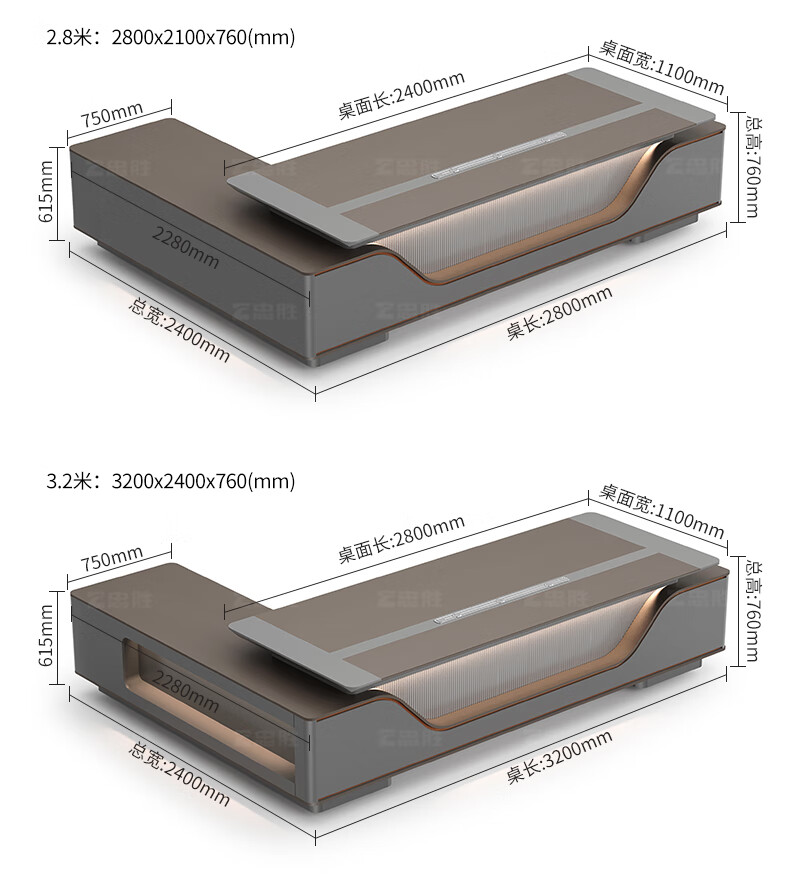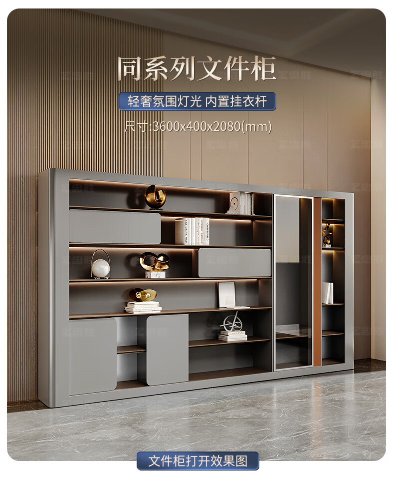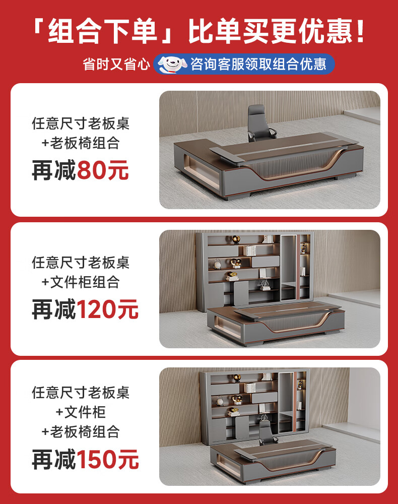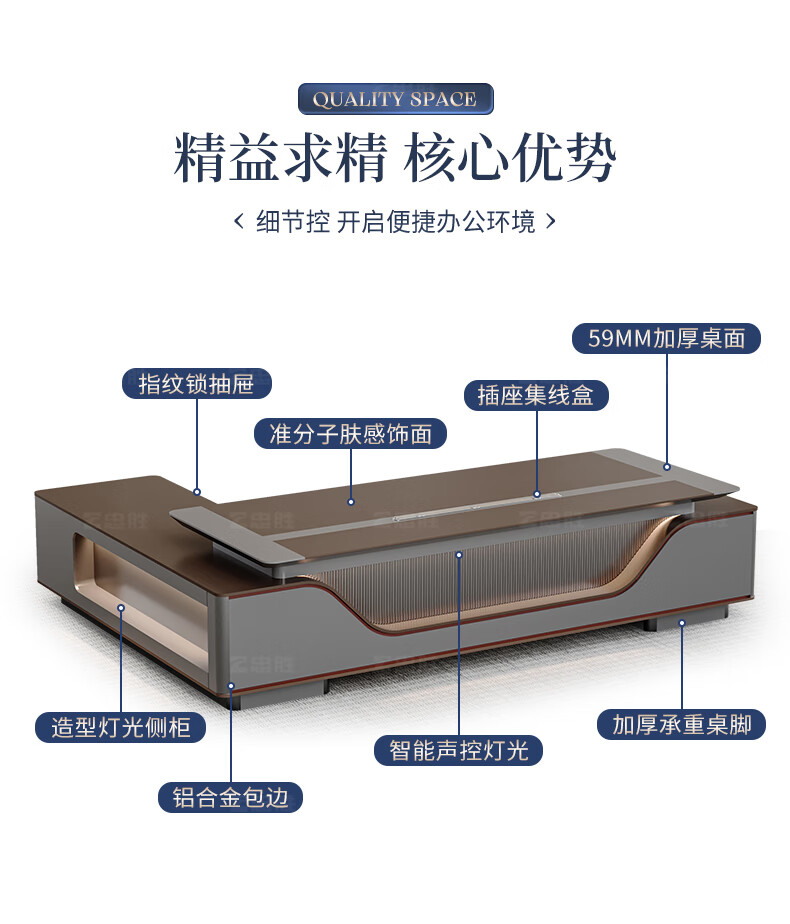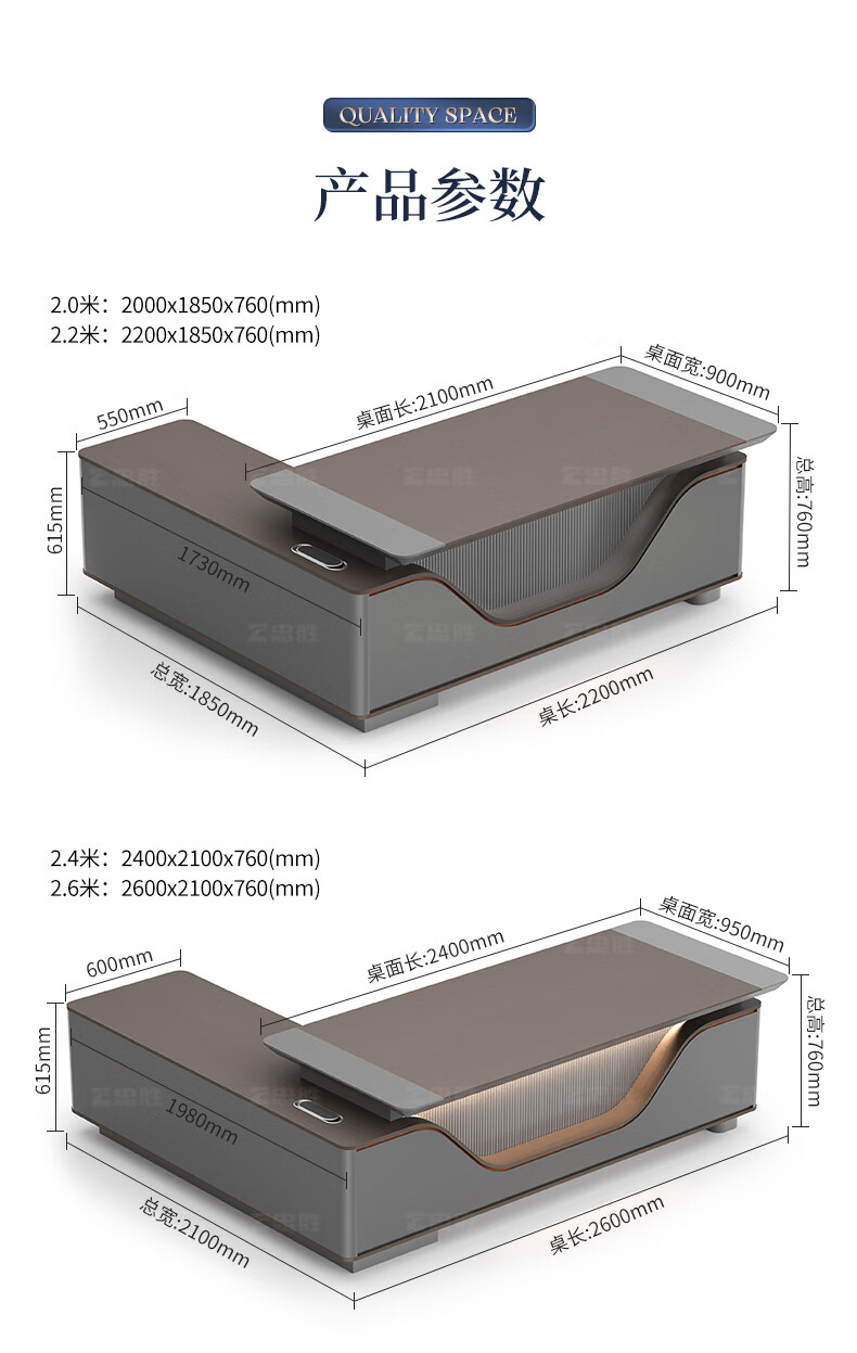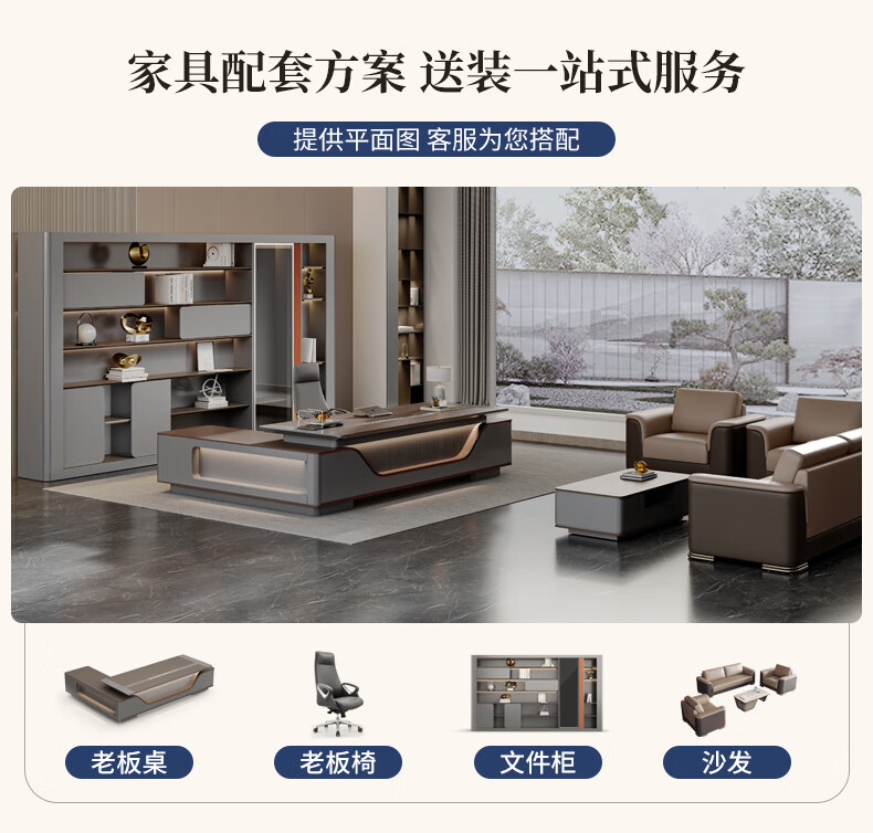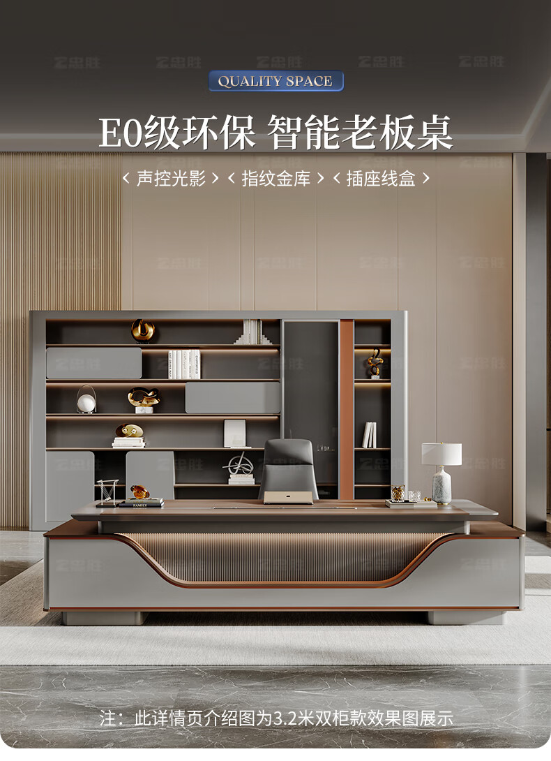 Zhongsheng Office Furniture New Light Luxury High-end President's Desk Boss's Desk E0 Class Environmentally Friendly Boss's Desk Chairman's Desk and Chair Combination 2.6m Boss's Desk + 3.0m File Cabinet