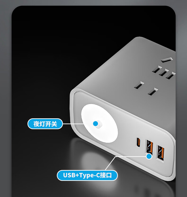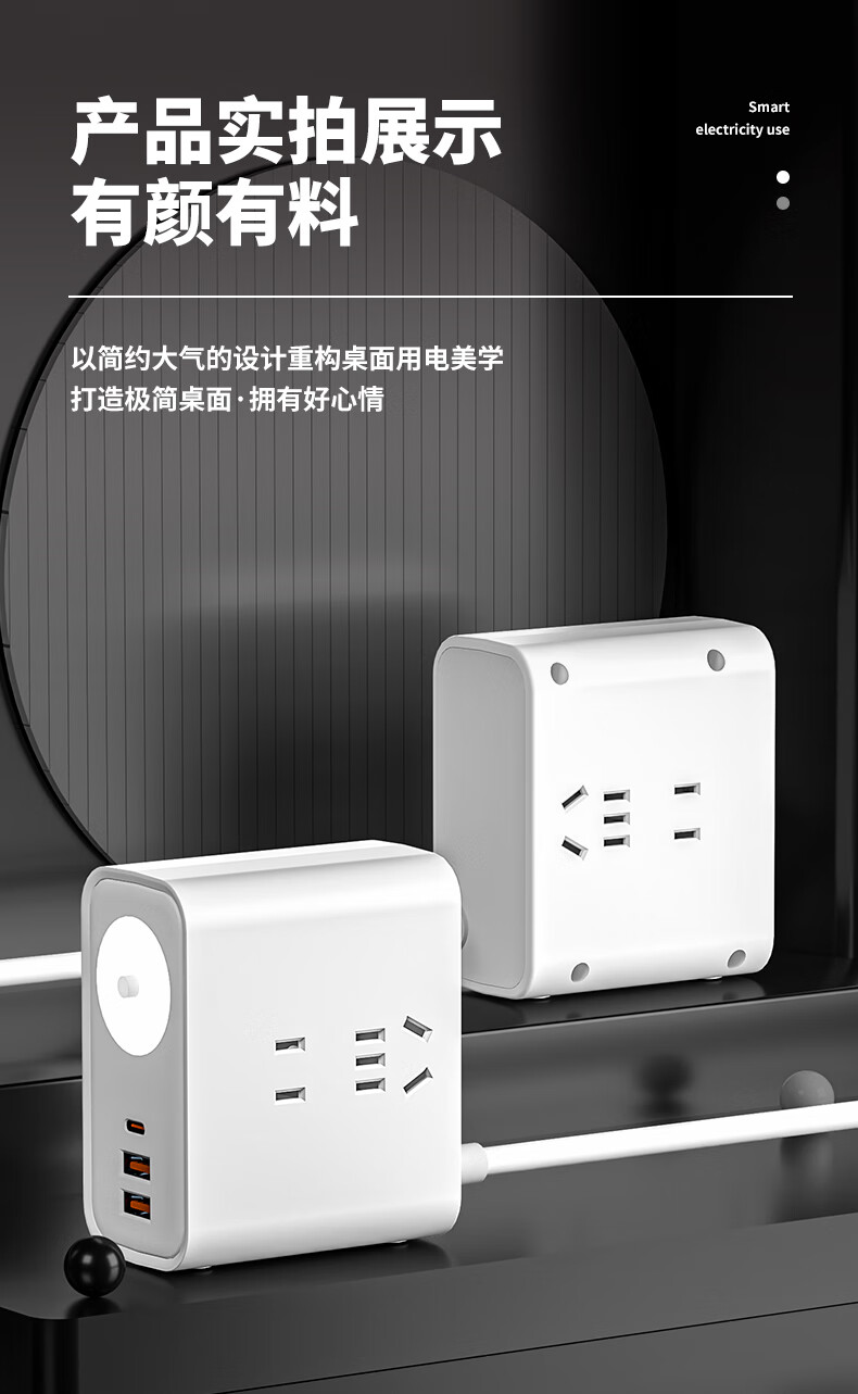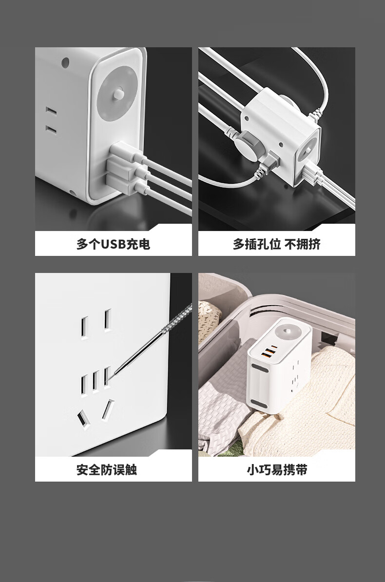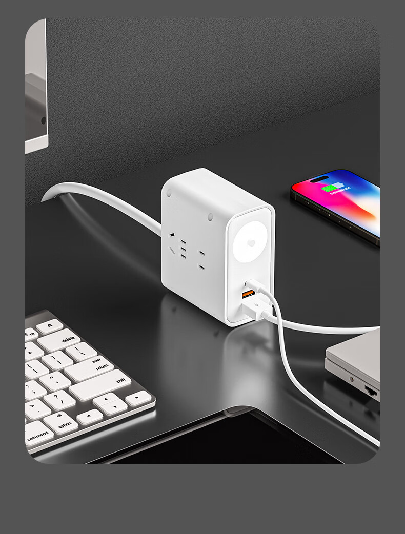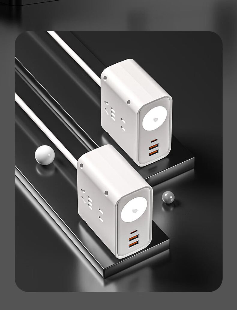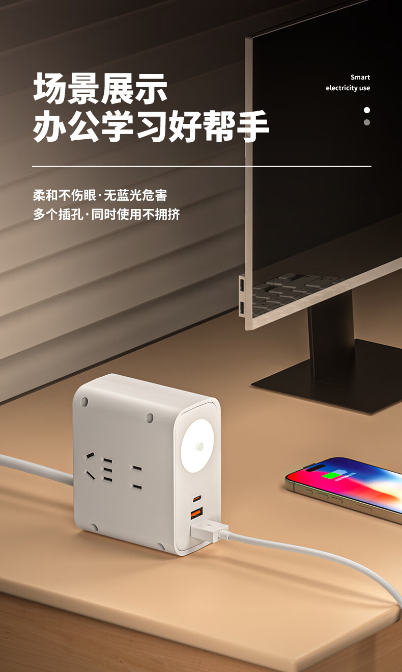 Jingdong Logistics Multifunctional socket with cord power extension cord desktop office compact optional with USB night light plug strip with cord household double-sided drag strip (7 holes x 2 sides) with USB + night light 2.8 meters