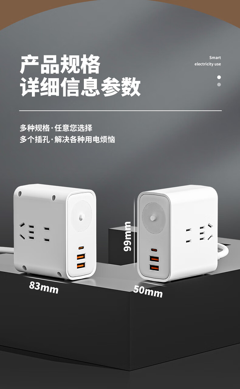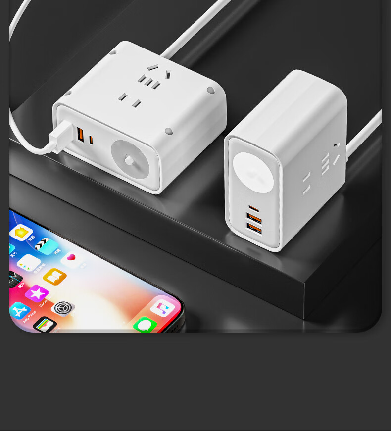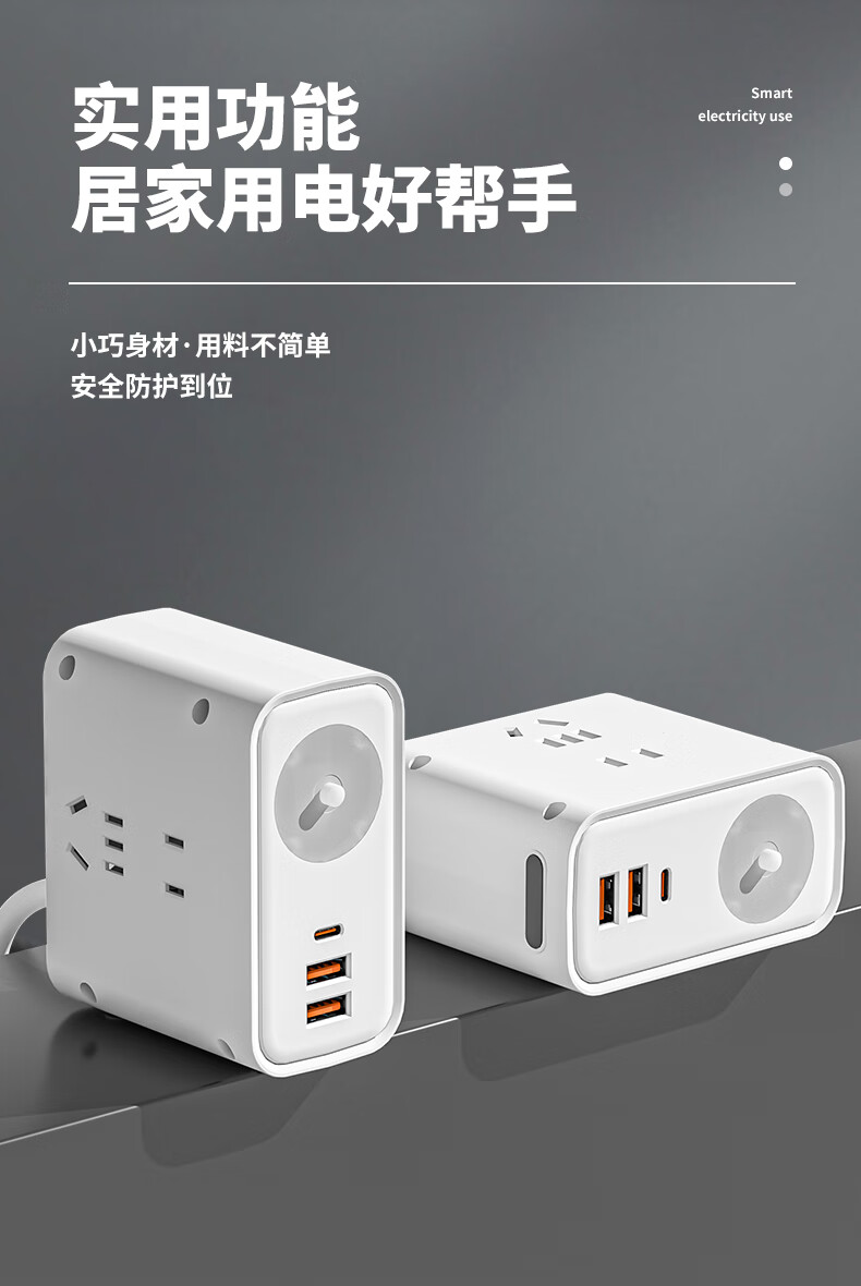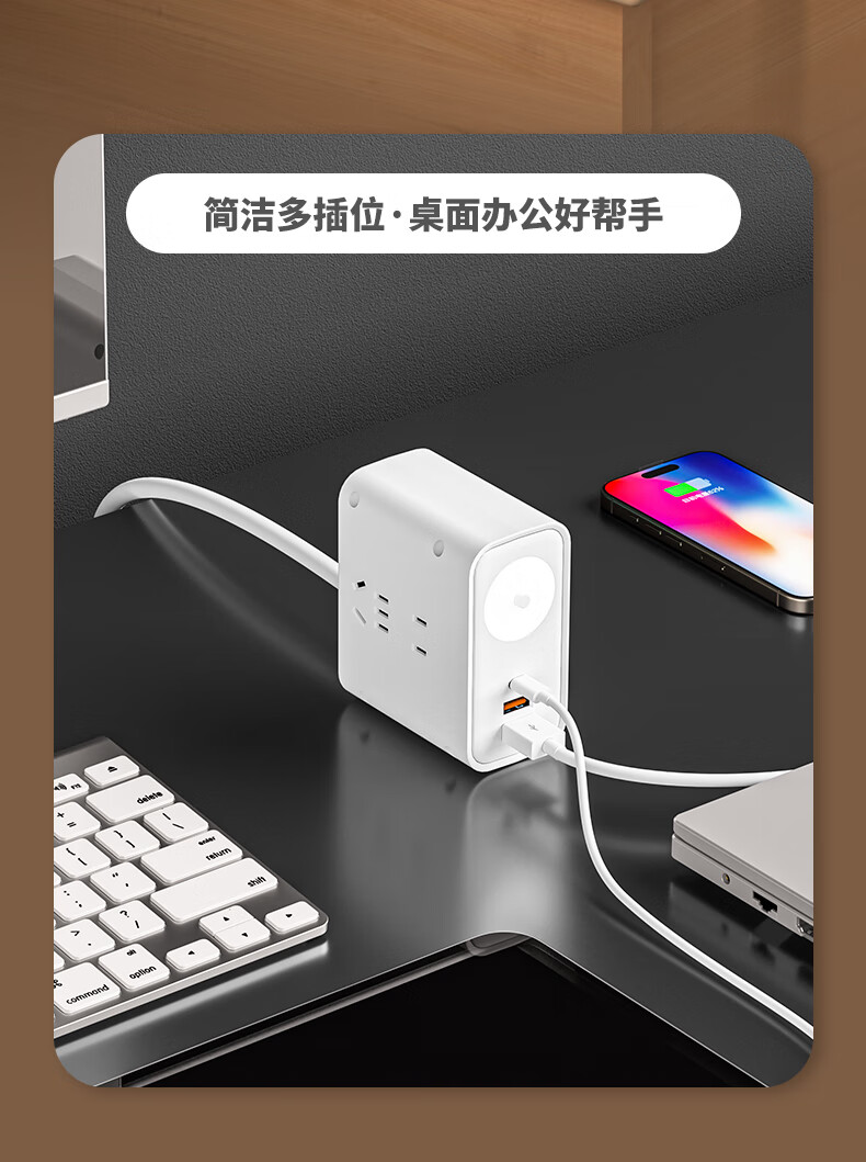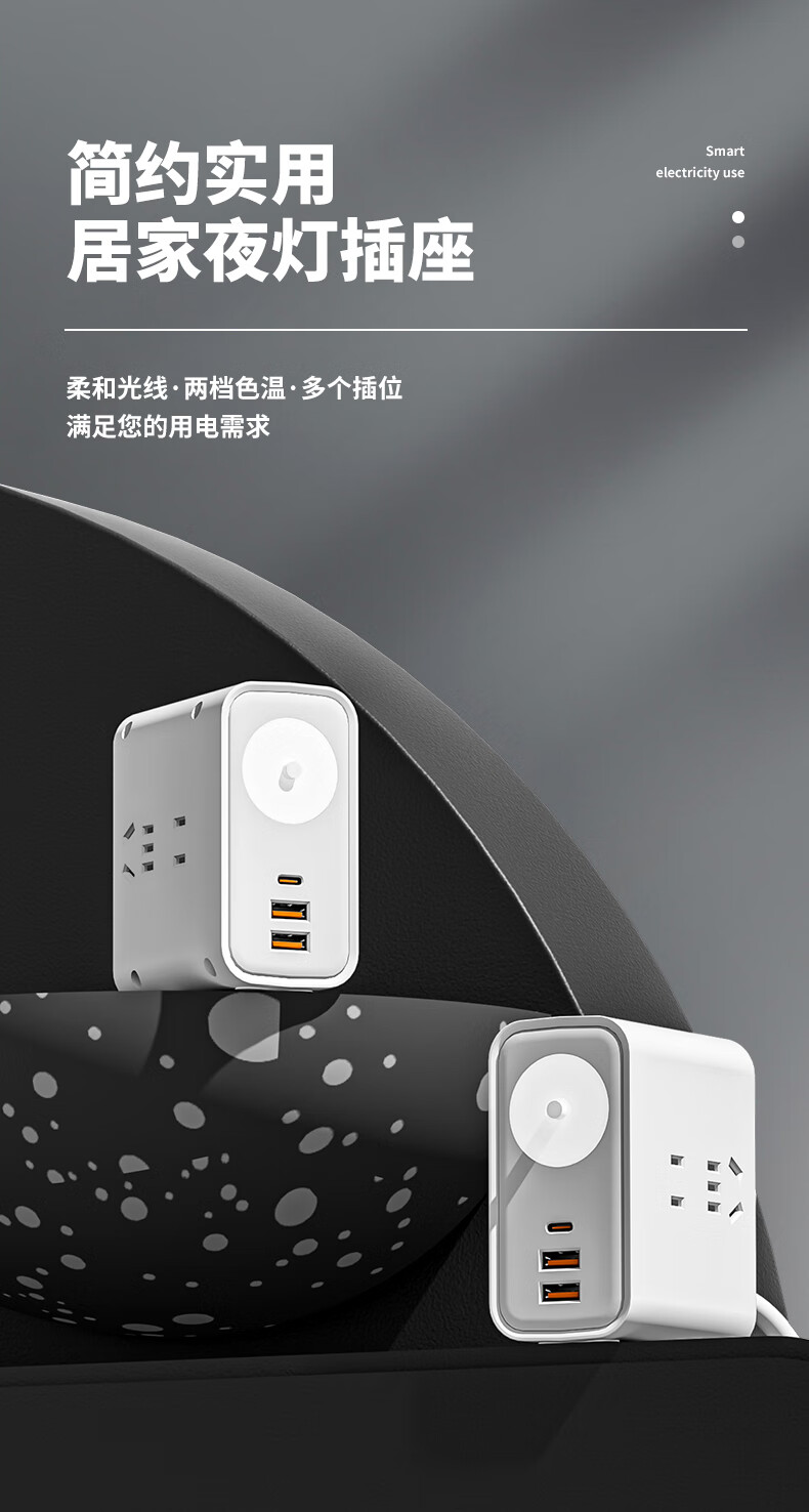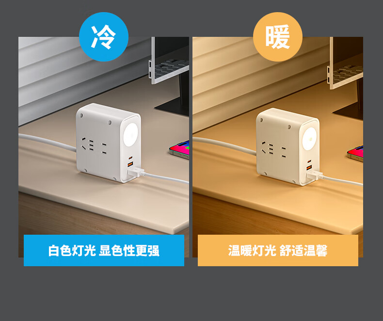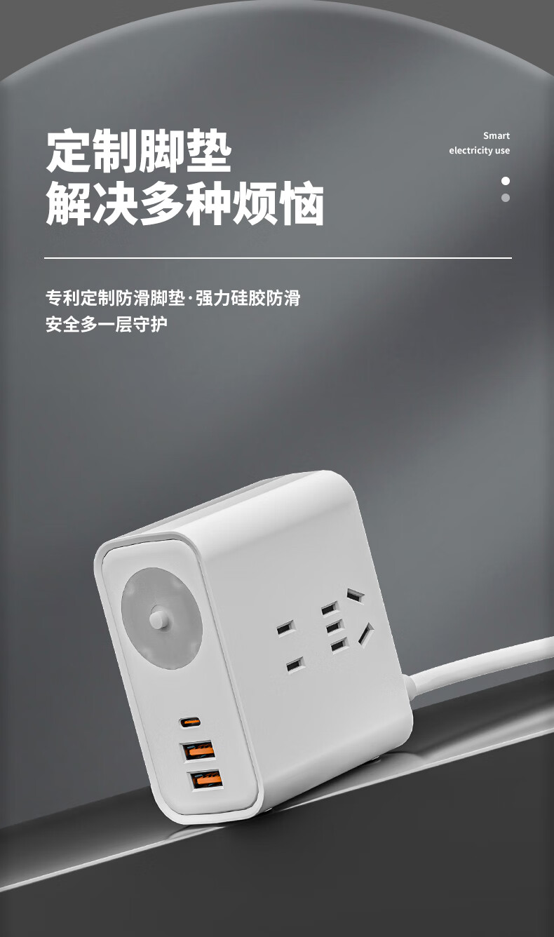 Jingdong Logistics Multifunctional socket with cord power extension cord desktop office compact optional with USB night light plug strip with cord household double-sided drag strip (7 holes x 2 sides) with USB + night light 2.8 meters