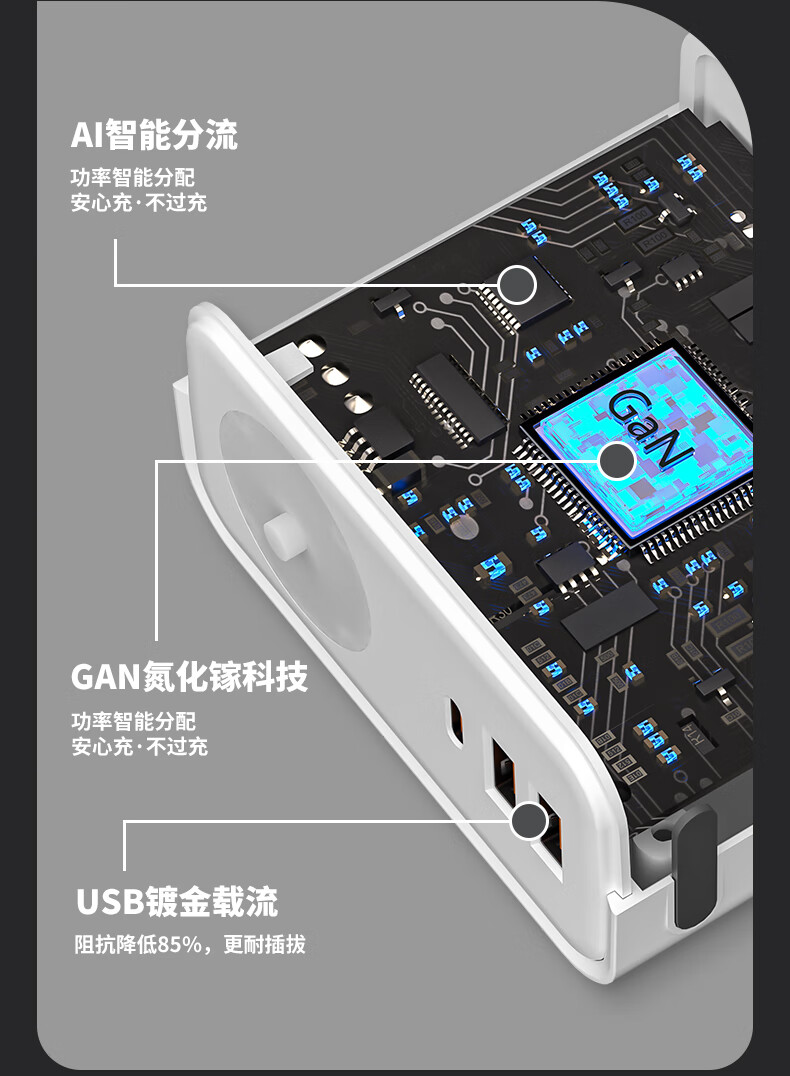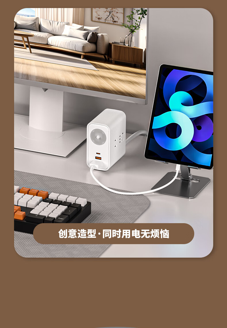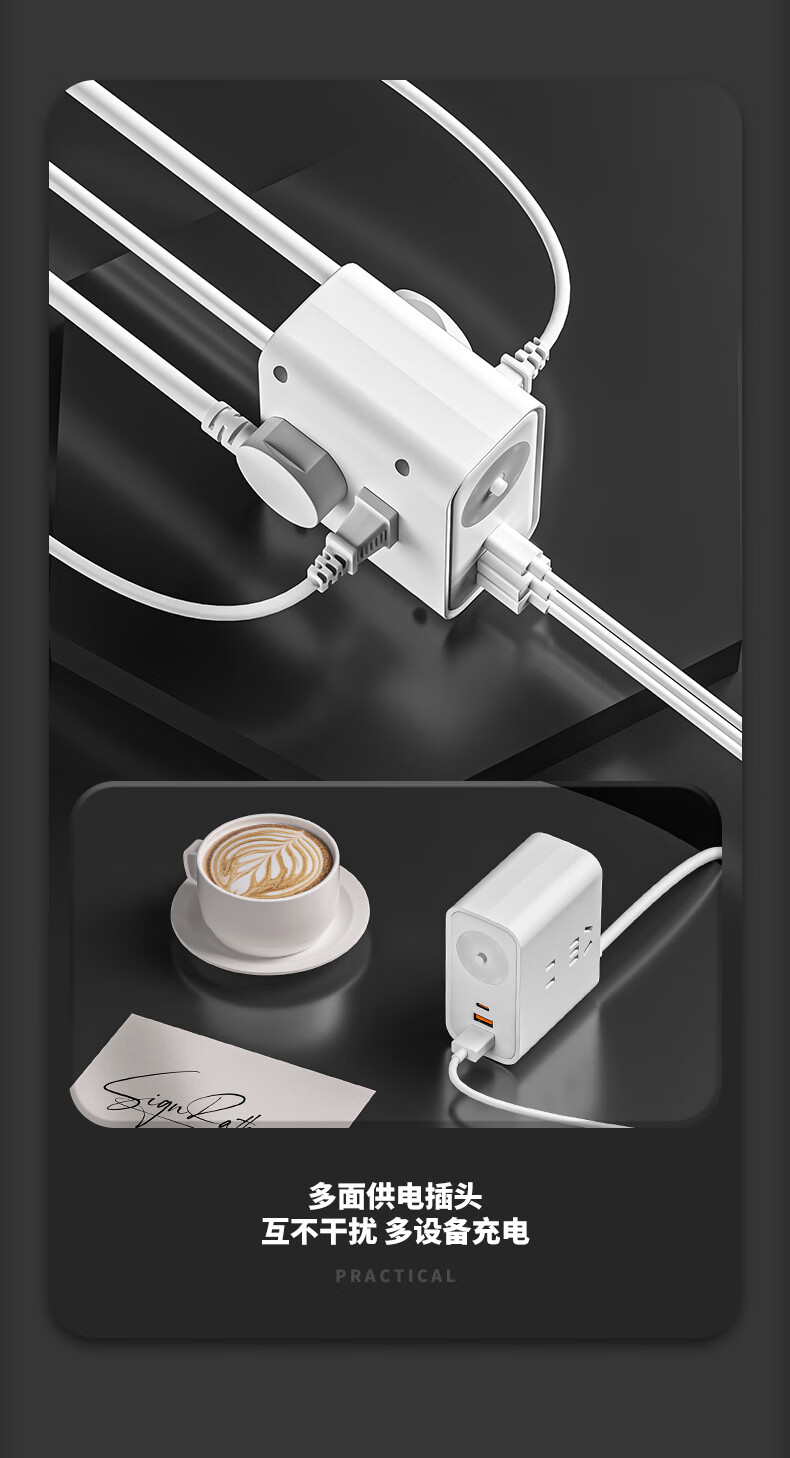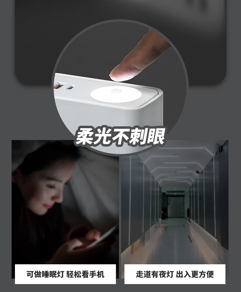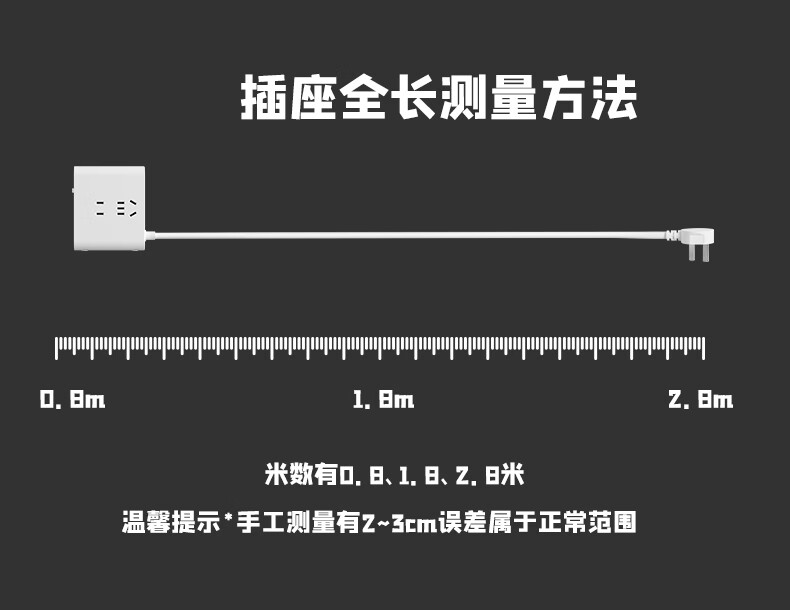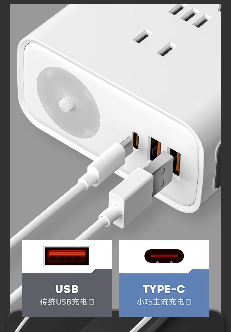 Jingdong Logistics Multifunctional socket with cord power extension cord desktop office compact optional with USB night light plug strip with cord household double-sided drag strip (7 holes x 2 sides) with USB + night light 2.8 meters
