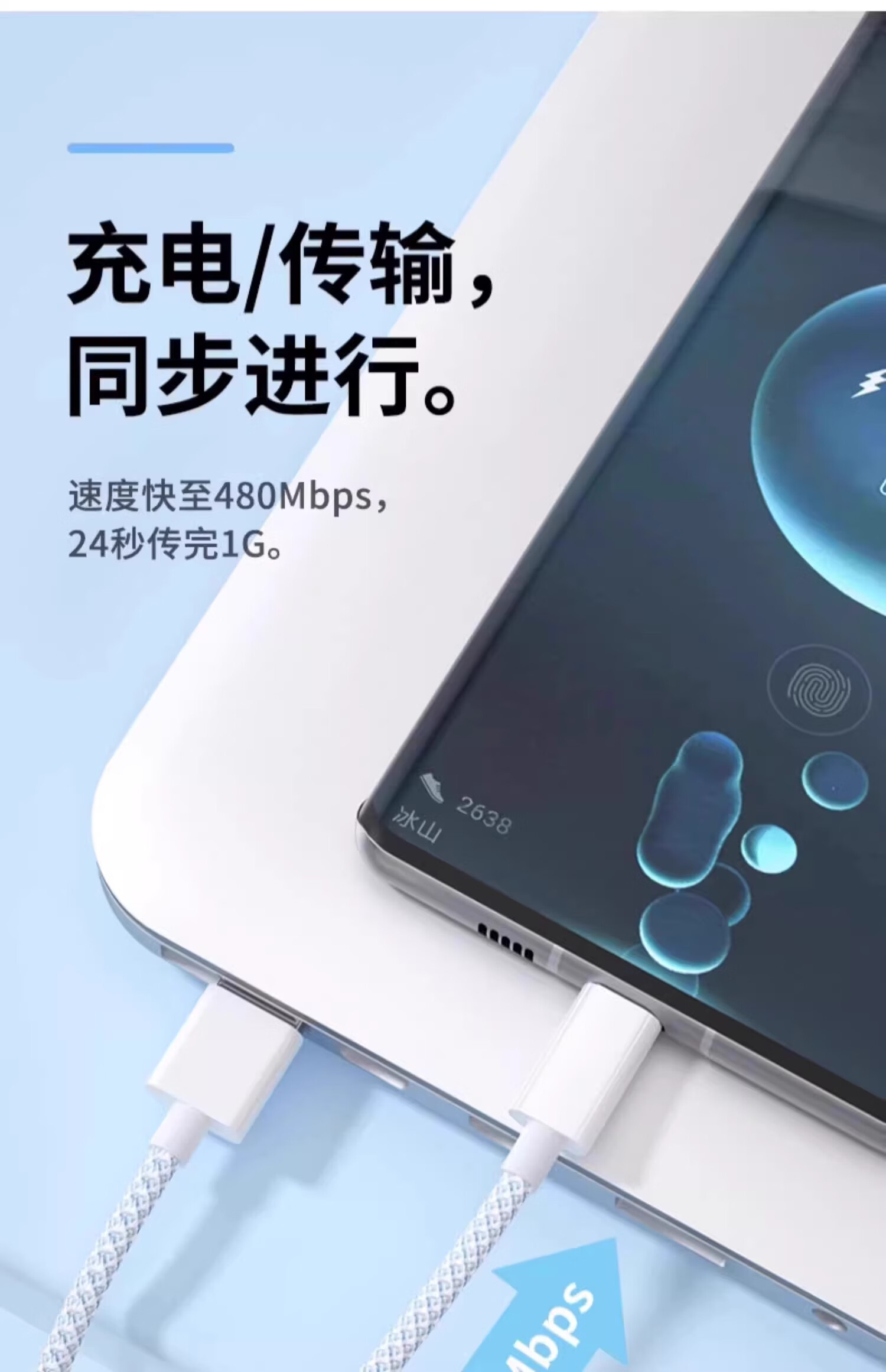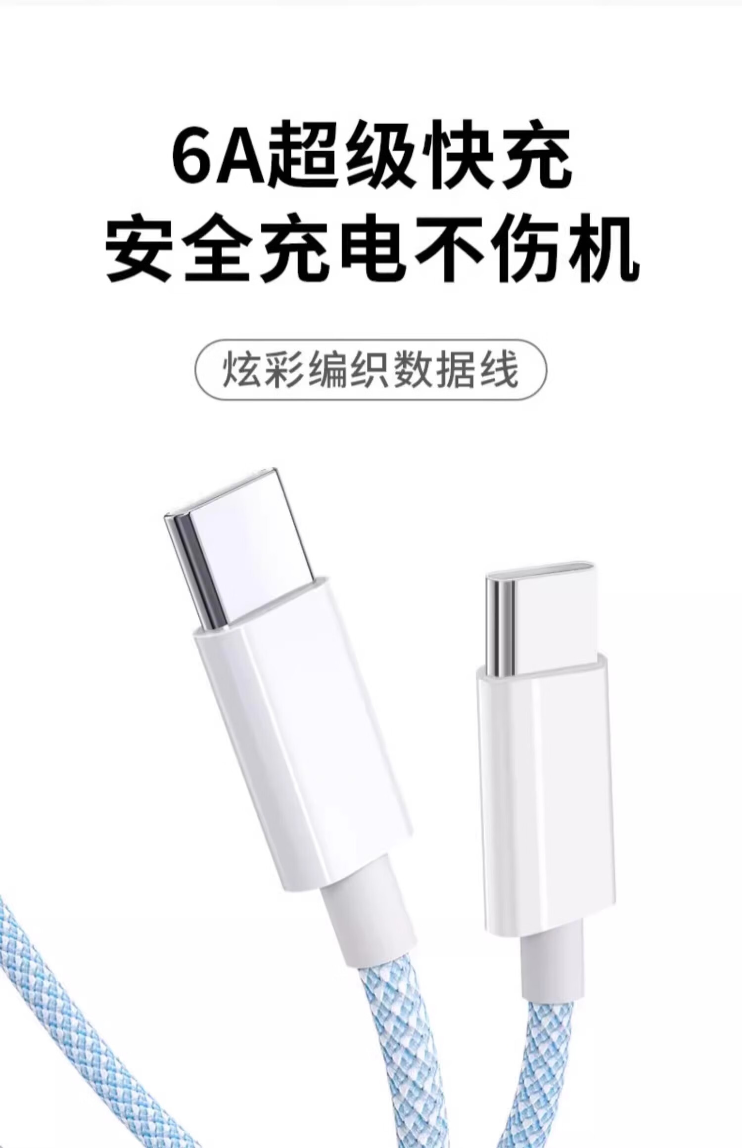 Double typec data cable suitable for Apple 16/15pro charging cable, typec flat port at both ends, iPad, Huawei, mac, Xiaomi fast charging 100w laptop, tpyec flat port, braided double Typec flat port, elegant gray white 1.0 meters