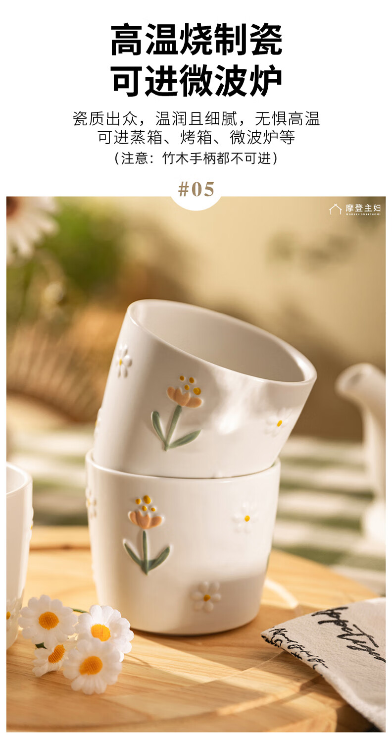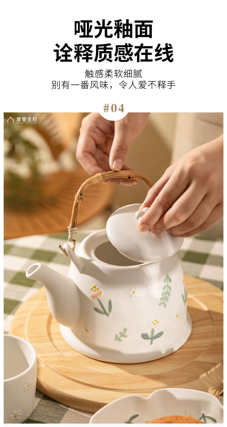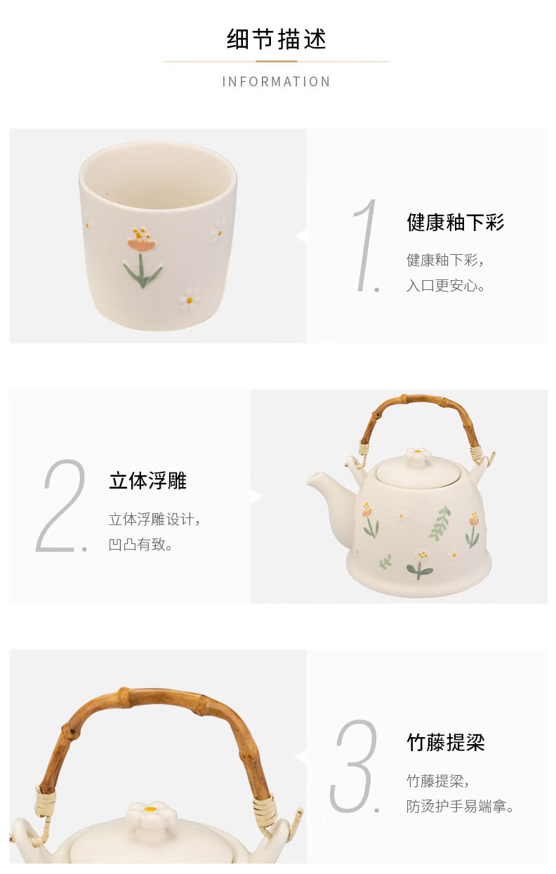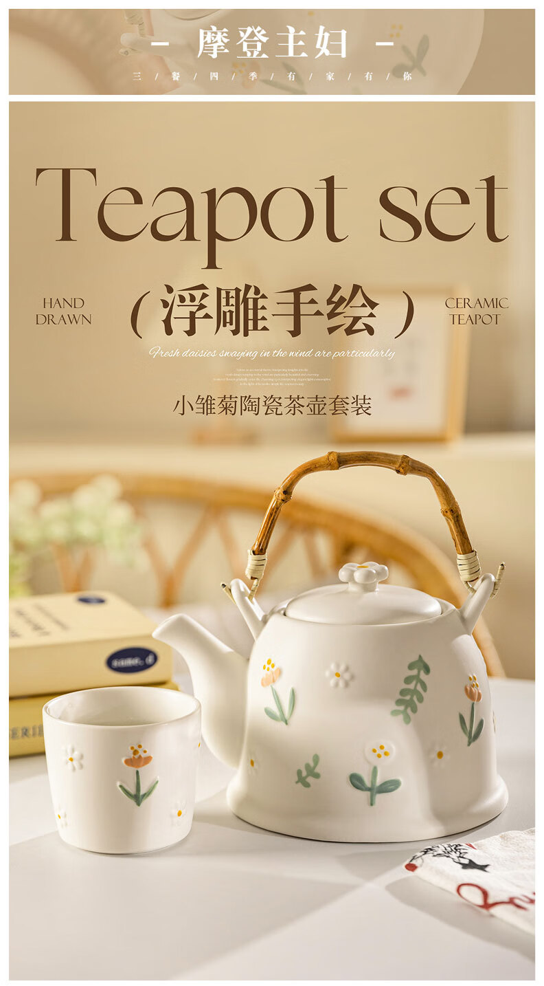 Modern Housewife Daisy Teapot Set Household Tea Cup Birthday Wedding Newlyweds Housewarming New Home Gift Ceramic Tea Set Gift Box Packaging Embossed Hand-painted Daisy Teapot 1000ml One Pot Four Cups + Tray