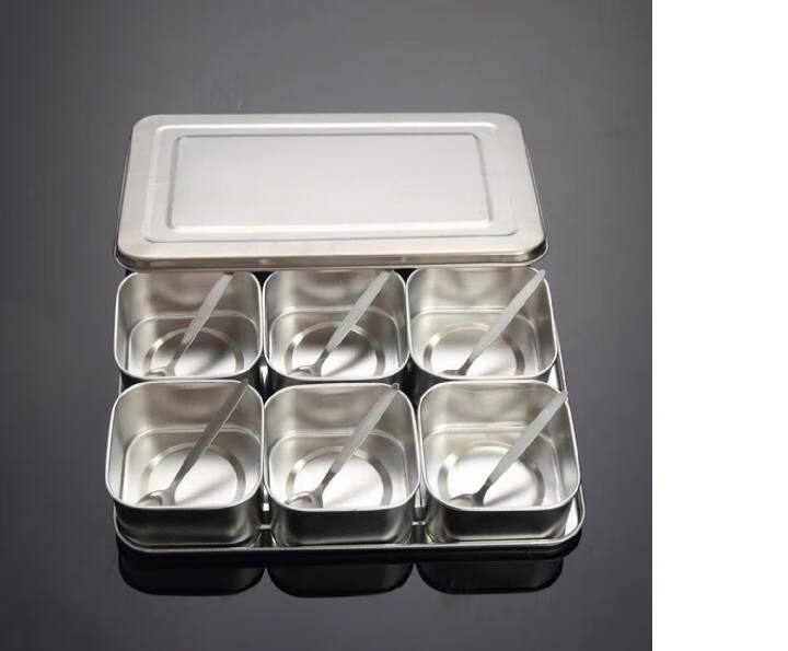 FANCYCHIC stainless steel Japanese flavor box set condiment jar condiment sample box 6 compartments 8 compartments with thickened six compartments 6 flavor spoons with lid