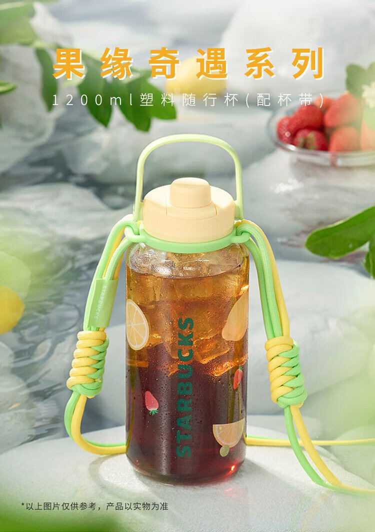 Starbucks (Starbucks) Cup Fruity Adventure Series Plastic Tumbler with Cup Strap 1200ml Portable Water Bottle for Men and Women as Gifts Plastic Tumbler (With Cup Strap) 1200ml